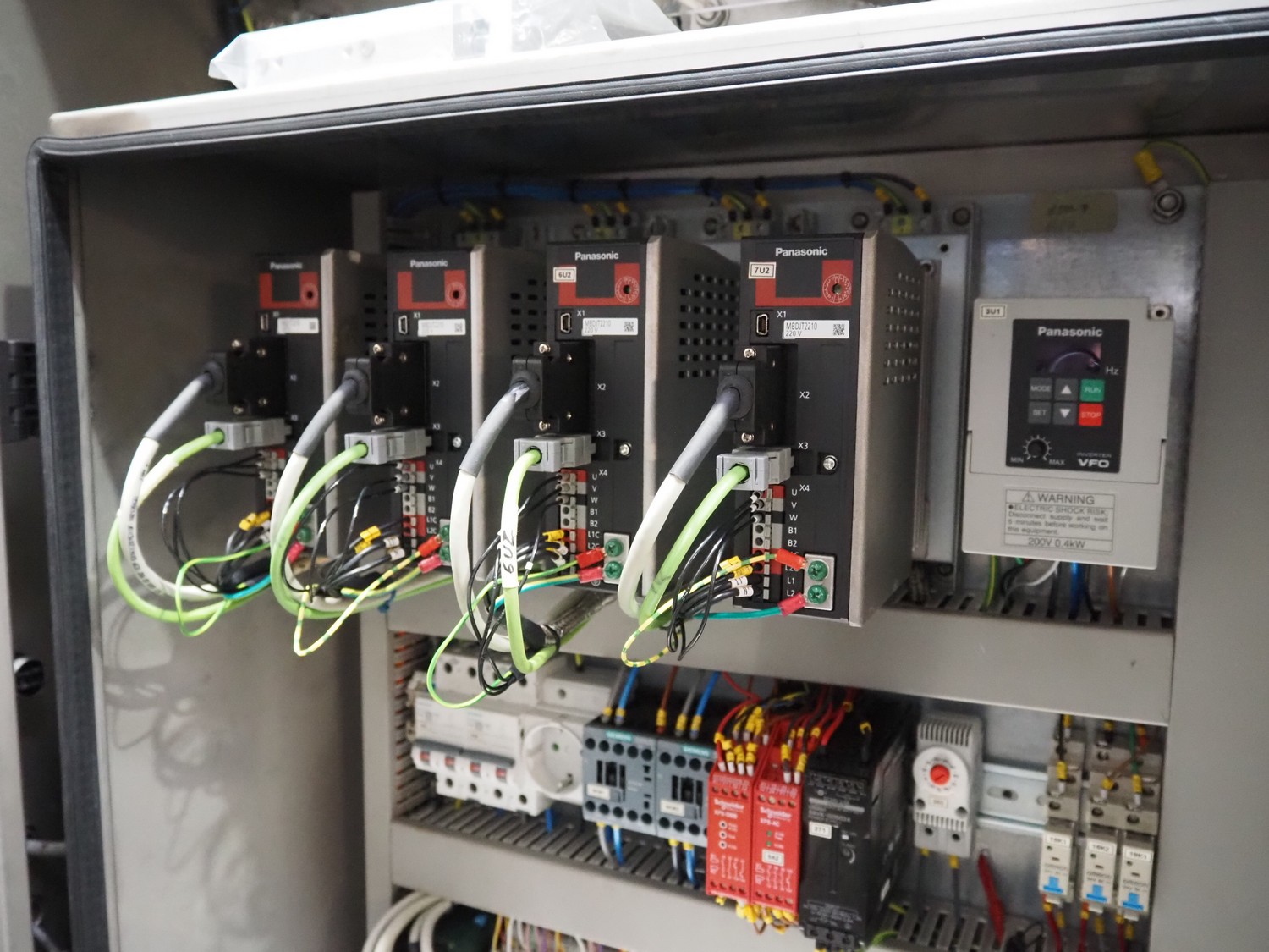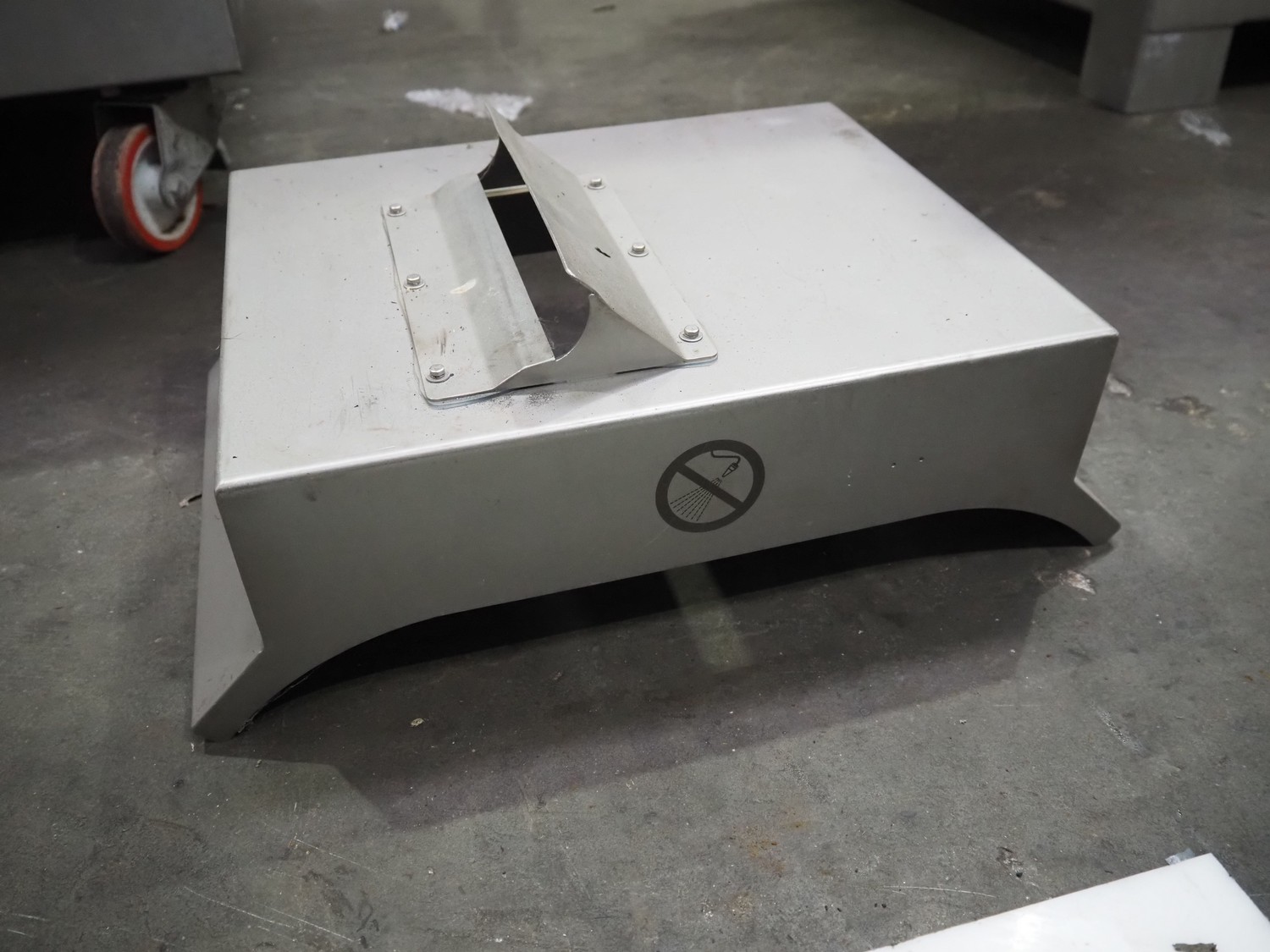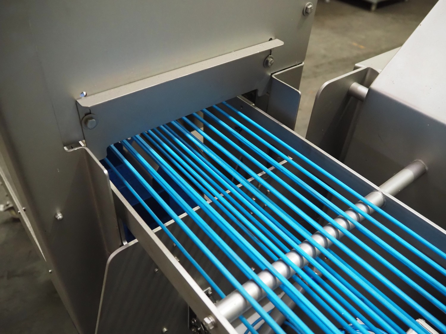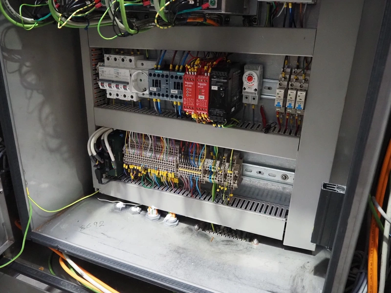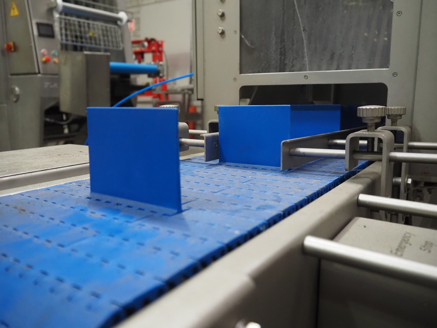 Veserkal bottom labeller, model: PE106S, serial number: 1428, year of construction: 2016, 230 V, 1.5 kW, plastic wire belt, belt width: 170 mm, plastic belt with dividers, belt width: 225 mm, dividers height: 70 mm, distance between dividers: 190 mm, total dimensions: 2240 mm x 860 mm x 1280 mm.