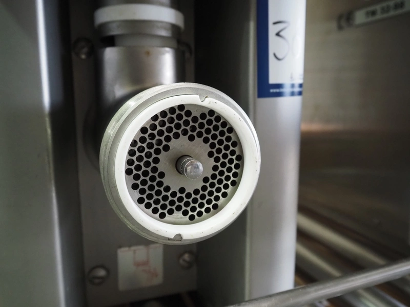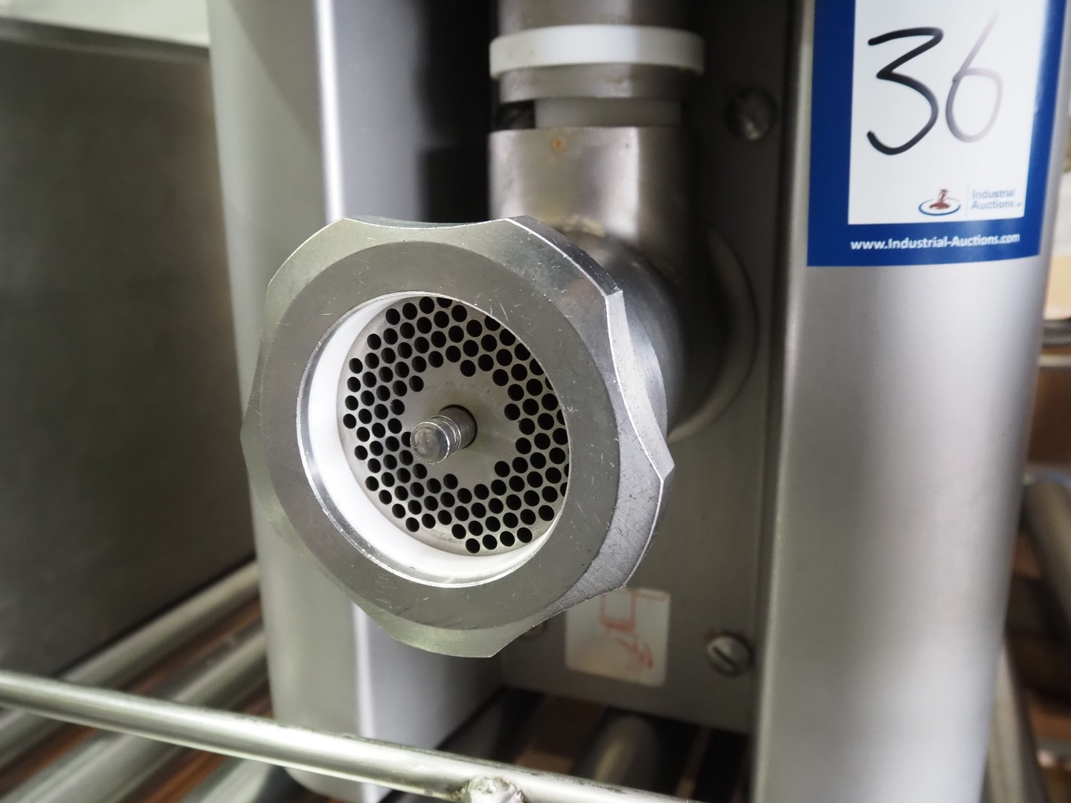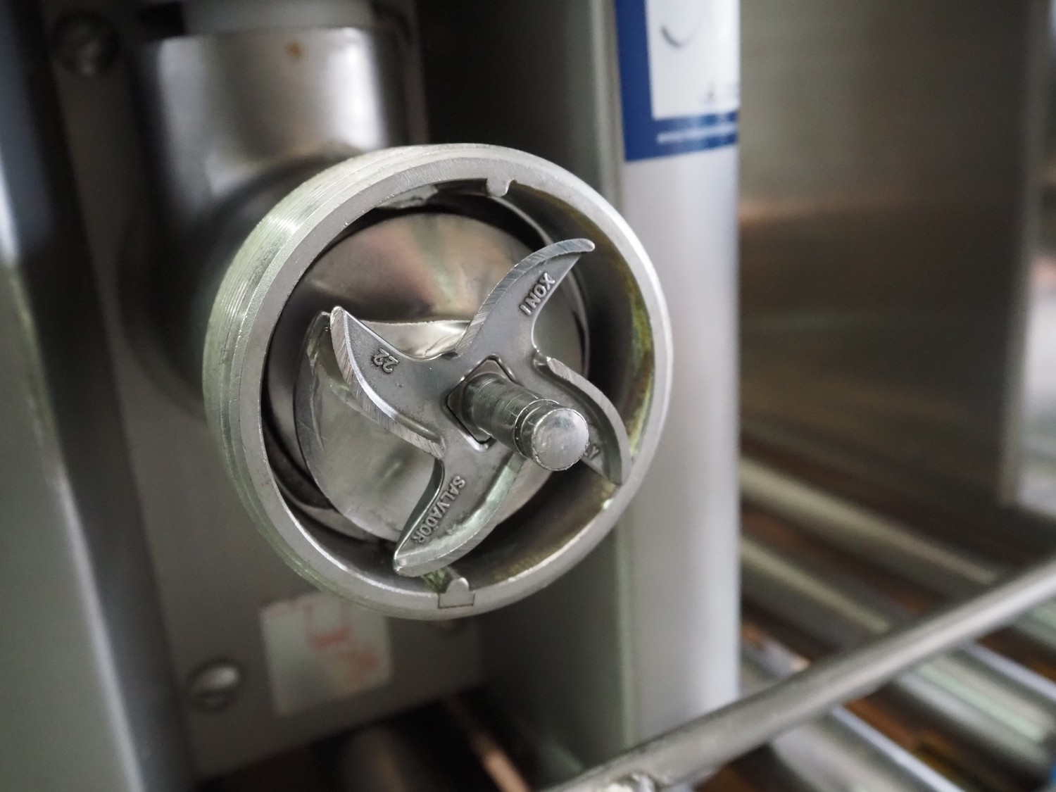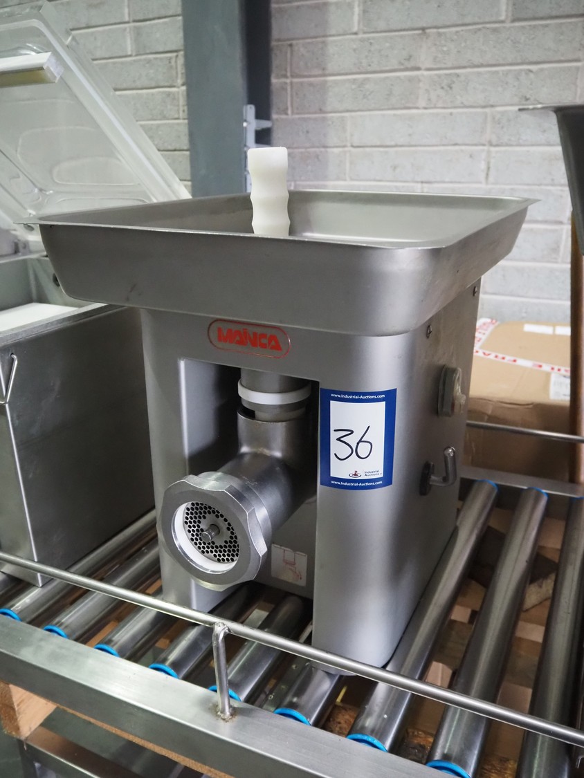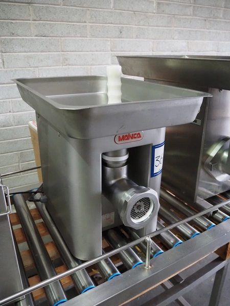 Mainca grinder, model: PC-82/32, serial number: 8293, year of construction: 2016, 230 V, 2 Ph, 50 Hz, 10.2 A, 1.10 kW, diameter plate: 82 mm, total dimensions: 610 mm x 410 mm x 480 mm.
