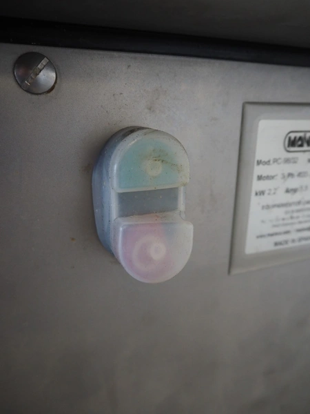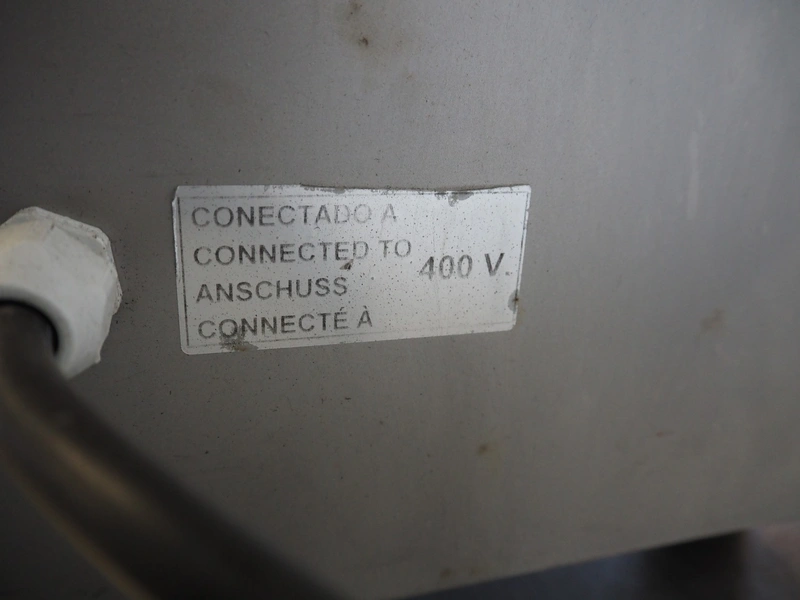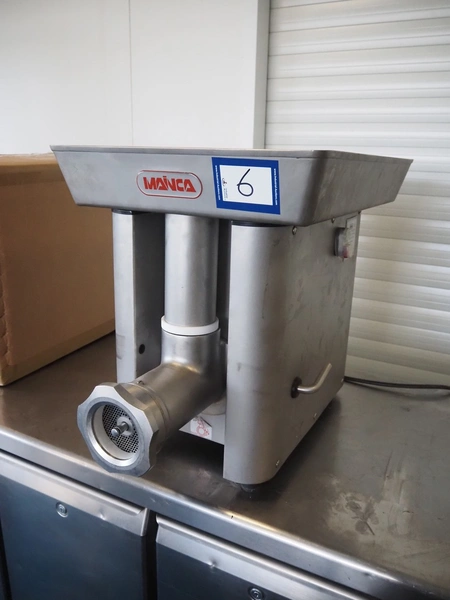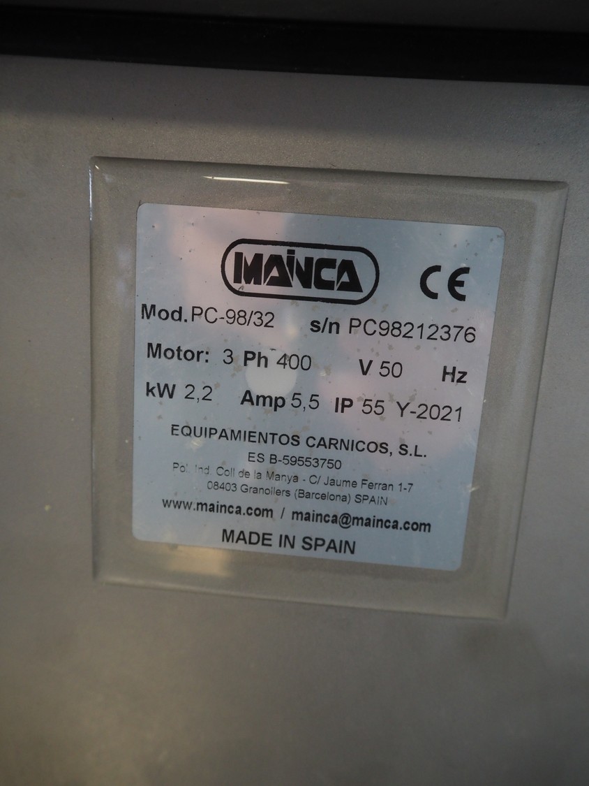 Mainca grinder, model: PC-98/32, serial number: PC98212376, year of construction: 2021, 400 V, 3 Ph, 50 Hz, 5.5 A, 2.2 kW, diameter plate: 98 mm, total dimensions: 800 mm x 500 mm x 590 mm.