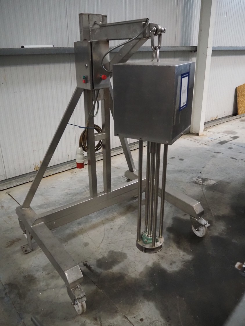 S/s trolley with mixing arm, length mixing arm: 900 mm, total dimensions: 1250 mm x 1300 mm x 1800 mm.
