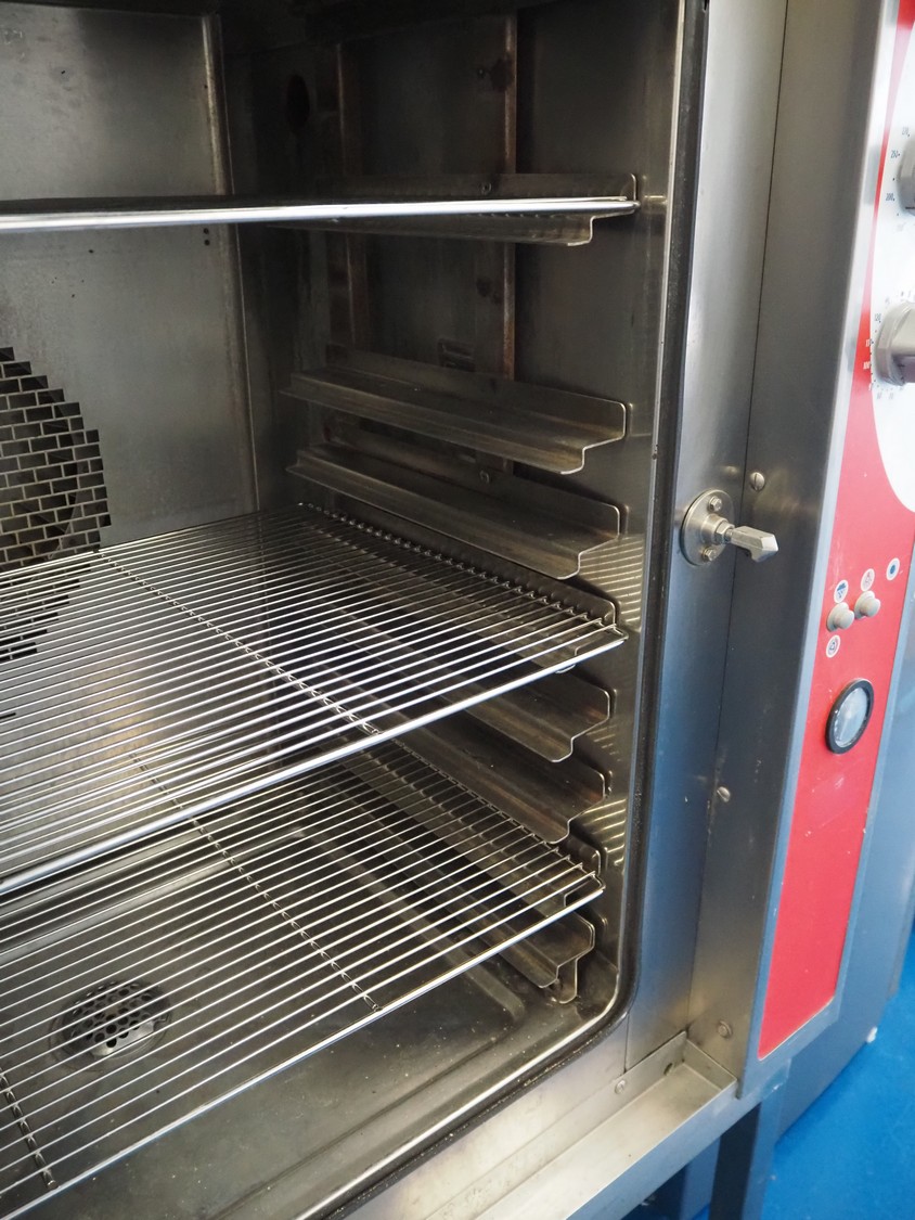 Combi steamer, 8 floors, dimensions floors: (8x) 600 mm x 400 mm, total dimensions: 930 mm x 900 mm x 1560 mm.