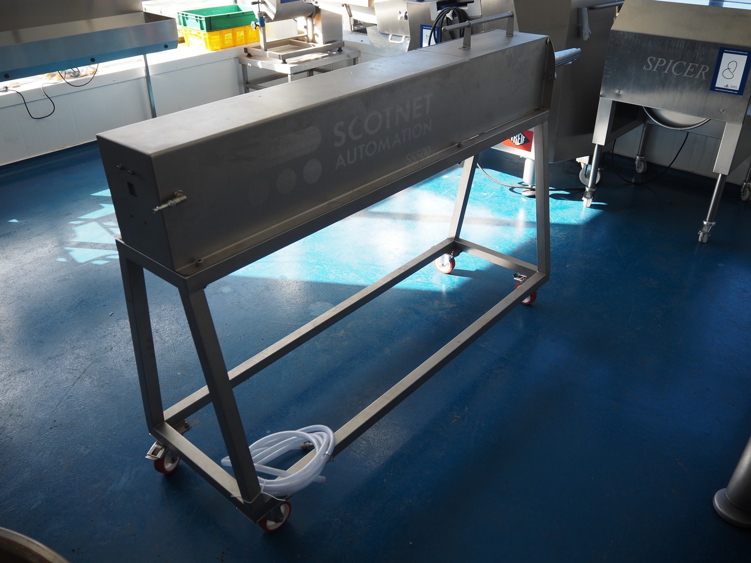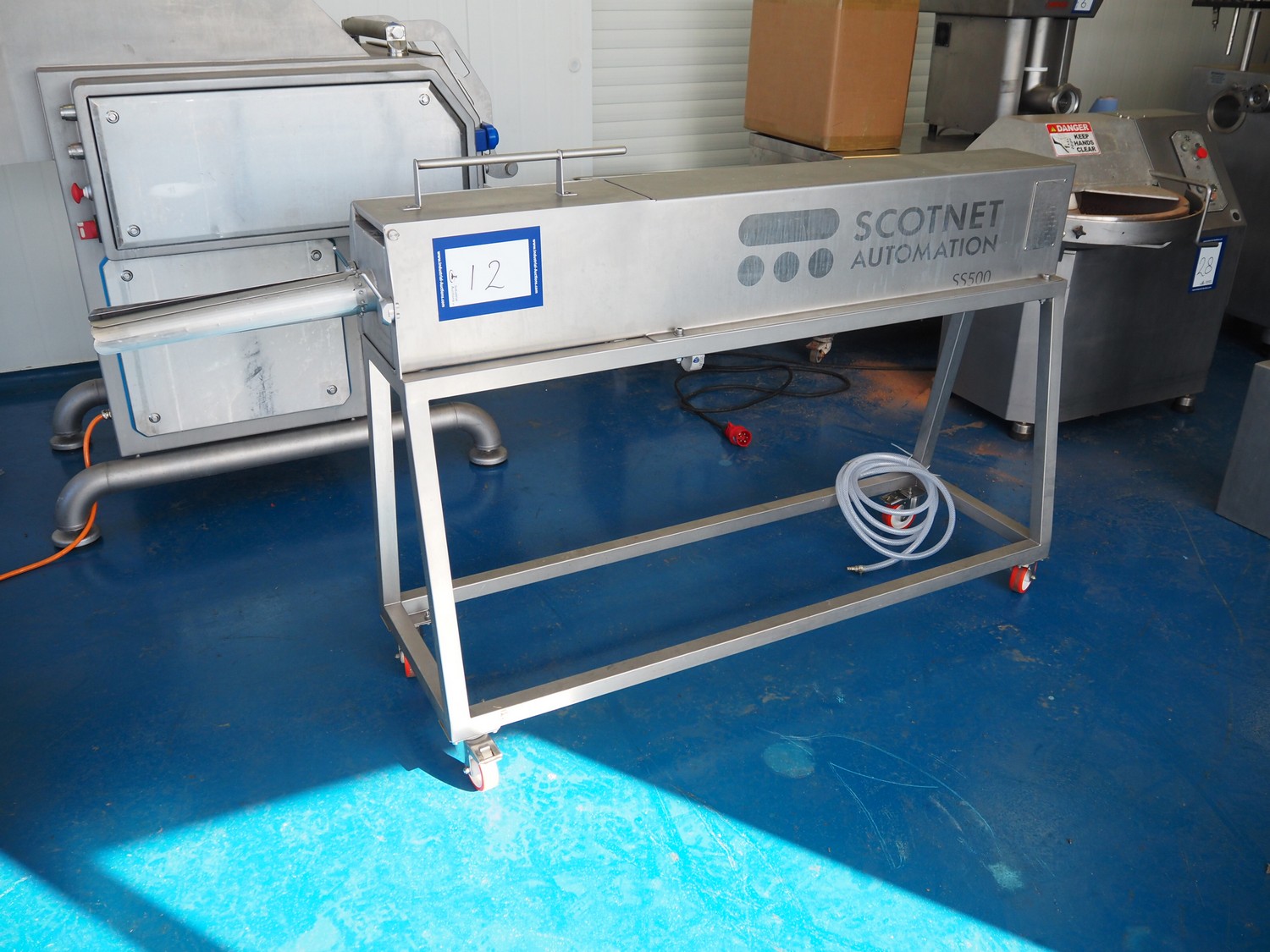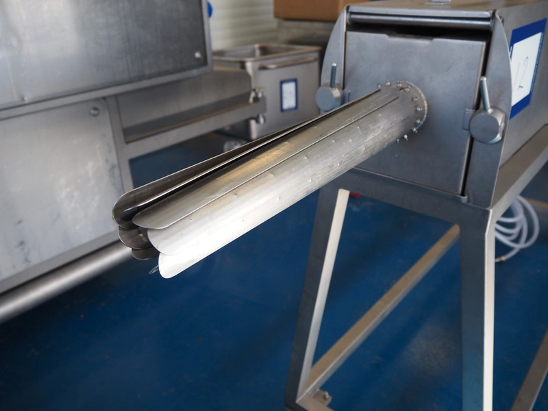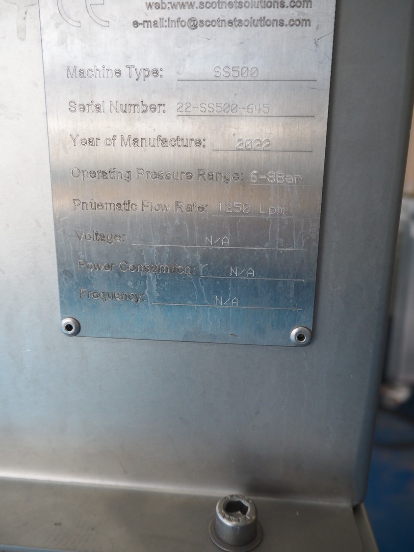 Scotnet Solutions meat press, type: SS 500, serial number: 22-SS500-645, year of construction: 2022, operating pressure range: 6-8 bar, pneumatic flow rate: 12500 Lpm, diameter pipe: 60 mm & 125 mm, total dimensions: 2040 mm x 500 mm x 1170 mm.
