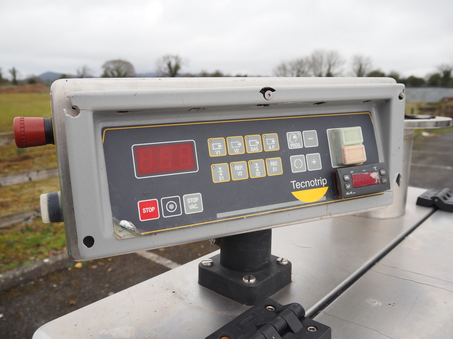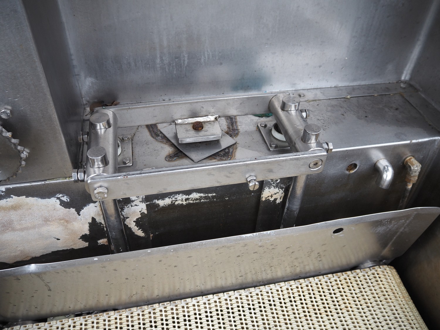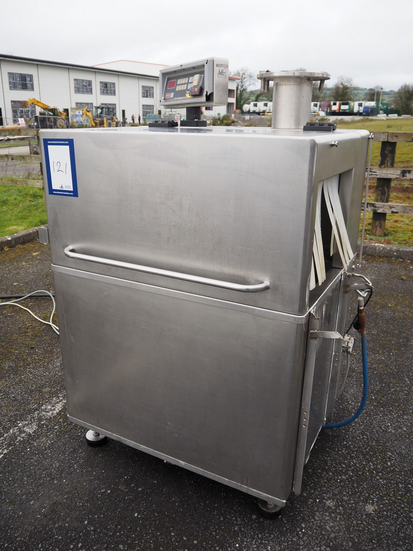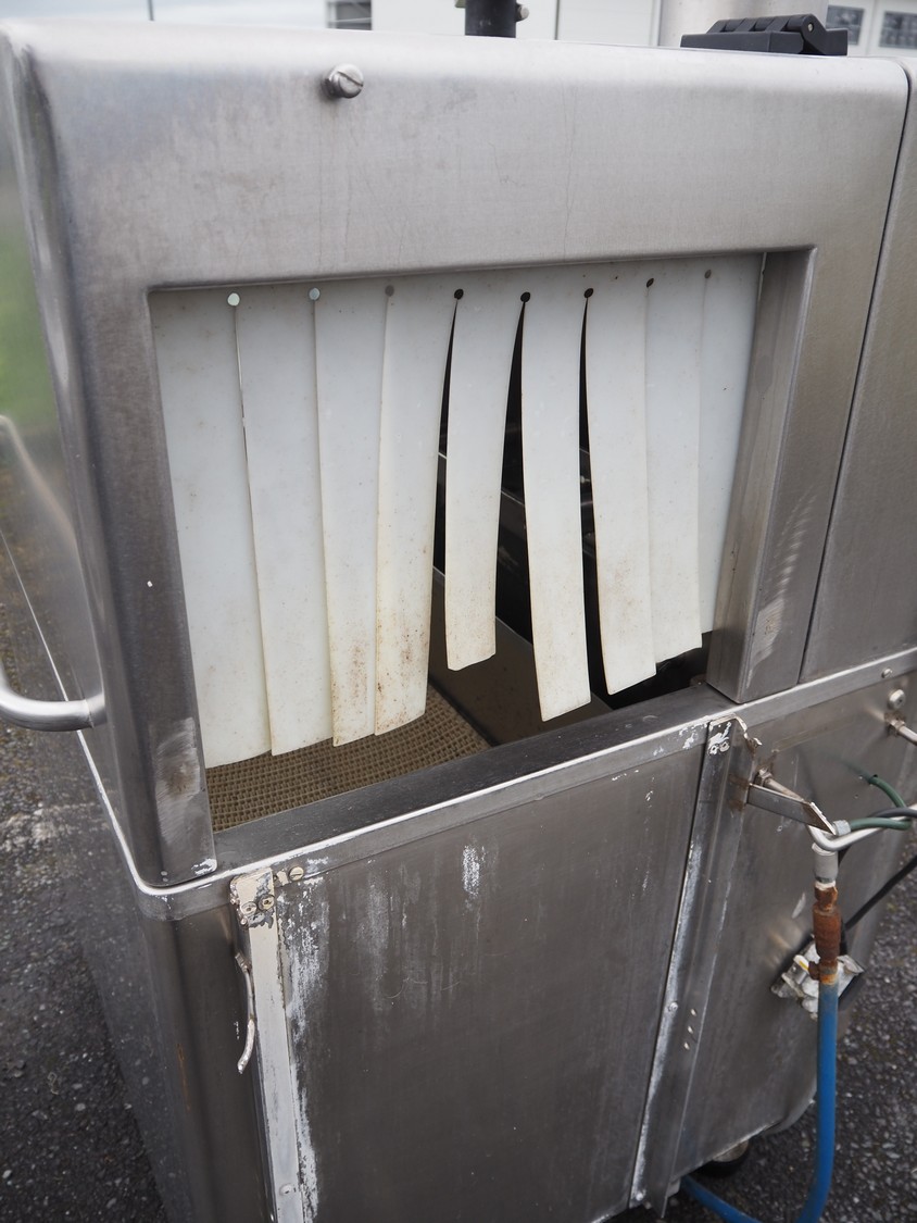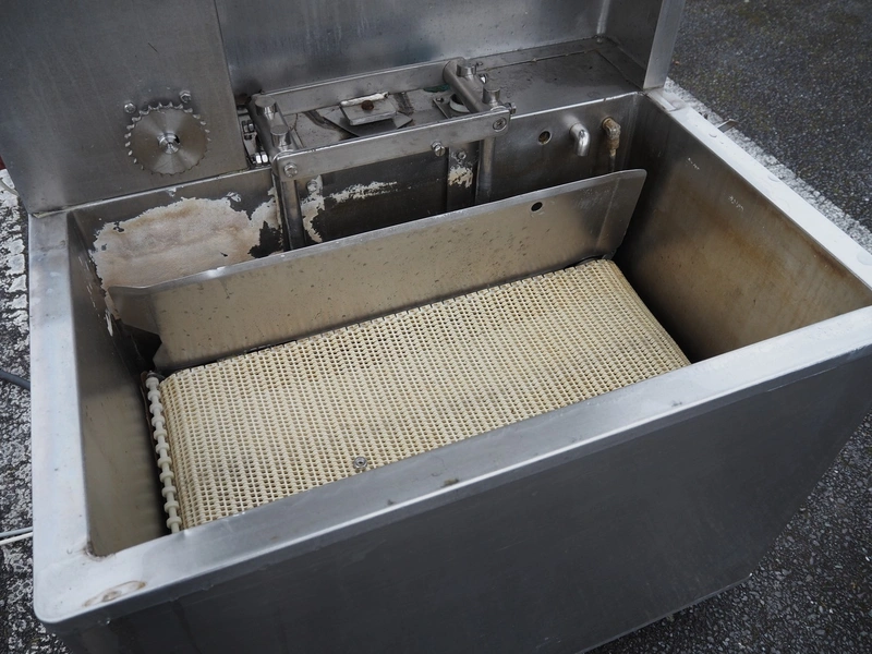 Tecnotrip dip tank, plastic mesh belt, belt width: 400 mm, clearance: 450 mm x 300 mm, total dimensions: 1140 mm x 970 mm x 1600 mm.