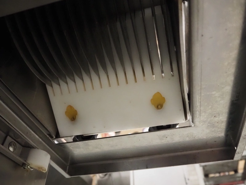 Mobile strip cutter, 13 knives, distance between knives: 22 mm, total dimensions: 770 mm x 500 mm x 710 mm.
