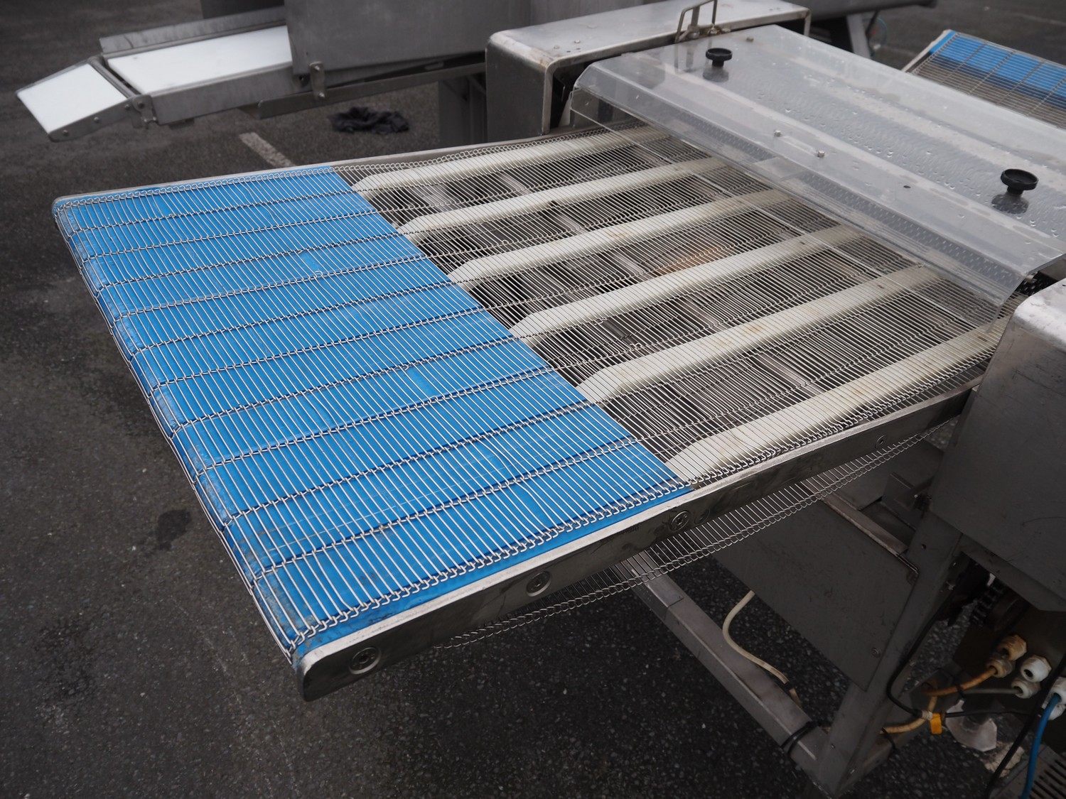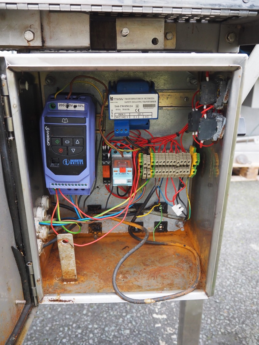Bridge tenderizer, s/s mesh belt, belt width: 710 mm, working width: 735 mm, total dimensions: 1700 mm x 1250 mm x 1250 mm.