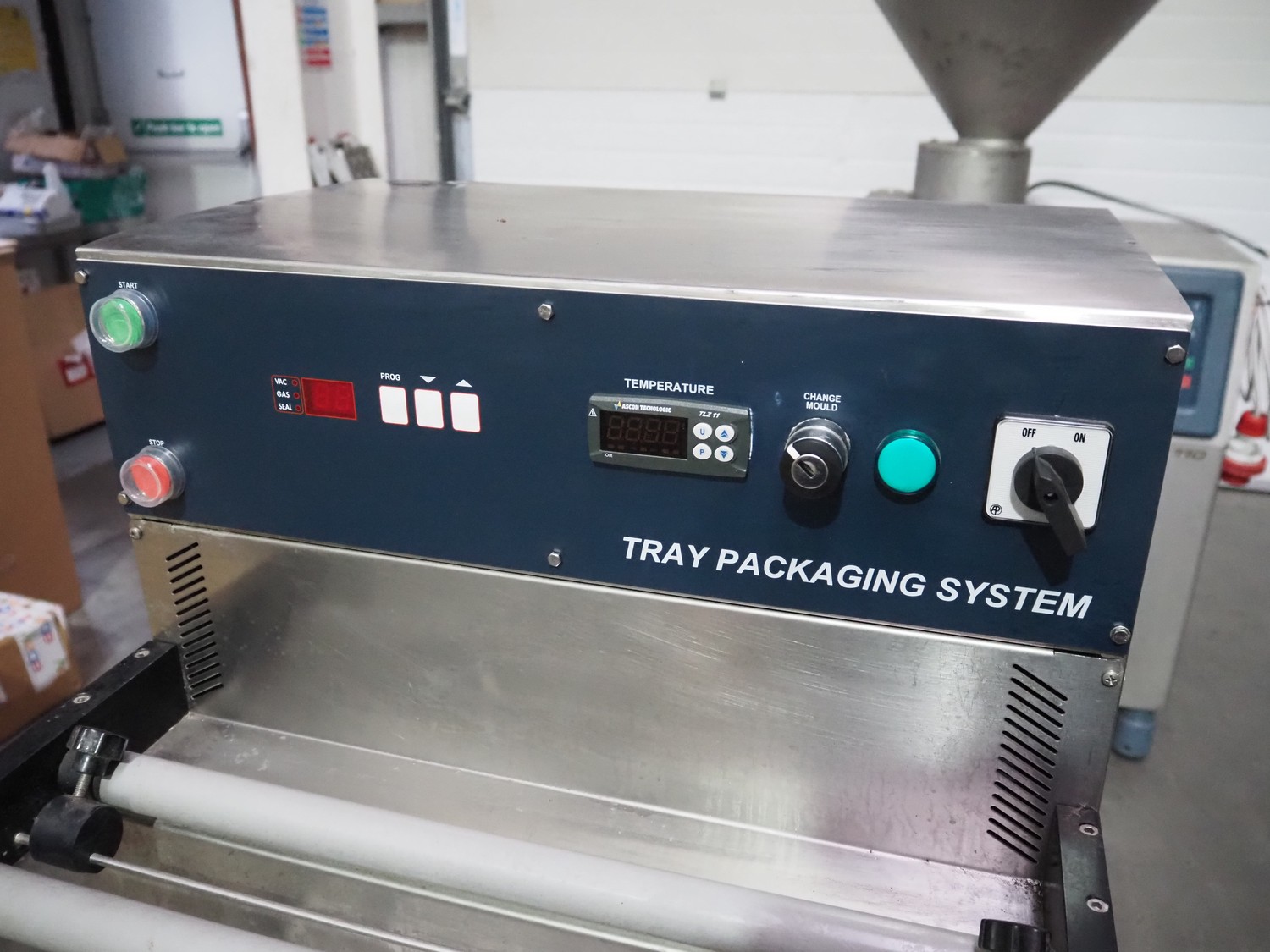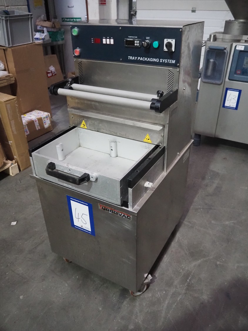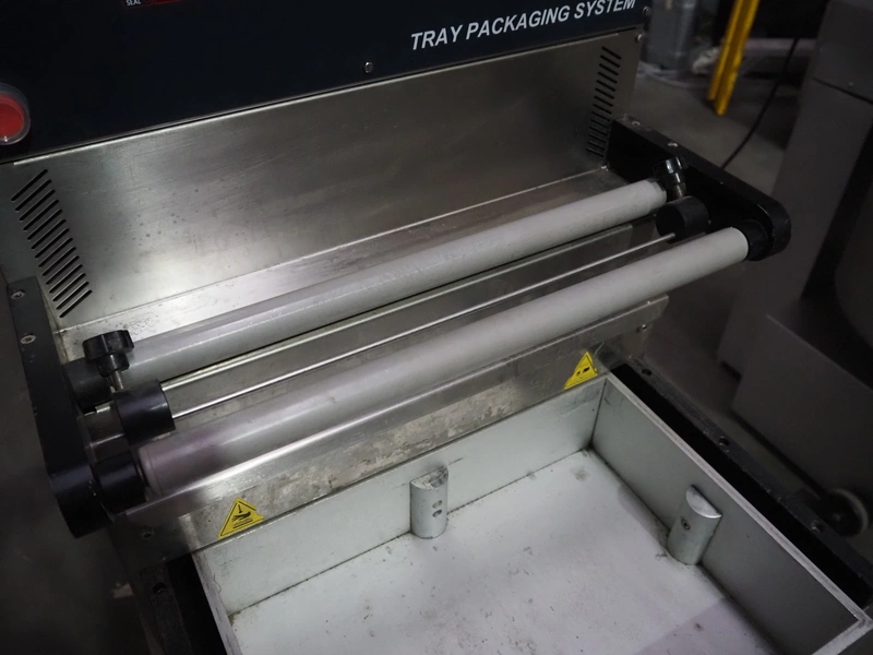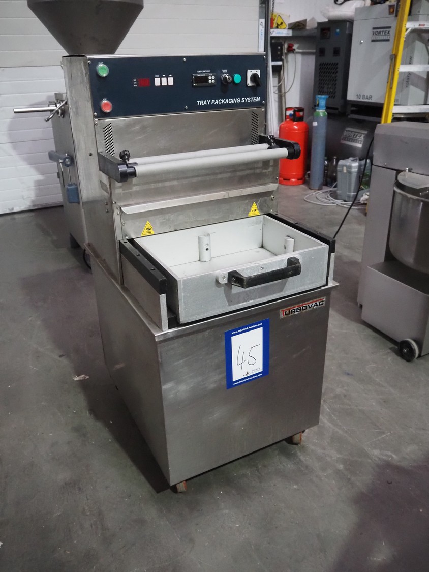HFE Vacuum Systems bv mobile traysealer, model: TPS COMPACT XL, serial number: 07211, year of construction: 2007, 230 V, 1 Ph, 50 Hz, 8 A, weight: 150 kg, Busch vacuum pump, type: RA 0021 B 3S3 APZZ, year of construction: 2007, capacity: 21 m³ per hour, dye: (2x) 220 mm x 150 mm, film width: 410 mm, total dimensions: 850 mm x 560 mm x 1300 mm.