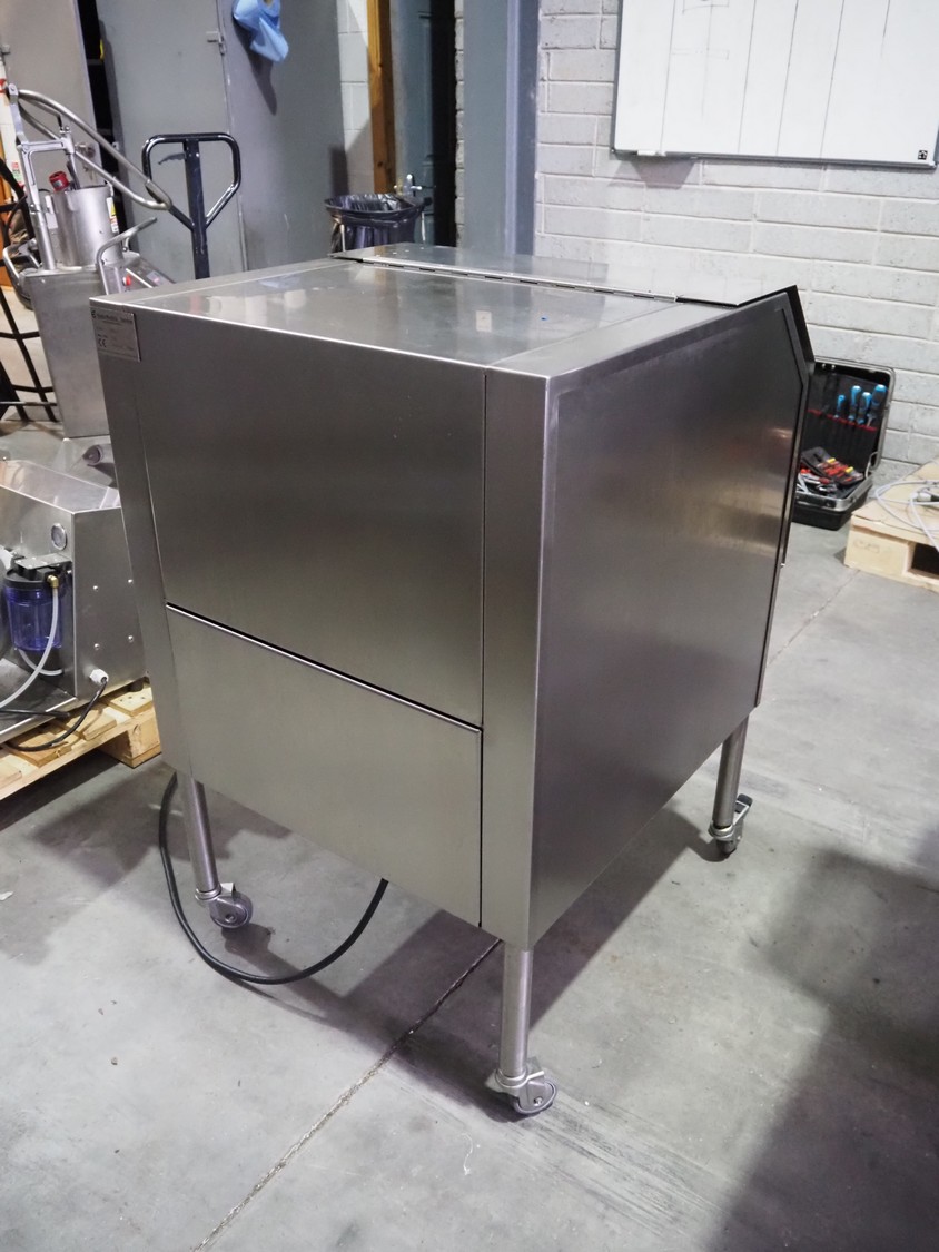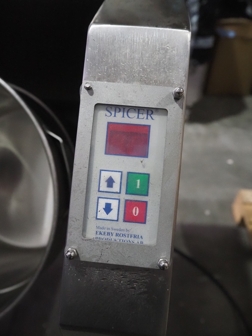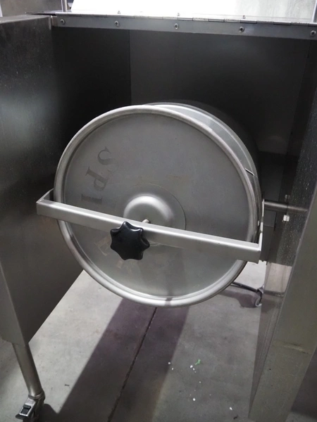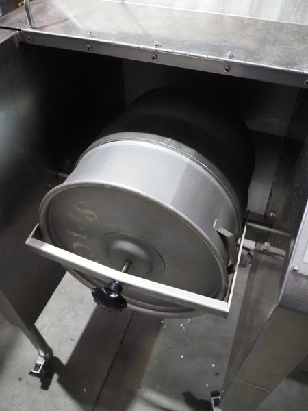 Ekeby Rostfria Prod. AB mobile tumbler for spices, model: spicer, number: GB 2053, year of construction: 2022, 240 V, 1 Ph, 50 Hz, s/s tub, inside dimensions: Ø 400 mm x 400 mm, total dimensions: 780 mm x 710 mm x 1100 mm.