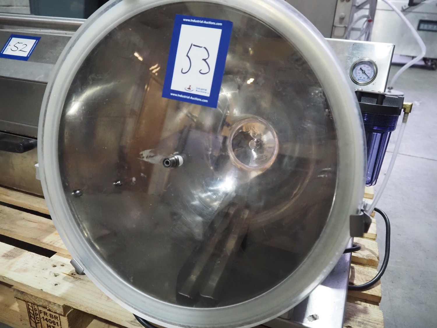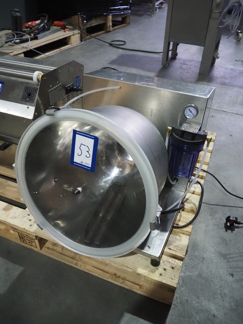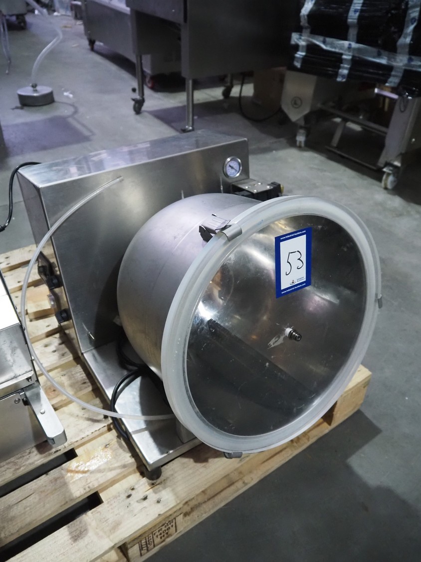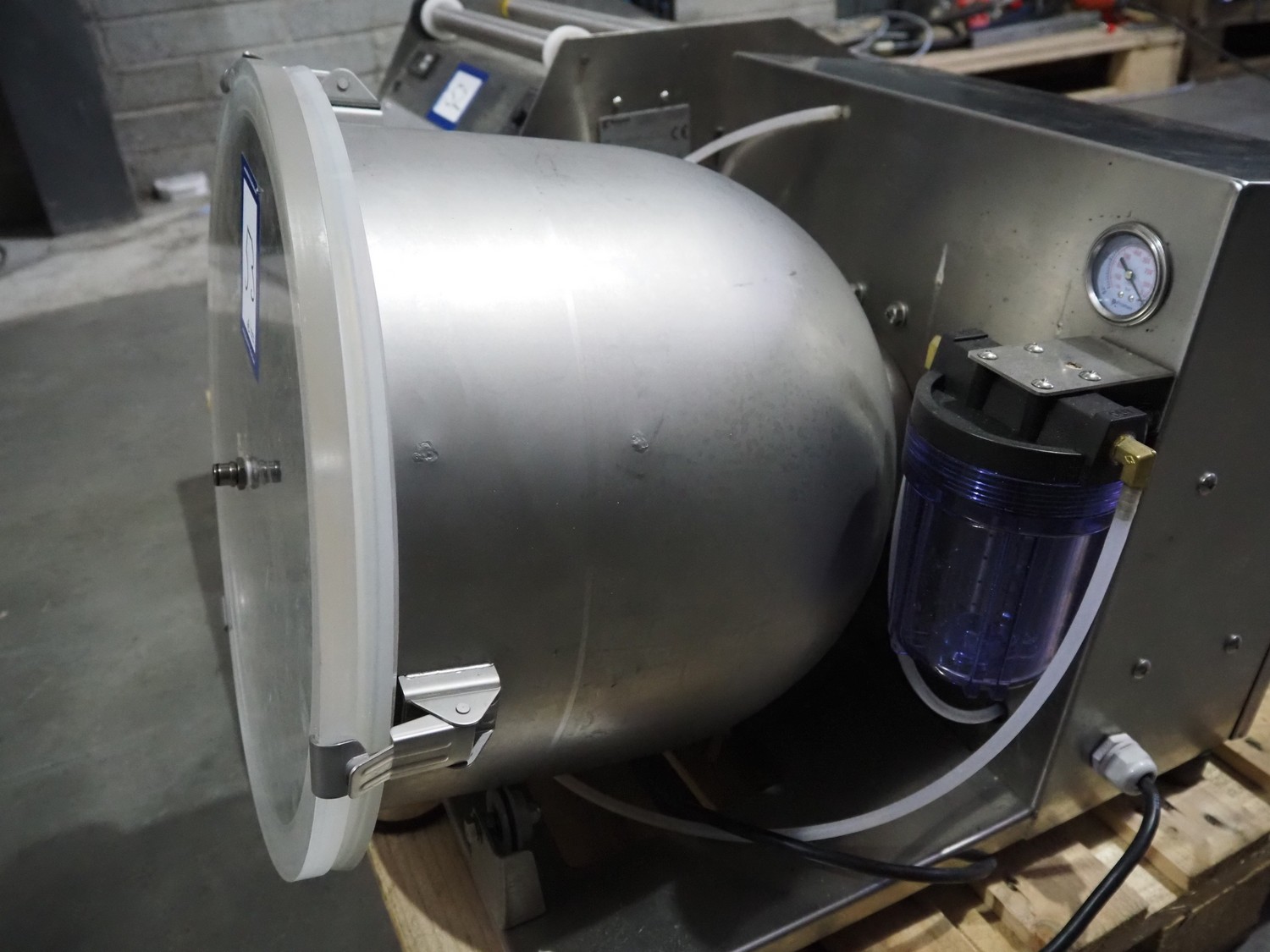 Promax tumbler, model: TM-40, serial number: 21041301, 220 V, 1 Ph, 50 Hz, 10 A, dimensions tumbler: Ø 400 mm x 330 mm, total dimensions: 640 mm x 500 mm x 500 mm. Technical condition unknown.