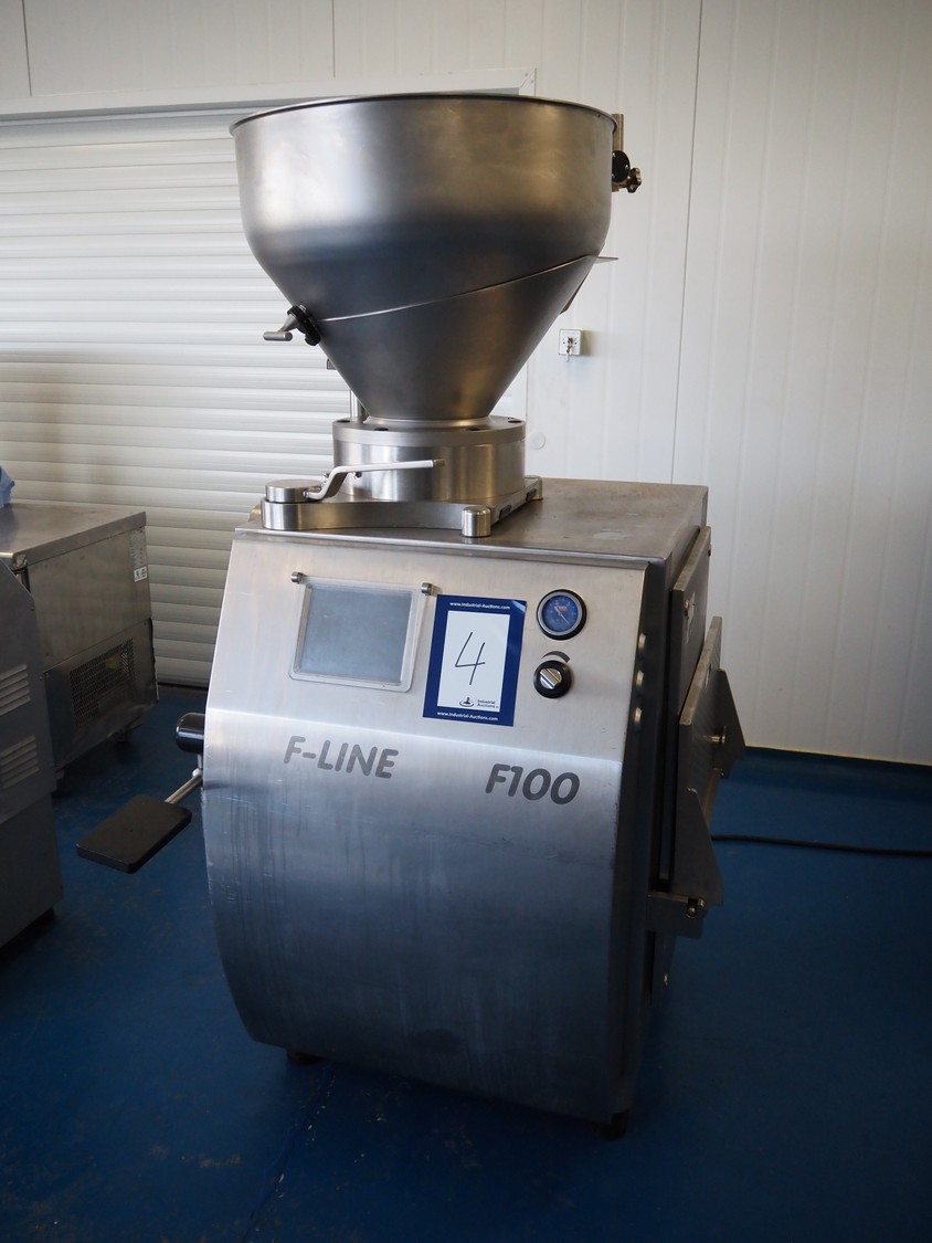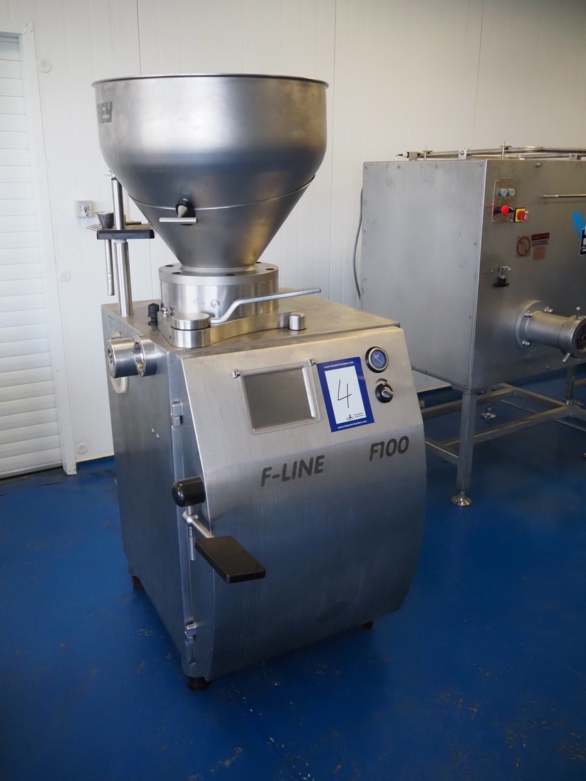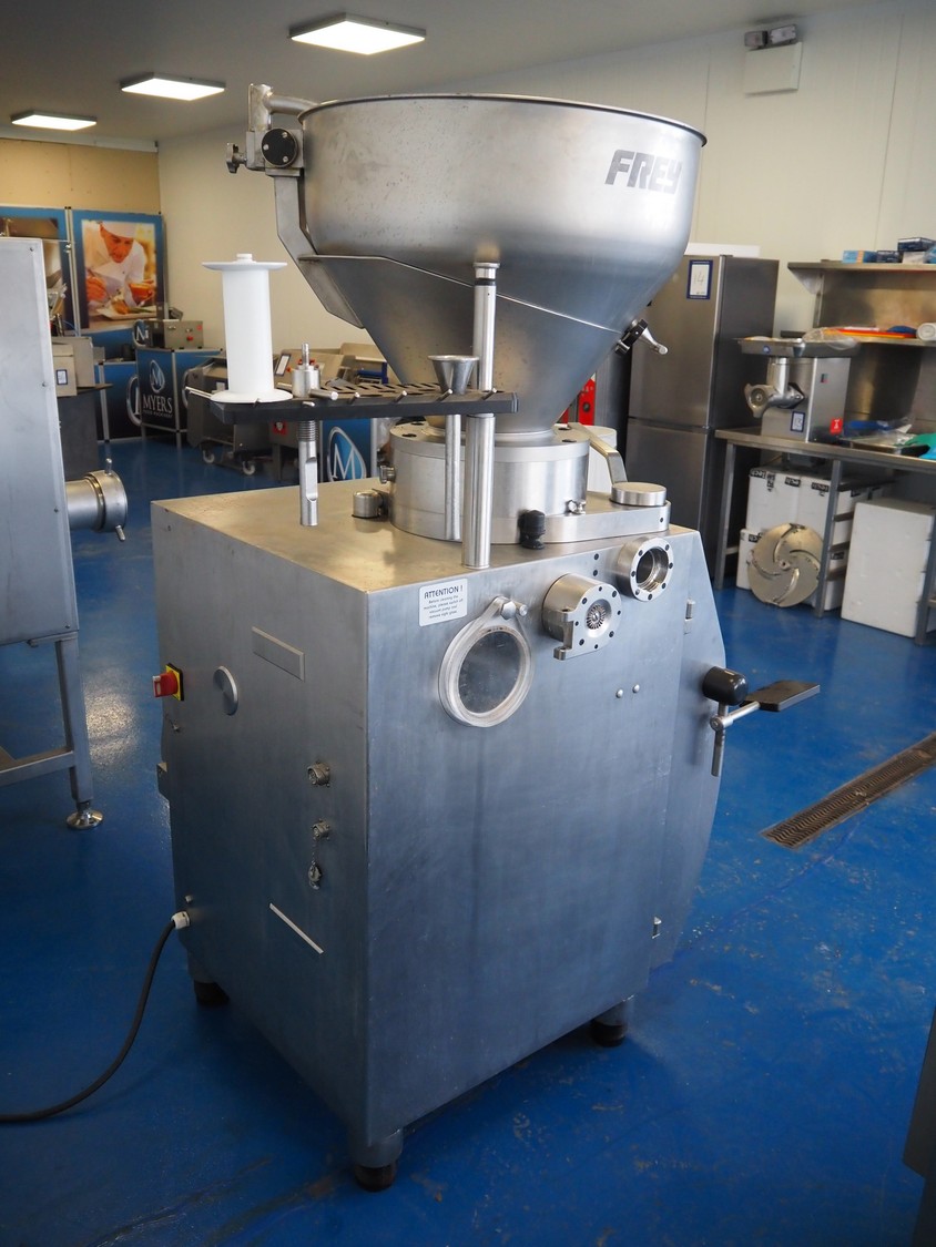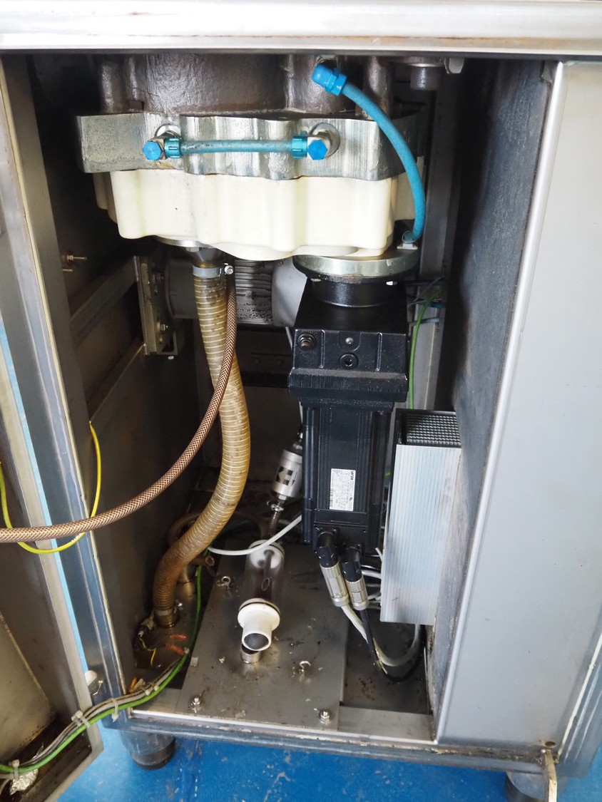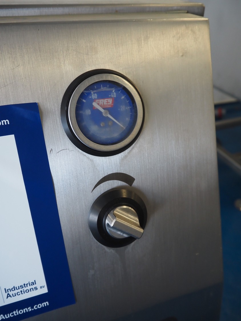 Frey Maschinenbau GmbH vacuum filling machine, type: F-LINE F100, machine number: F 100T2 015088, year of construction: 2008, 400 V, 50 Hz, 4.70 kW, dimensions: 950 mm x 950 mm x 1880 mm. Incomplete, missing 1 vane and vacuum pump.