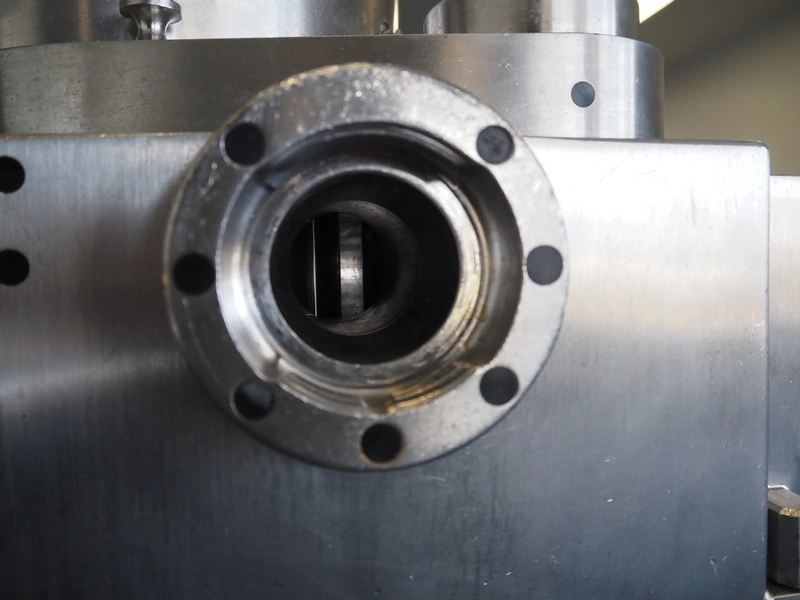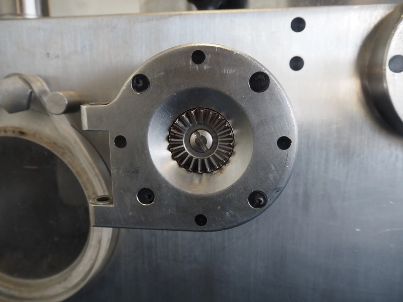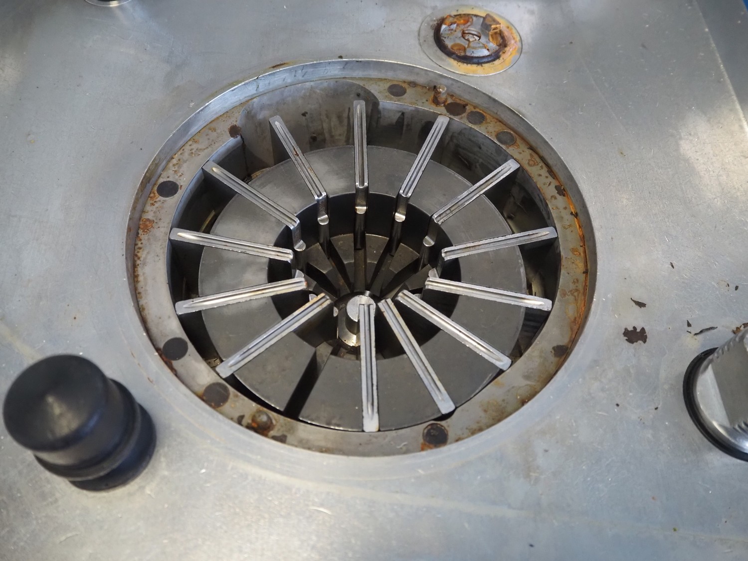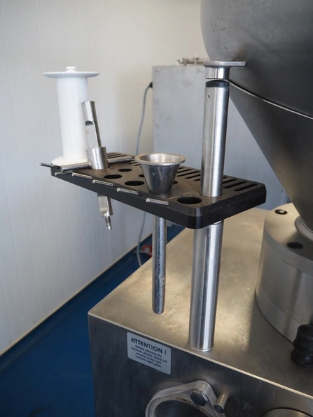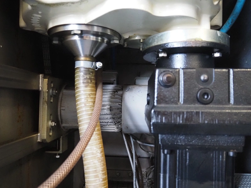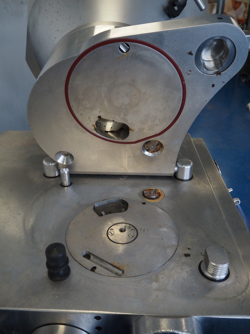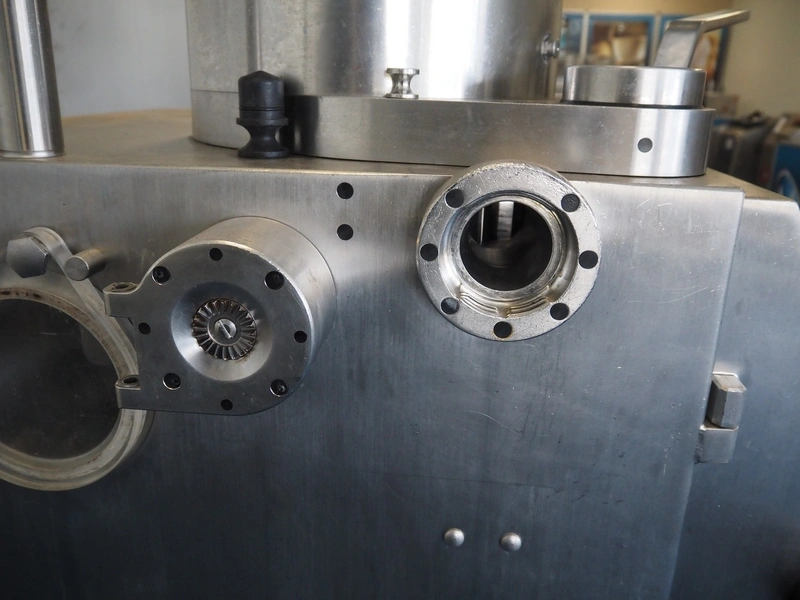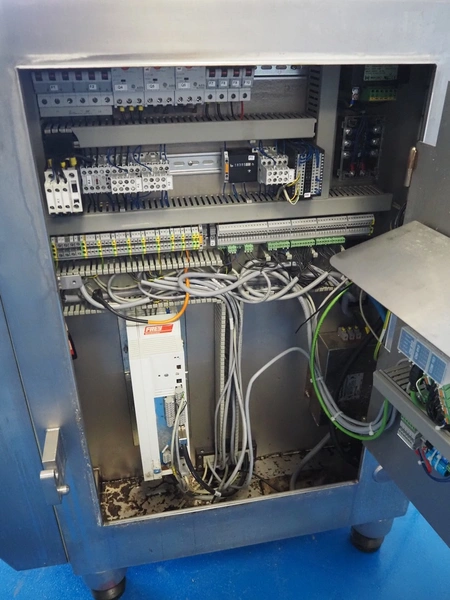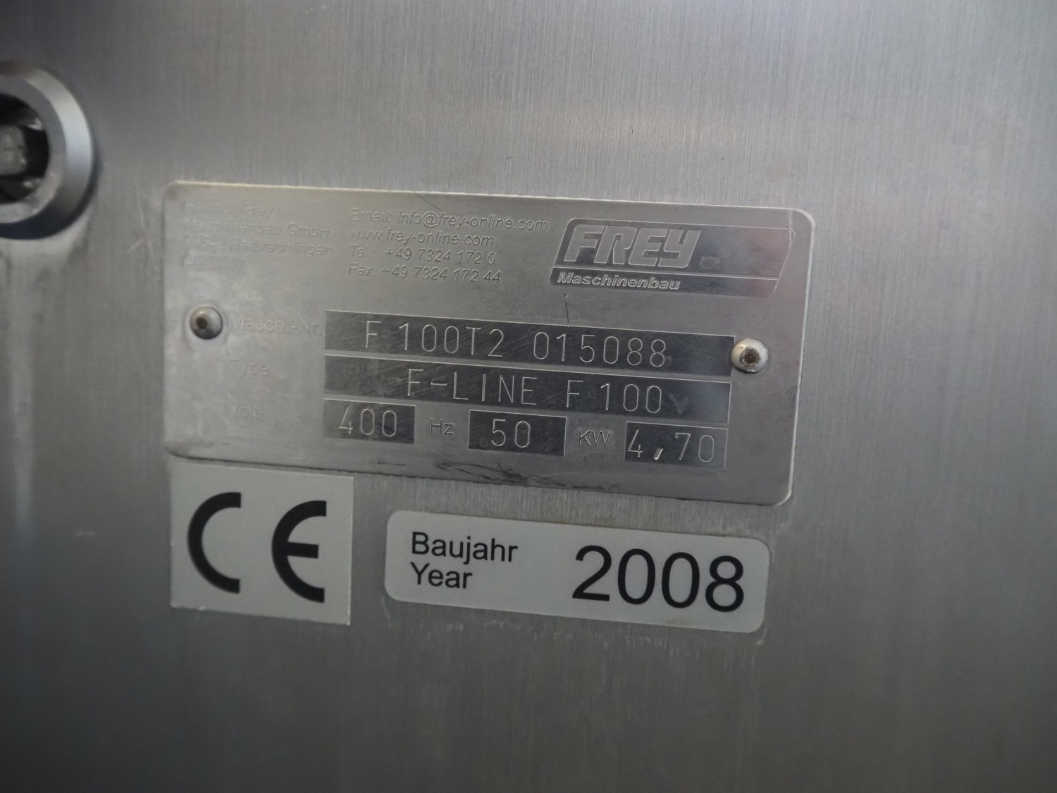 Frey Maschinenbau GmbH vacuum filling machine, type: F-LINE F100, machine number: F 100T2 015088, year of construction: 2008, 400 V, 50 Hz, 4.70 kW, dimensions: 950 mm x 950 mm x 1880 mm. Incomplete, missing 1 vane and vacuum pump.