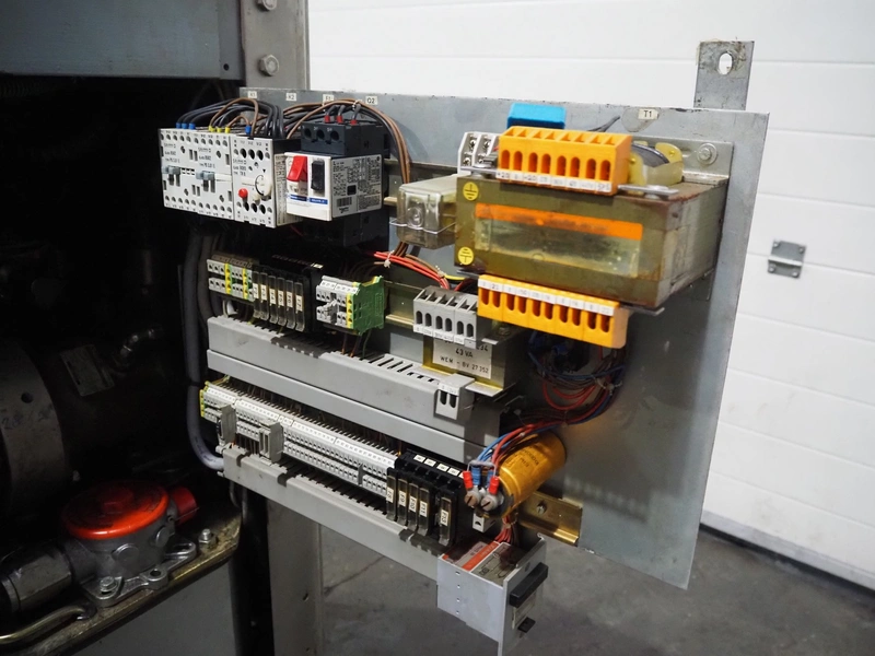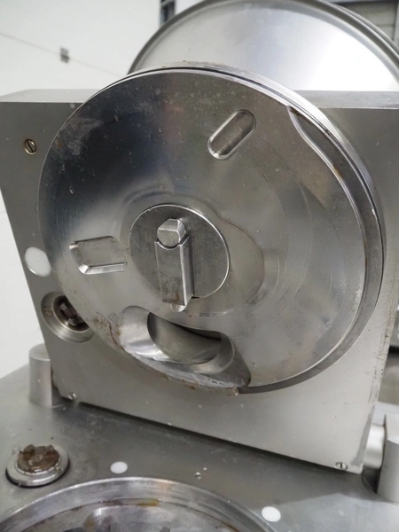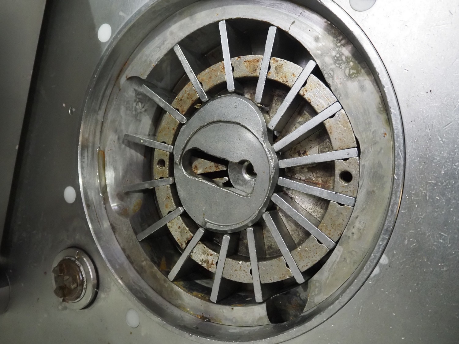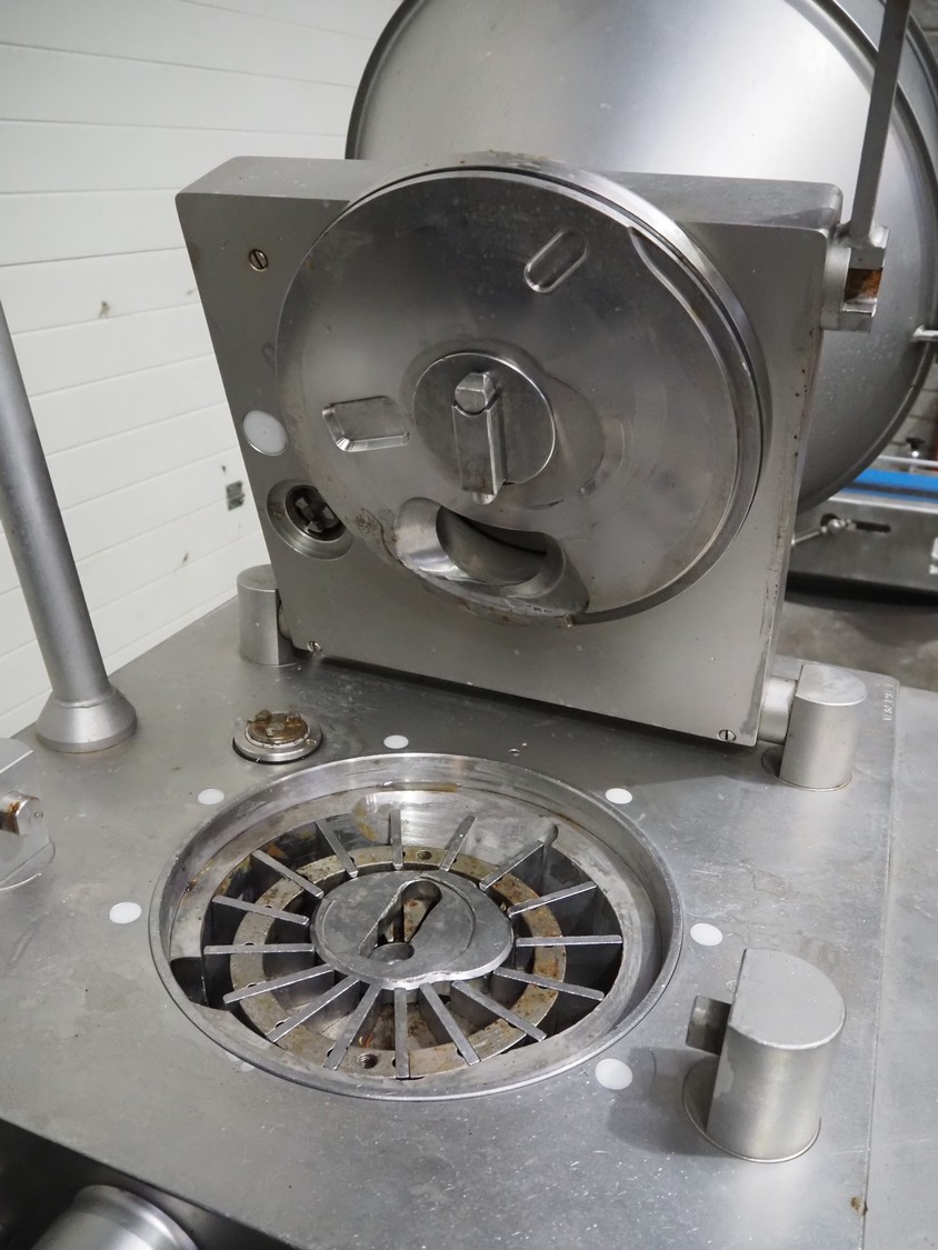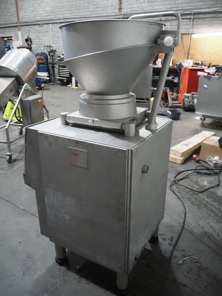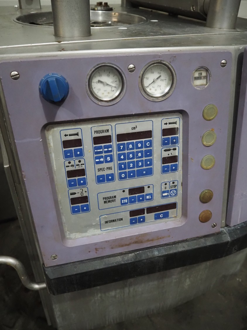 Handtmann vacuum filling machine, type: VF 80, number: 1284, 420 V, 50 Hz, 11.6 A, 4 kW, Rietschle vacuum pump, dimensions: 1000 mm x 830 mm x 1630 mm.
