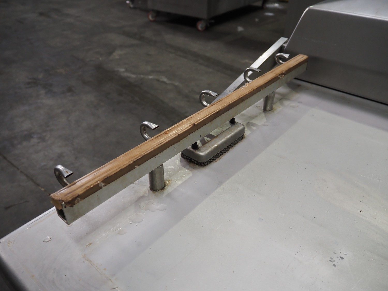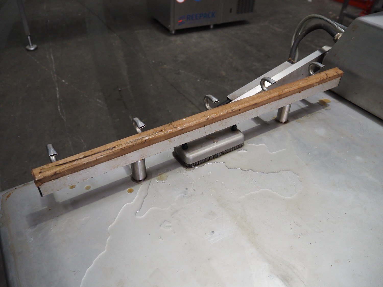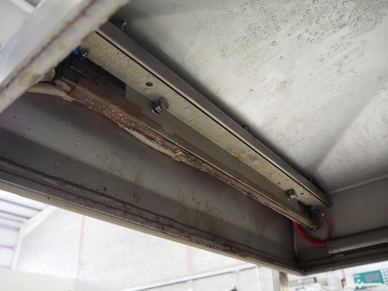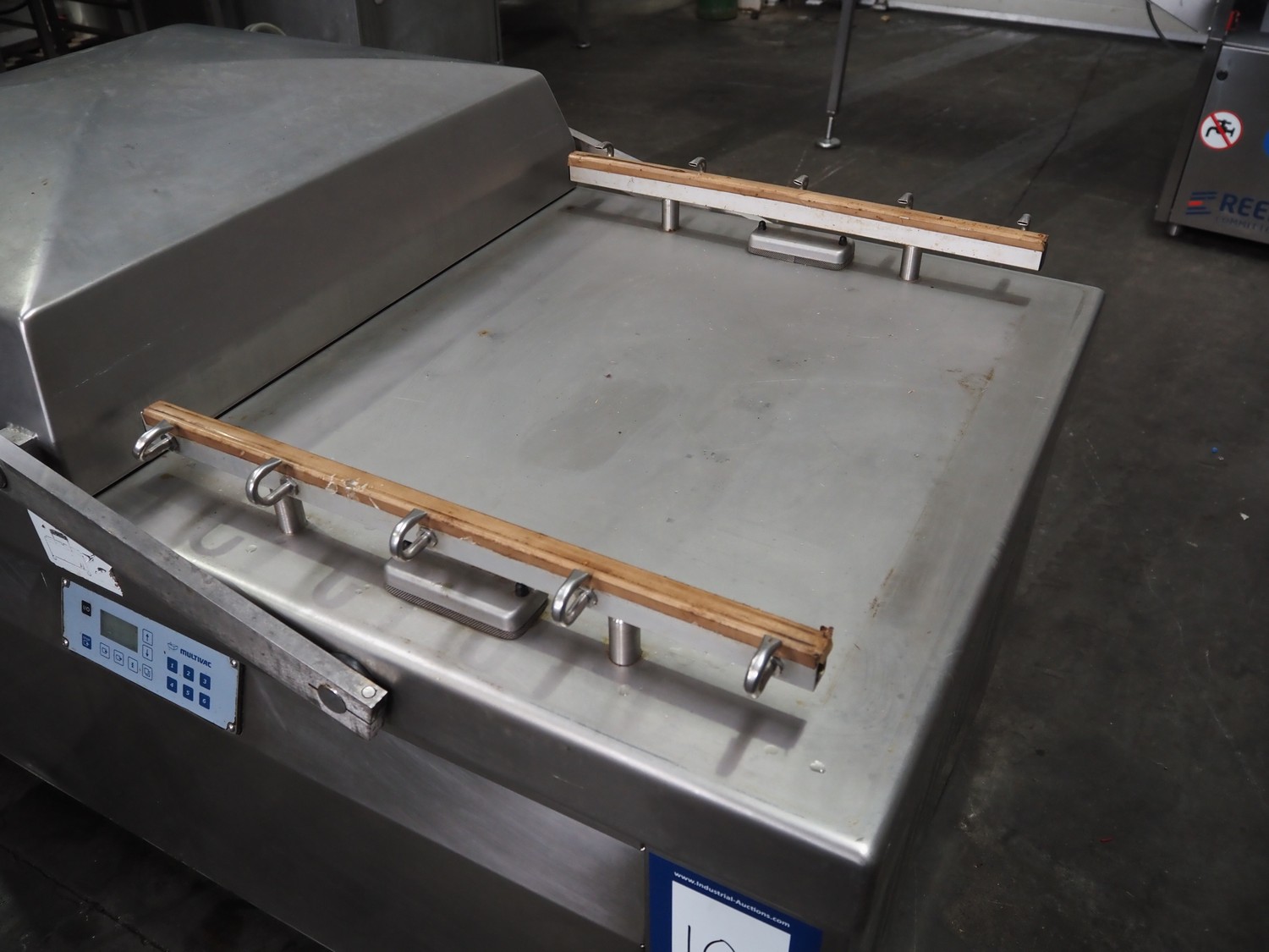 Multivac mobile double chamber vacuum machine, Busch vacuum pump, type: RA 0160 D 5Z1 VRXZ, year of construction: 2011, capacity: 160 m³ per hour, seal length: (2x) 670 mm, dimensions chamber: (2x) 670 mm x 740 mm, total dimensions: 1590 mm x 1010 mm x 1070 mm.