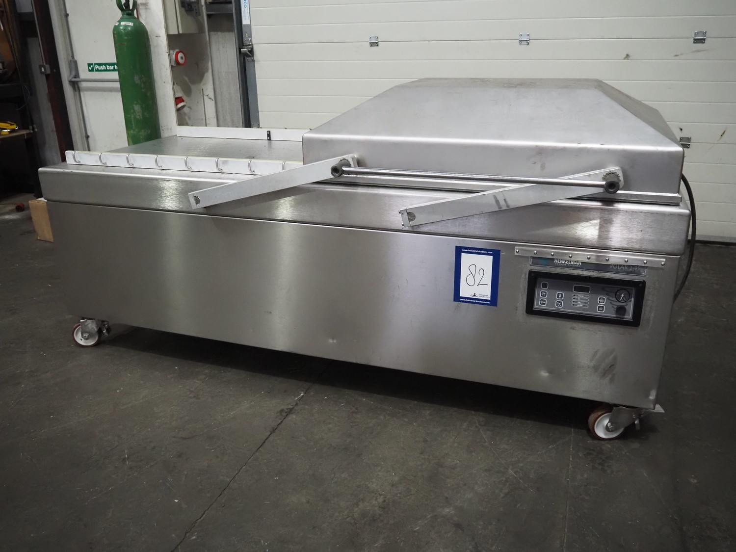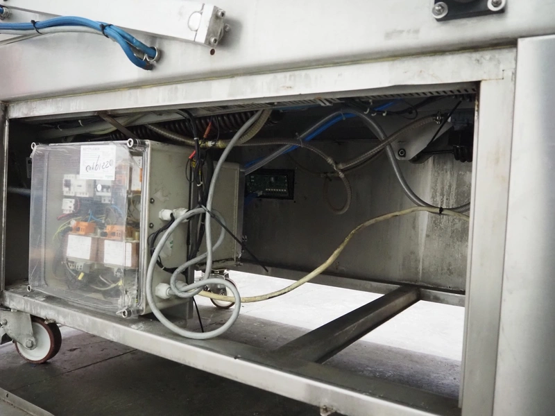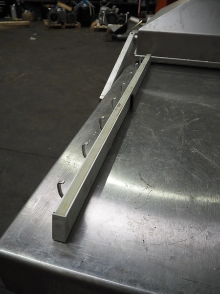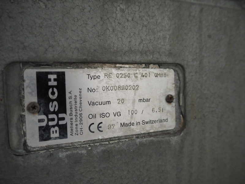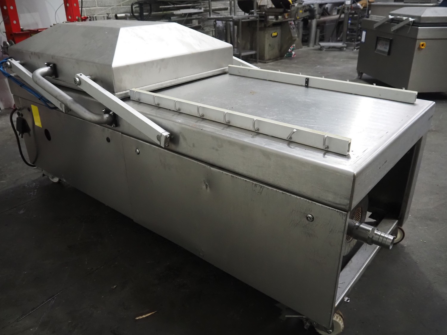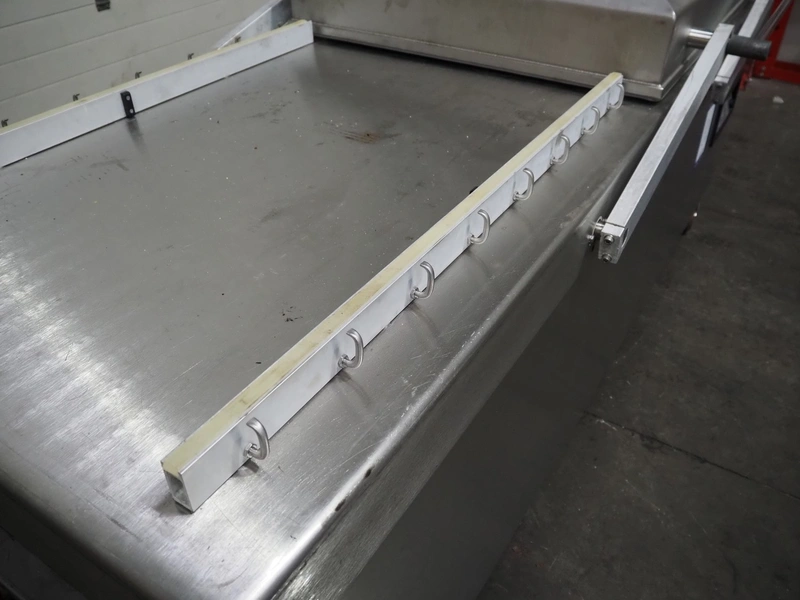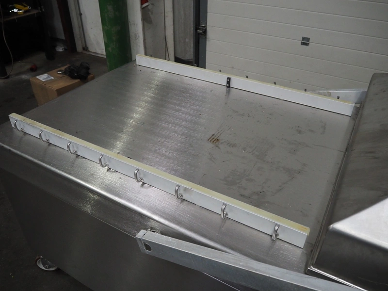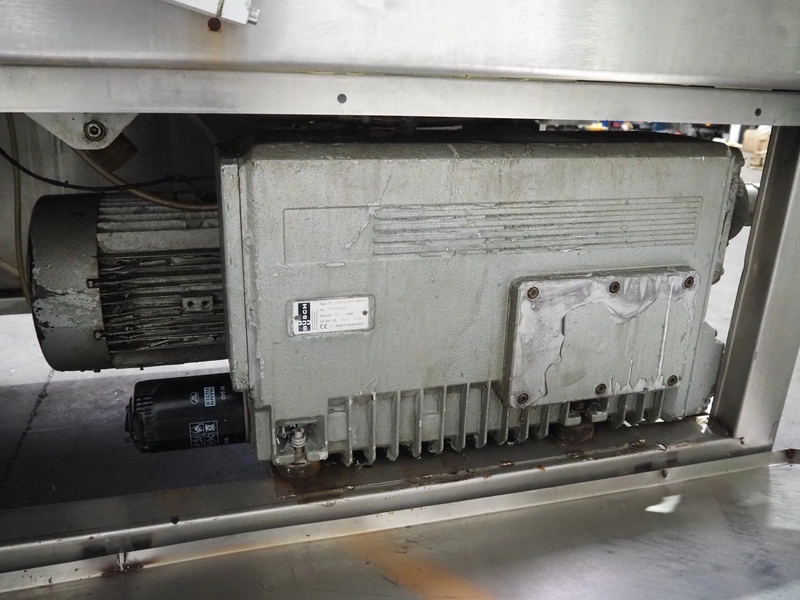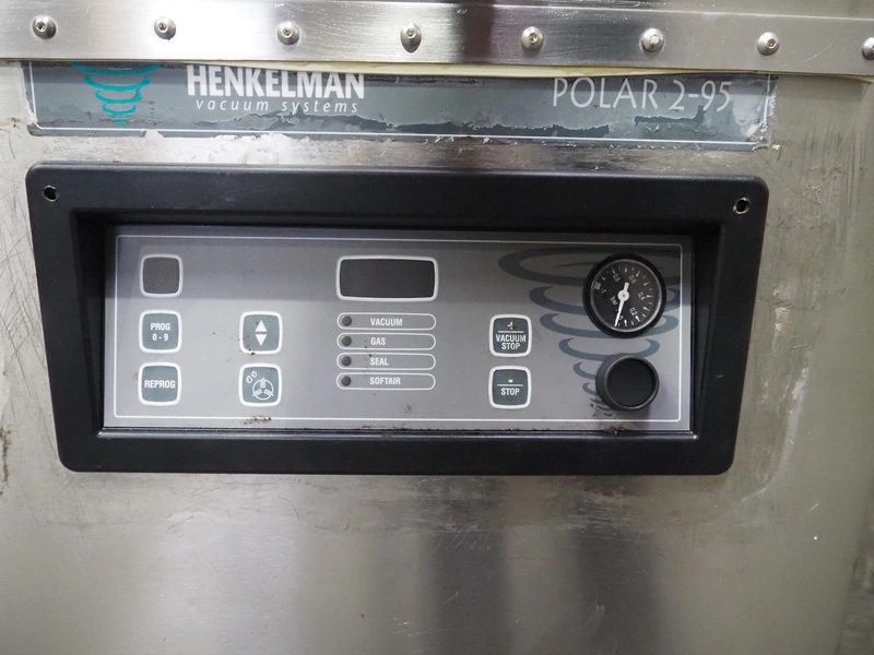 Henkelman mobile double chamber vacuum machine, model: POLAR 2-95, Busch vacuum pump, type: RC 0250 C 401 QMBB, year of construction: 1997, capacity: 250 m³ per hour, seal width: (2x) 1100 mm, dimensions chamber: (2x) 1100 mm x 730 mm, total dimensions: 2410 mm x 960 mm x 1160 mm.
