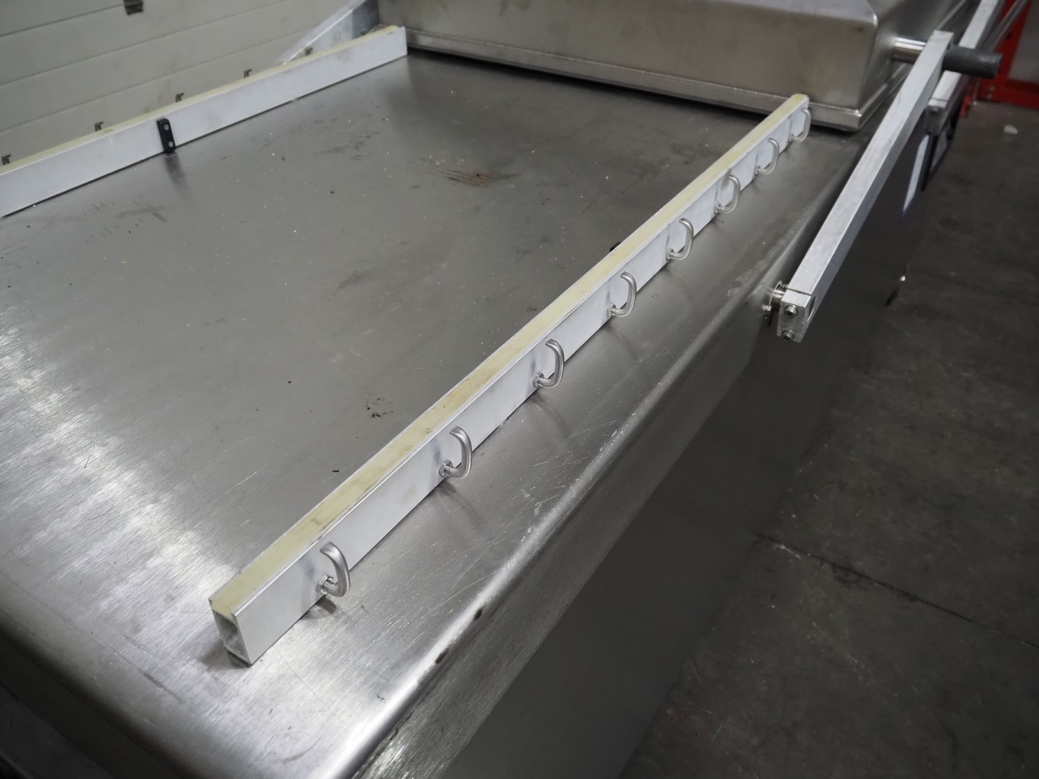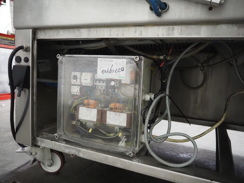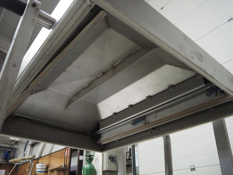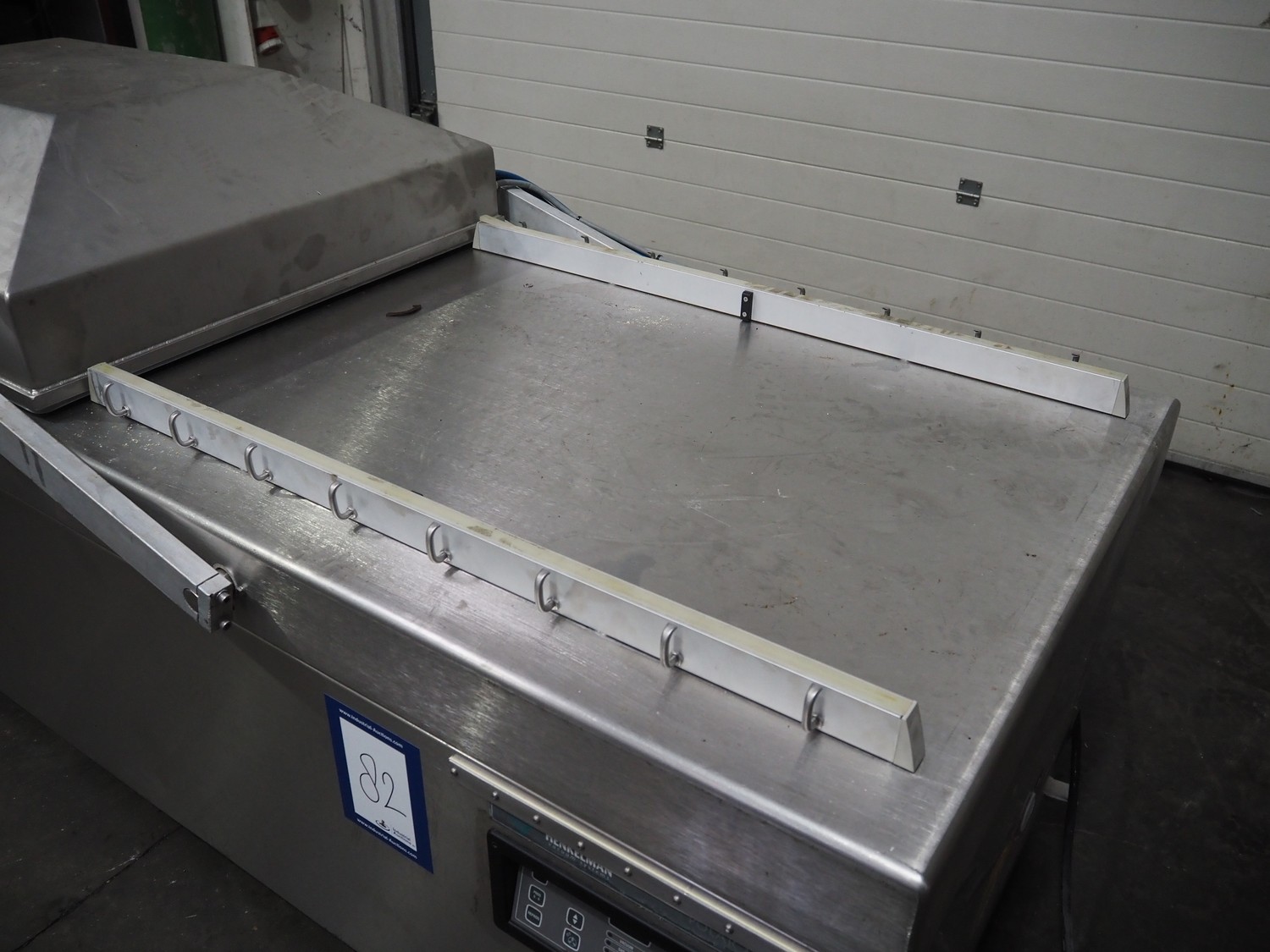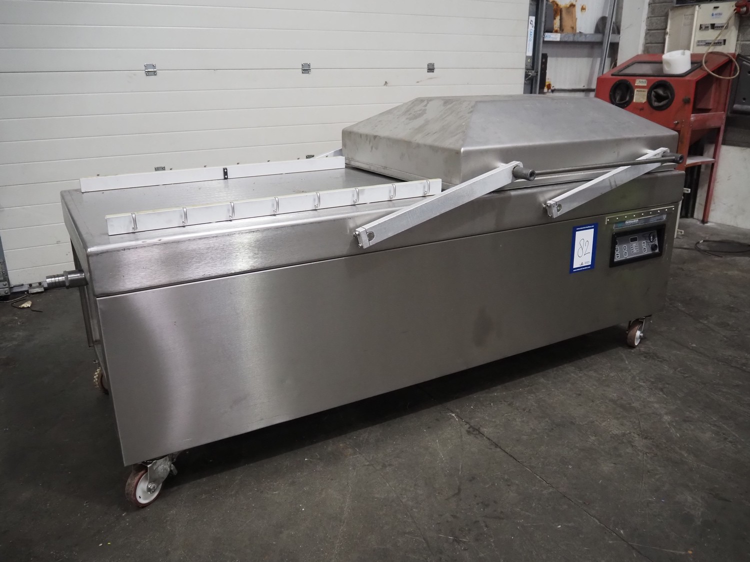 Henkelman mobile double chamber vacuum machine, model: POLAR 2-95, Busch vacuum pump, type: RC 0250 C 401 QMBB, year of construction: 1997, capacity: 250 m³ per hour, seal width: (2x) 1100 mm, dimensions chamber: (2x) 1100 mm x 730 mm, total dimensions: 2410 mm x 960 mm x 1160 mm.
