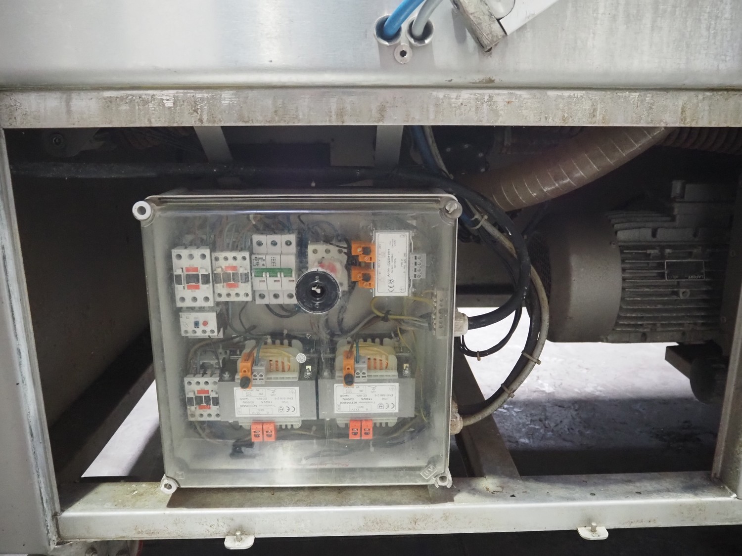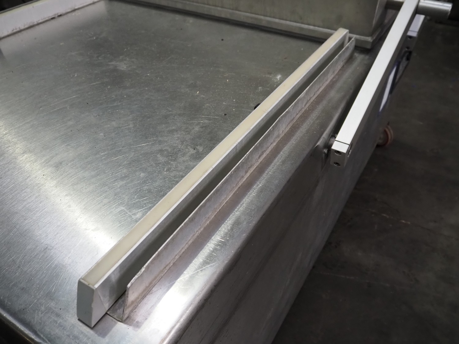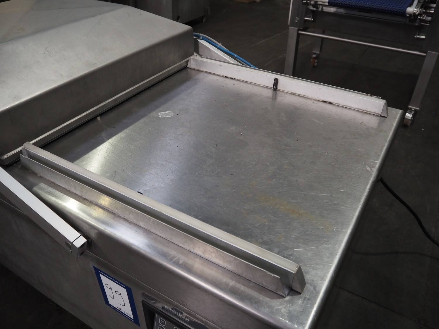 Henkelman mobile double chamber vacuum machine, Busch vacuum pump, type: RA 0302 D 5Z3 DIXX, year of construction: 2014, capacity: 300 m³ per hour, seal width: (2x) 840 mm, dimensions chamber: (2x) 840 mm x 830 mm, total dimensions: 1900 mm x 1200 mm x 1120 mm.