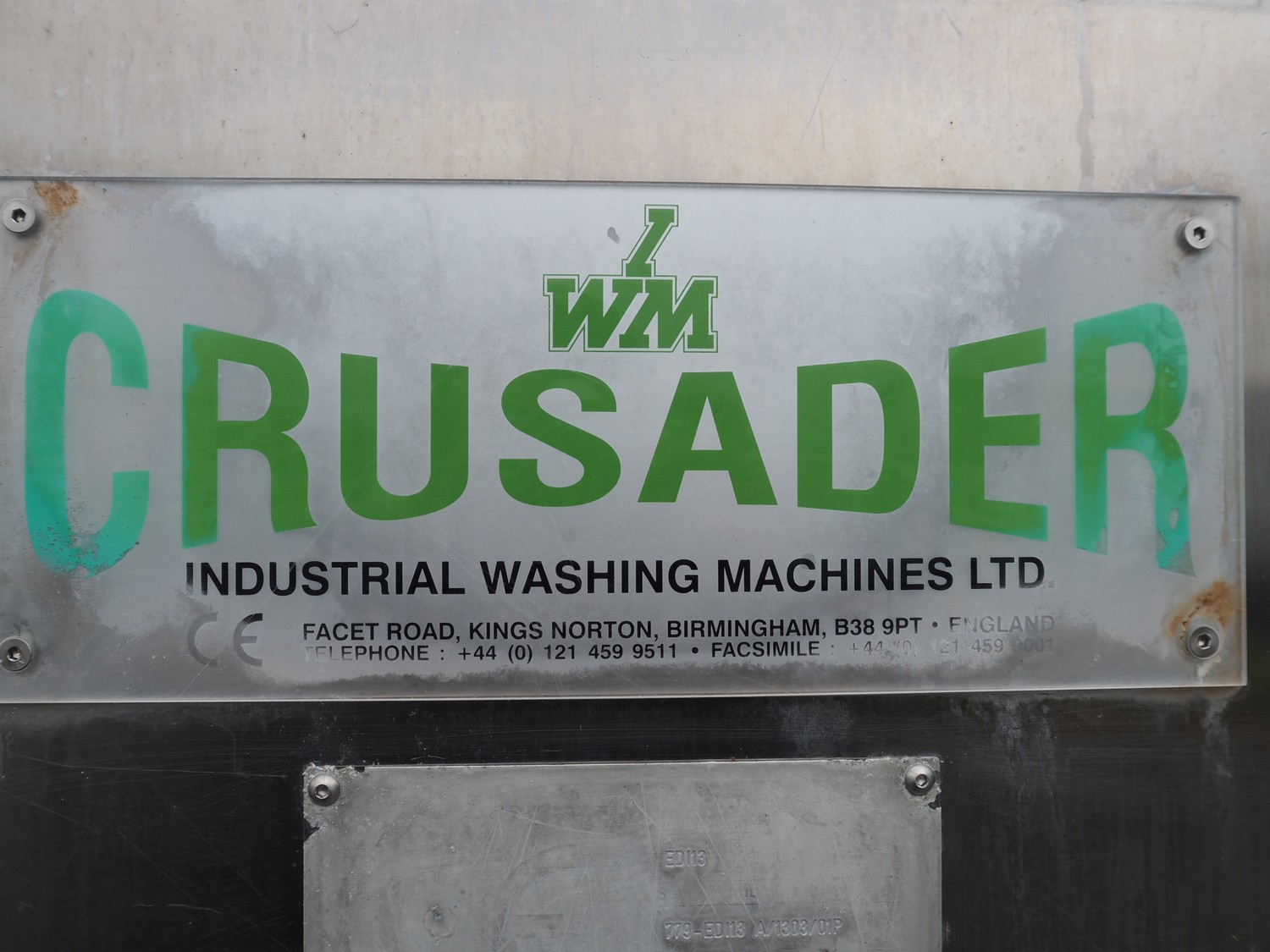 Crusader Industrial Washing Machines LTD dishwasher, model: EDI13, serial number: 779-EDI13 A/1303/01P, year of construction: 30/03/2007, inside dimensions: 1330 mm x 720 mm x 700 mm, total dimensions: 1500 mm x 870 mm x 1870 mm.