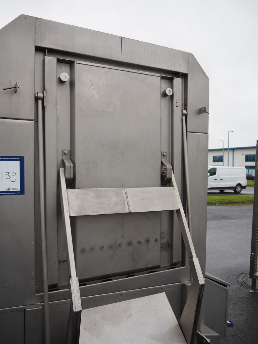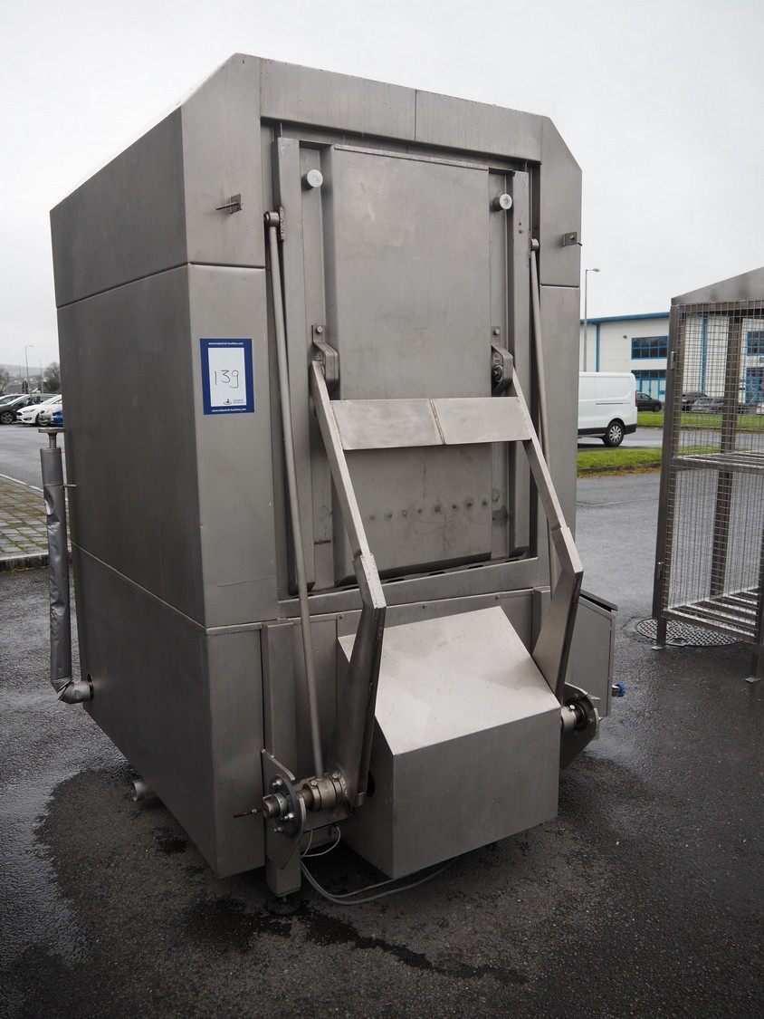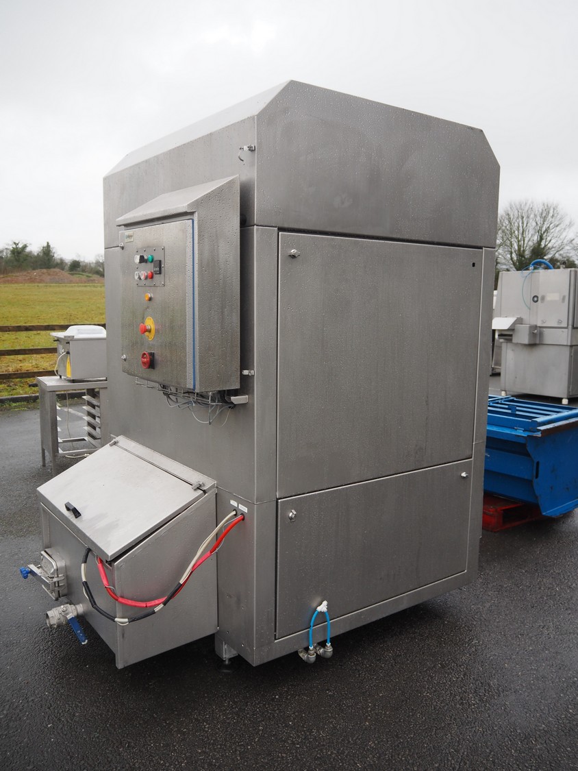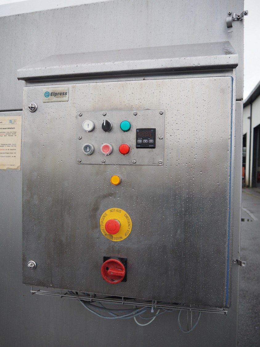 Elpress washing machine for 200 liter meat bins, total dimensions: 1940 mm x 1880 mm x 2400 mm.