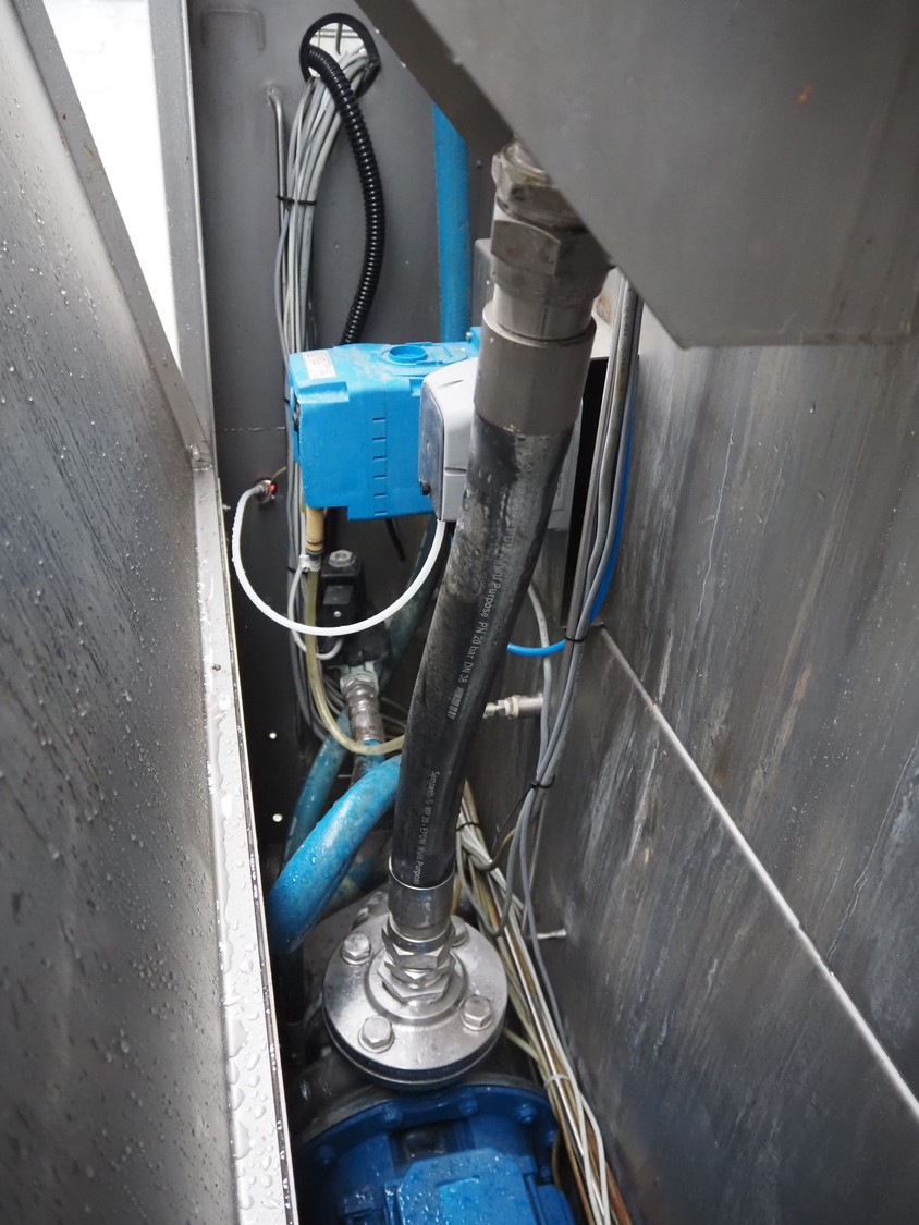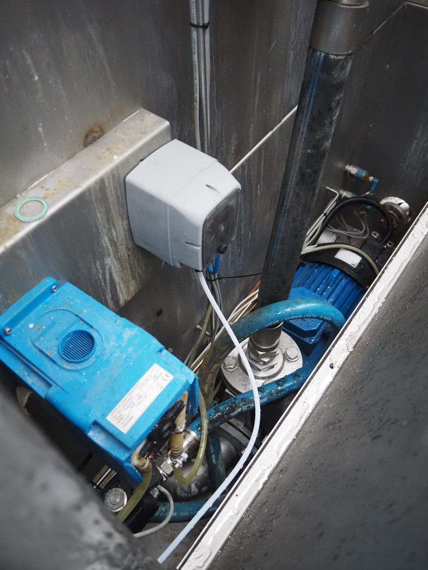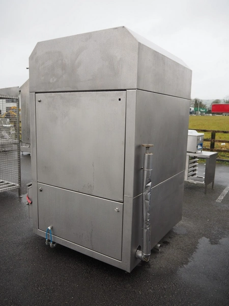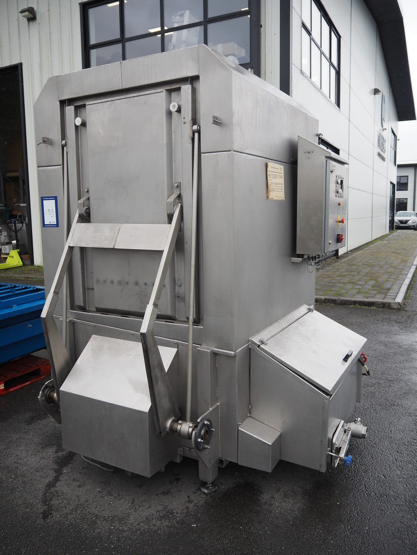 Elpress washing machine for 200 liter meat bins, total dimensions: 1940 mm x 1880 mm x 2400 mm.