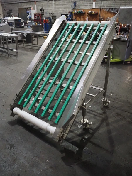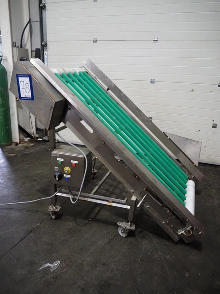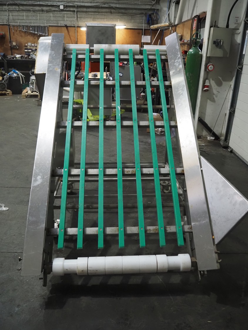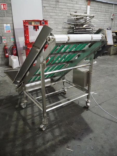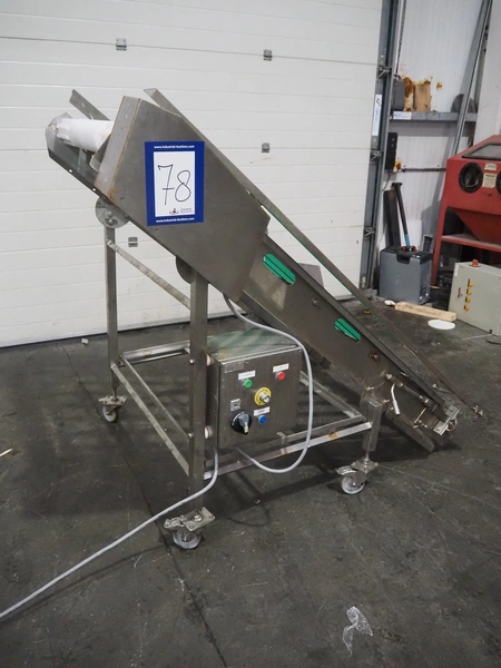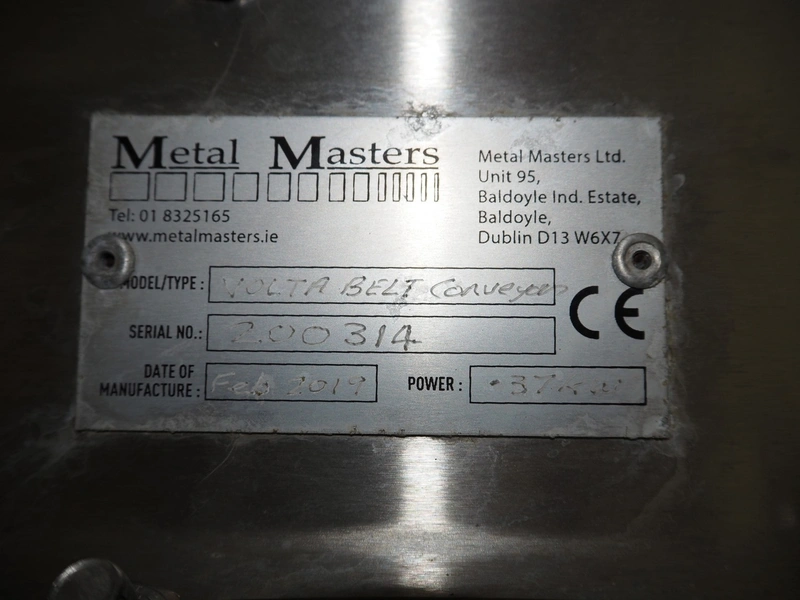 Metal Masters mobile elevating belt, s/s frame, model/type: VOLTA BELT CONVEYOR, serial number: 200314, year of construction: February 2019, 37 kW, belt width: 850 mm, total dimensions: 1600 mm x 1350 mm x 1460 mm. Without belt.