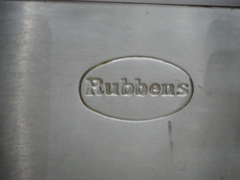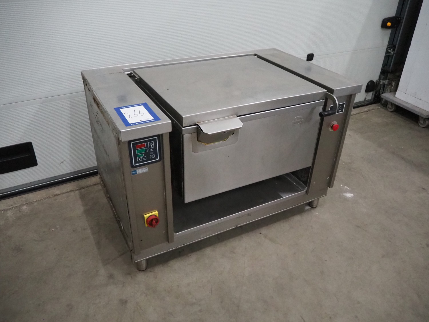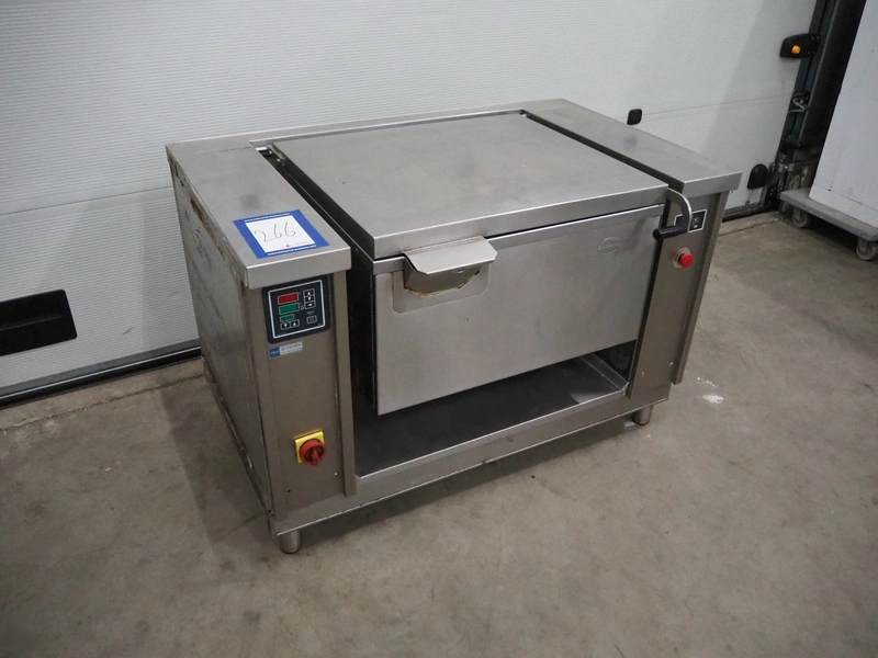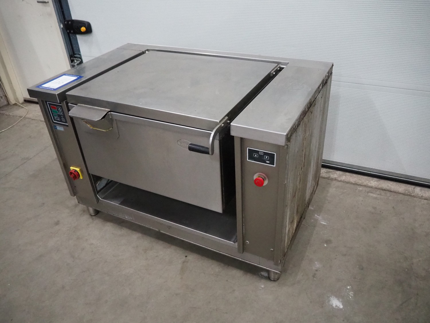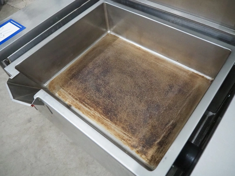 Rubbens tiltable roasting pan, inside dimensions: 550 mm x 720 mm x 210 mm, total dimensions: 850 mm x 1310 mm x 900 mm.