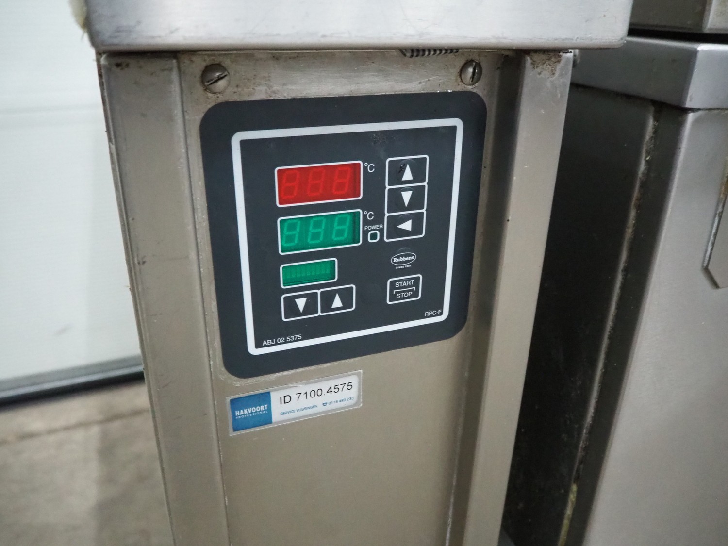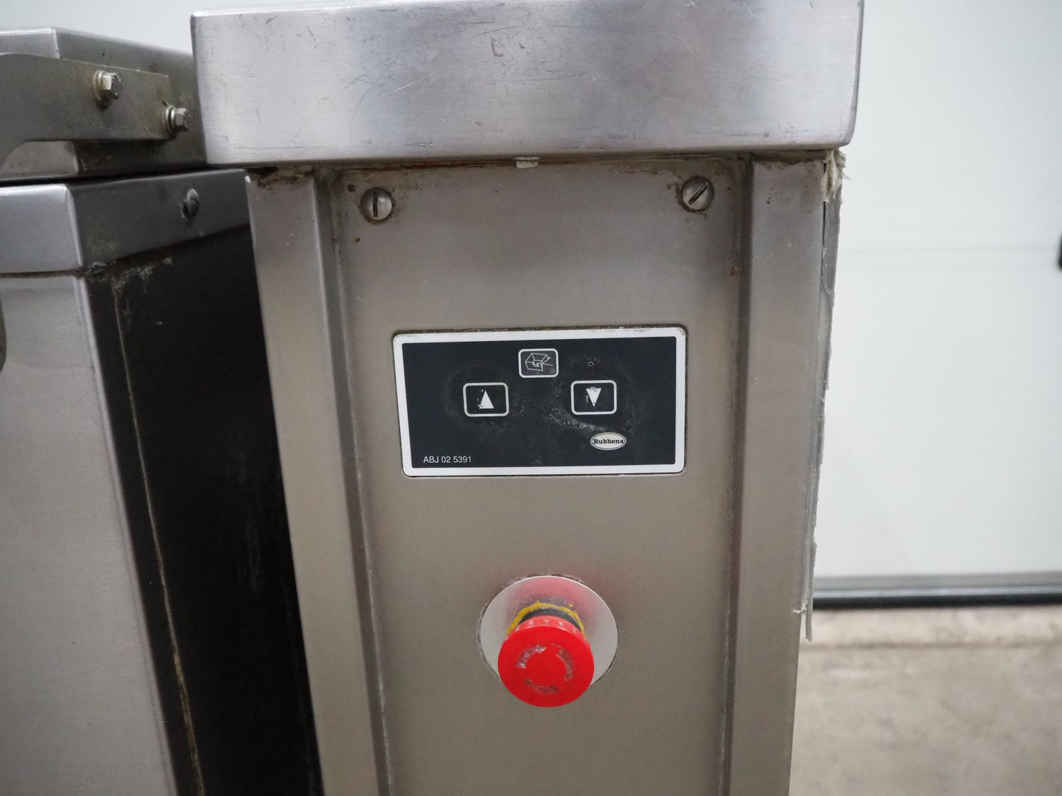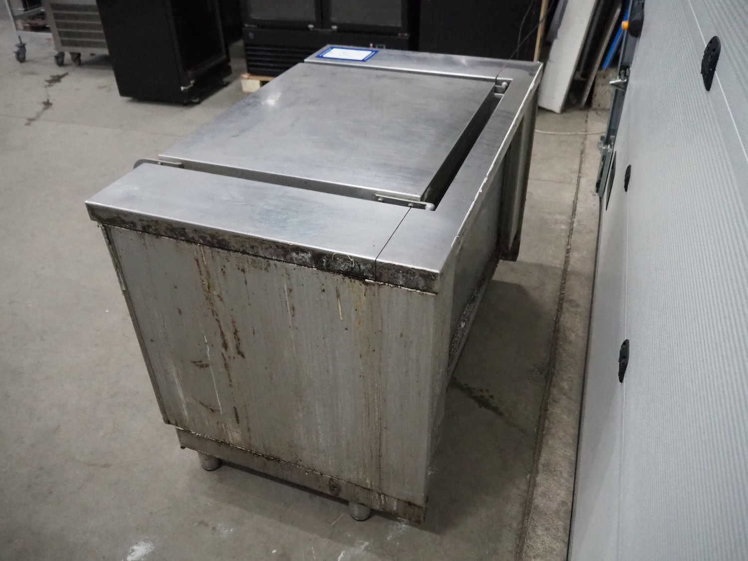 Rubbens tiltable roasting pan, inside dimensions: 550 mm x 720 mm x 210 mm, total dimensions: 850 mm x 1310 mm x 900 mm.