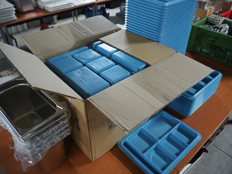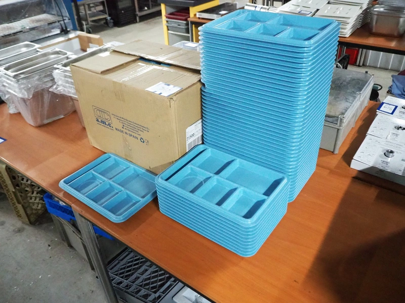 Box with plastic bins, bins dimensions: 370 mm x 265 mm, box dimensions: 390 mm x 540 mm x 350 mm.
