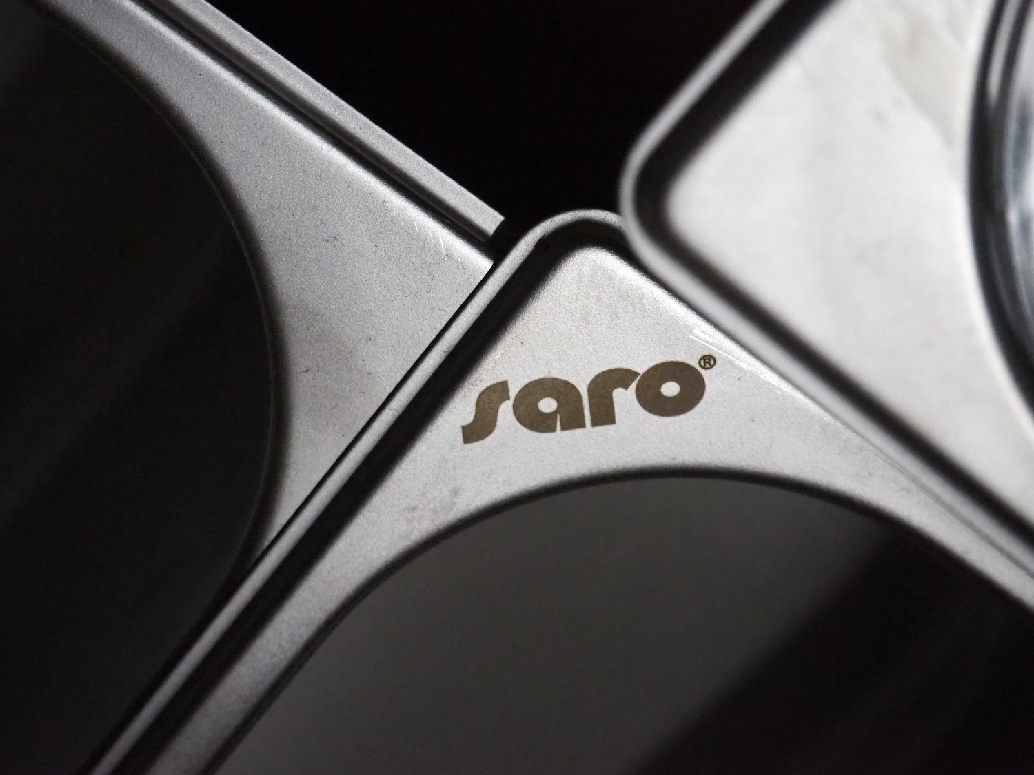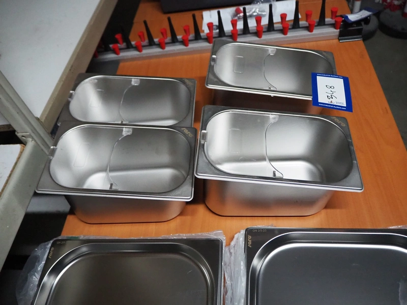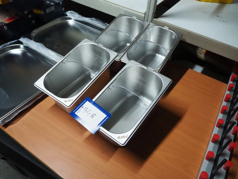 4 s/s Saro Gastro-Products GmbH tubs with plastic lid, dimensions: (4x) 250 mm x 160 mm x 160 mm.