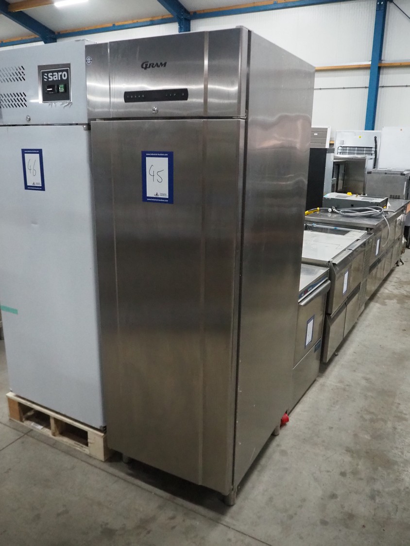 Gram Commercial A/S refrigerator, type: K 610 RG L2 4 N, serial number: 10117487, year of construction: 2013, 230 V, 50 Hz, 1.5 A, 291 W, refrigerant: R600a/102 g, 4 racks, dimensions racks: 650 mm x 525 mm, total dimensions: 870 mm x 700 mm x 2010 mm.