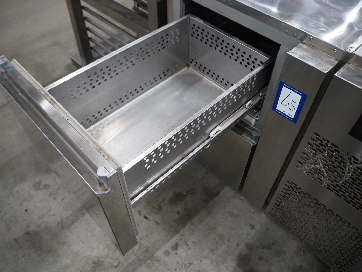 Frozen counter, model: TF1SC710, serial number: BN020289401, year of construction: 2019, 230 V, 50 Hz, 3 A, 480 W, dimensions: 690 mm x 910 mm x 870 mm. Without top.
