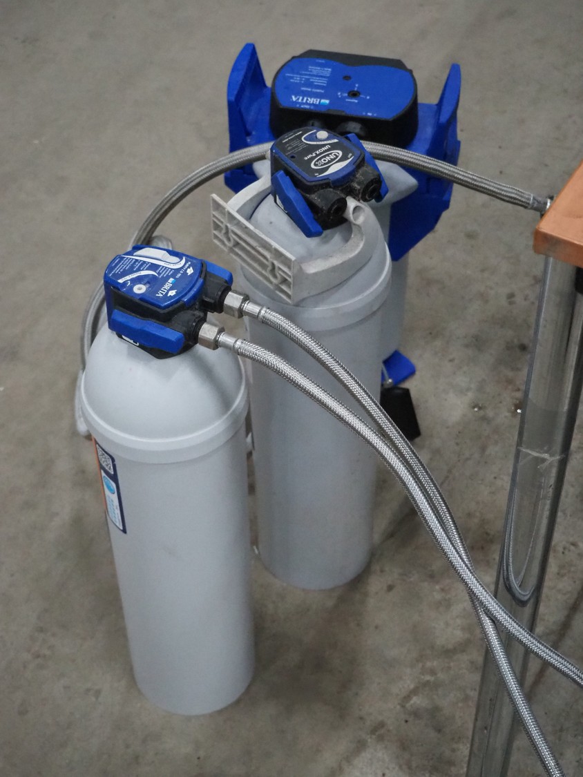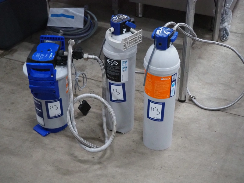 2 Brita and 1 Unox water filter, dimensions: (2x) ø 140 mm x 560 mm, ø 340 mm x 410 mm.