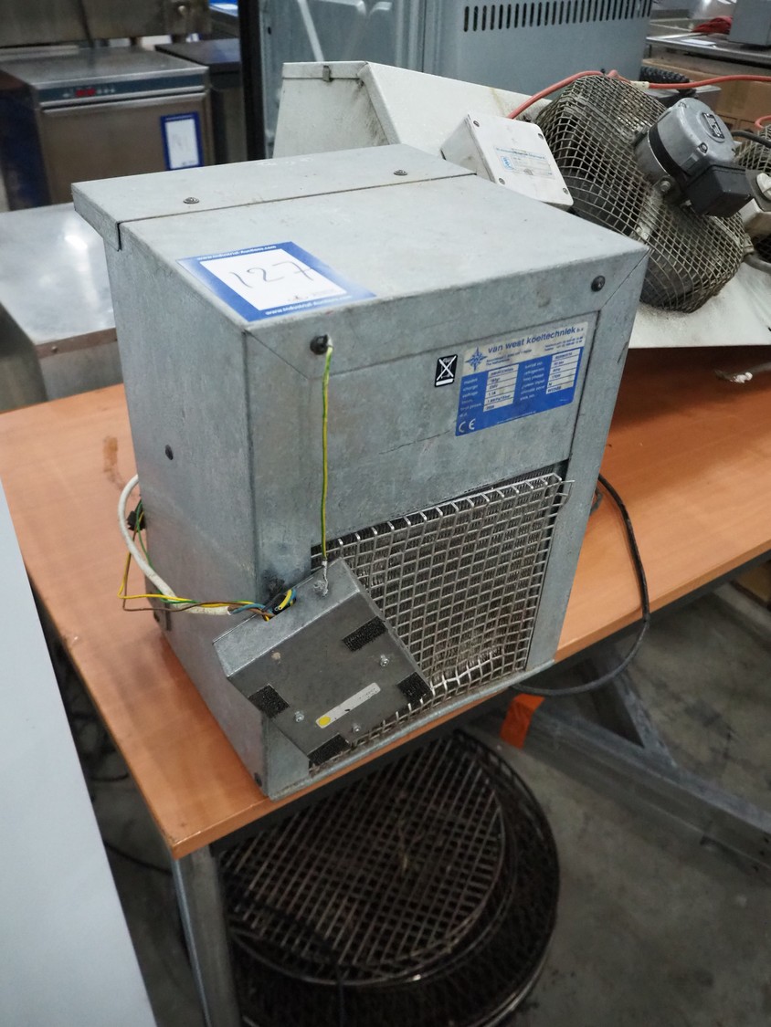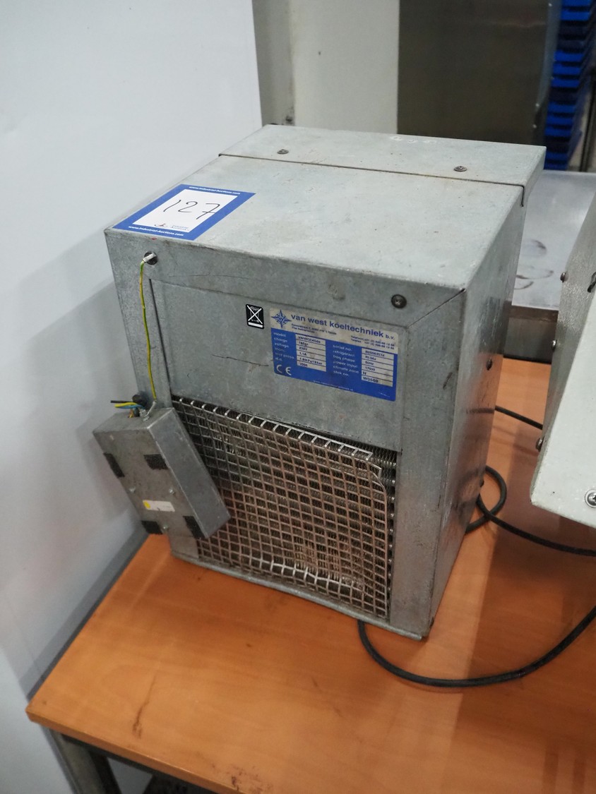 Van West Koeltechniek cooling machine, model: WWKGD40de, serial number: B20062074, year of construction: 2006, 230 V, 50 Hz, 1.1 A, 170 W, refrigerant: R134a/0.165 kg, dimensions: 290 mm x 290 mm x 380 mm.