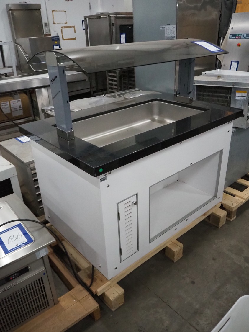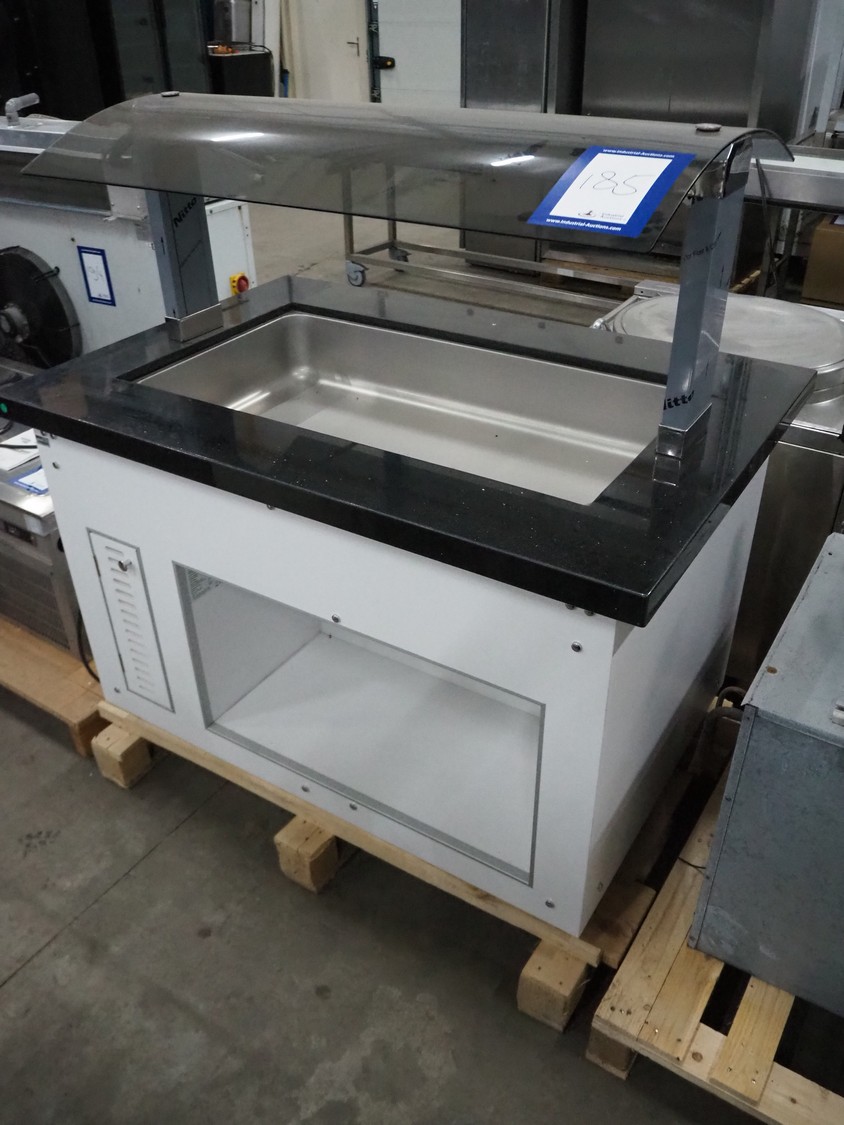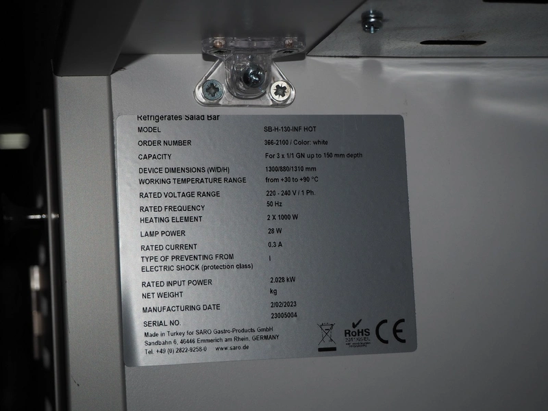 Saro salad bar, model: SB-H-130-INF HOT, serial number: 23005004, year of construction: 2023, 220-240 V, 1 Ph, 50 Hz, (2x) 1000 W, 0.3 A, dimensions: 880 mm x 1300 mm x 1350 mm.