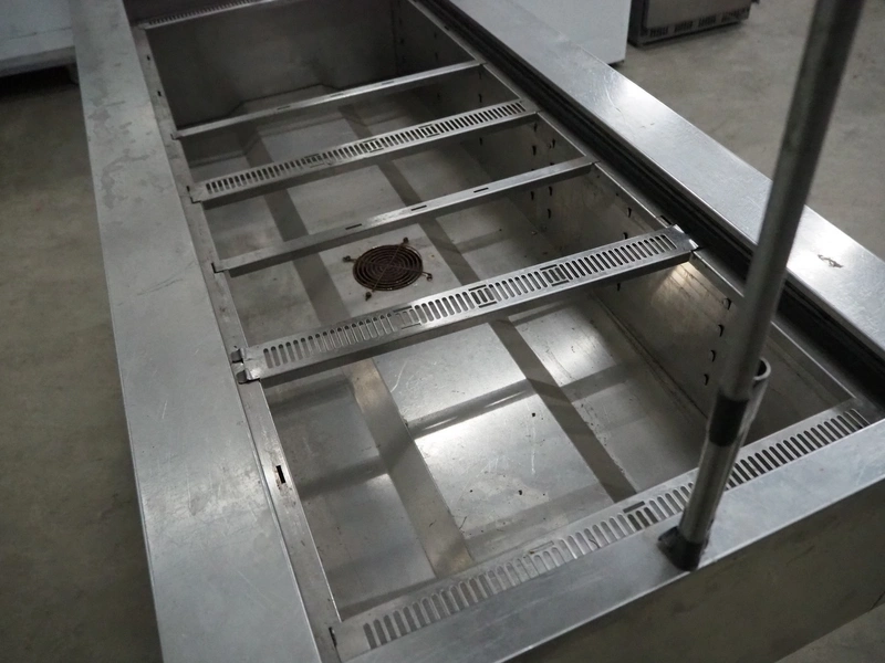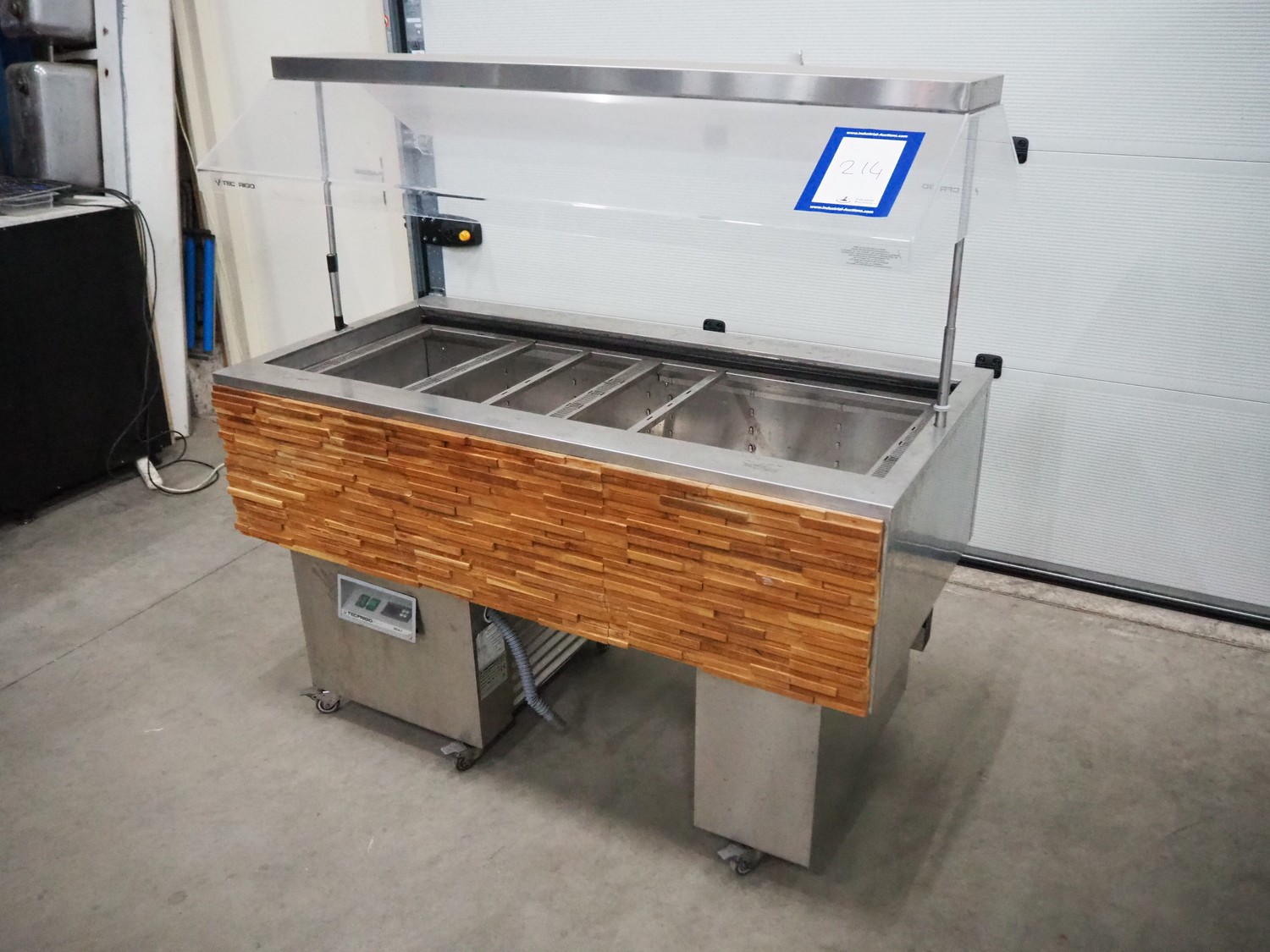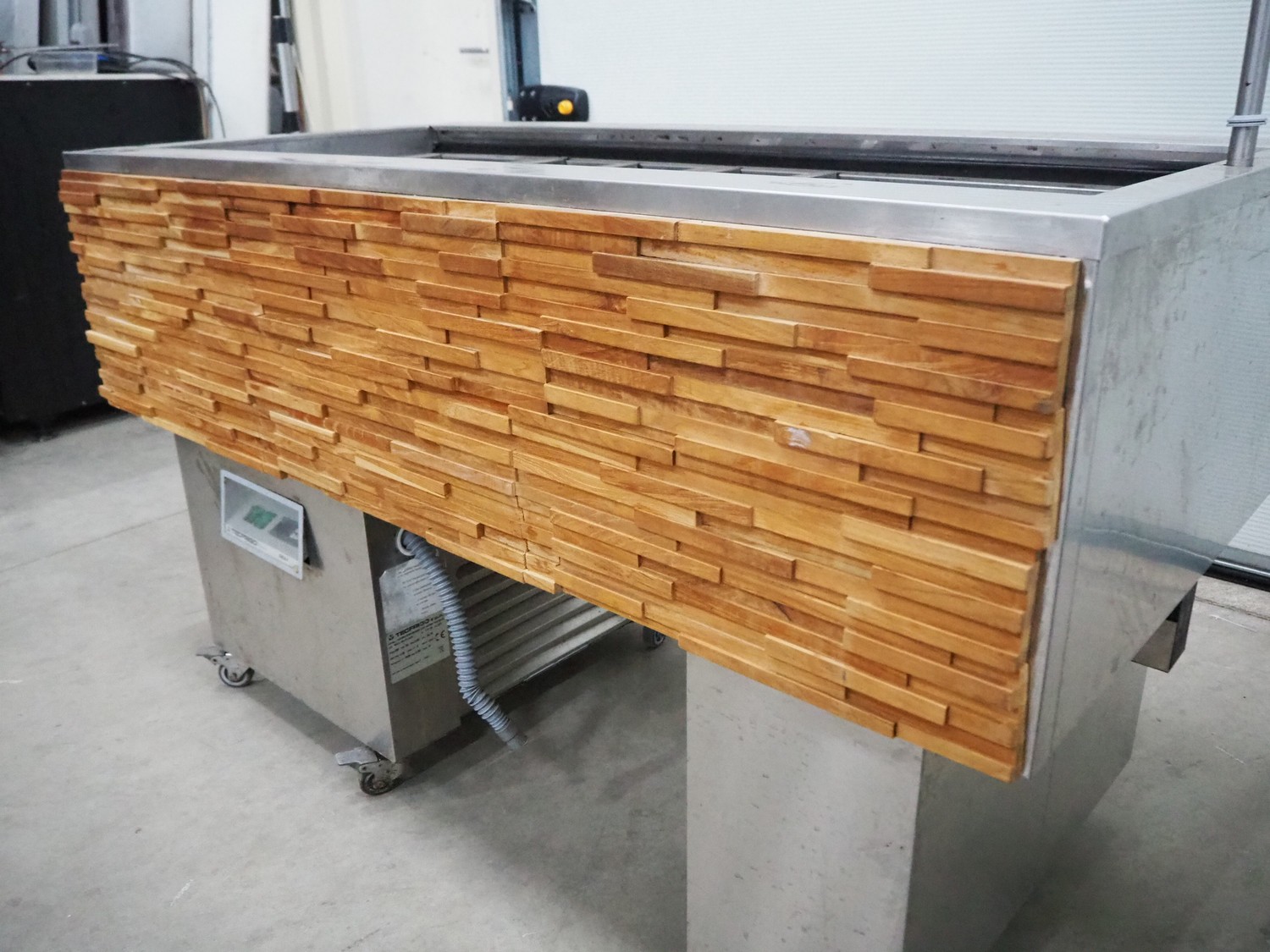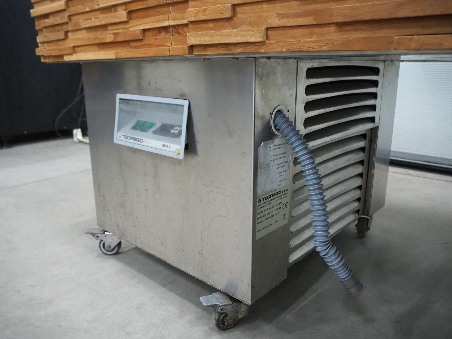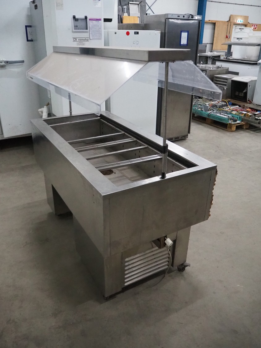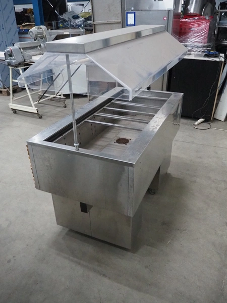 Tecfrigo S.p.A mobile refrigerated showcase, model: ISOLA 4M VT INOX, number: B41115, year of construction: 2013, 230 V, 50 Hz, refrigerant: R404 / 0.380 kg, dimensions: 750 mm x 1555 mm x 1500 mm.