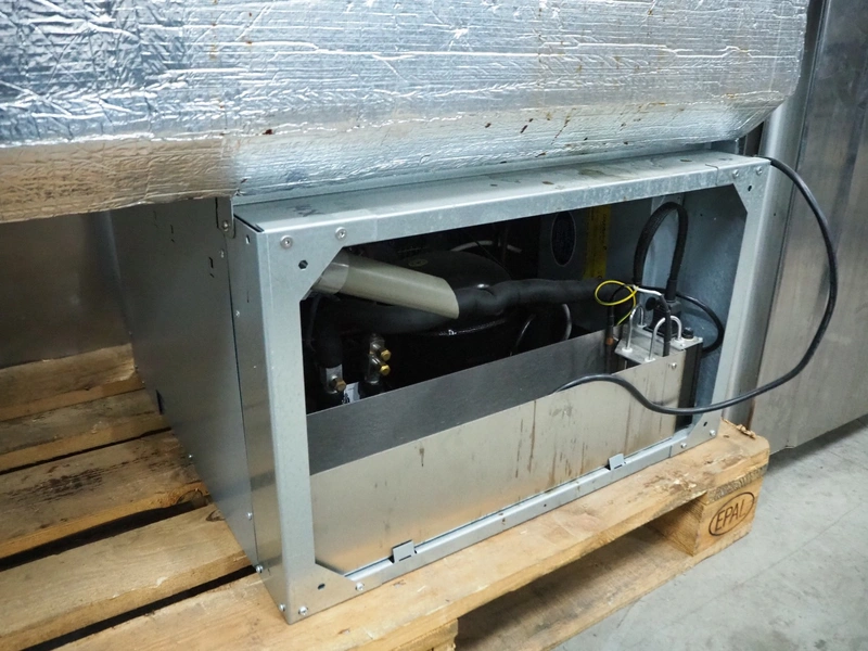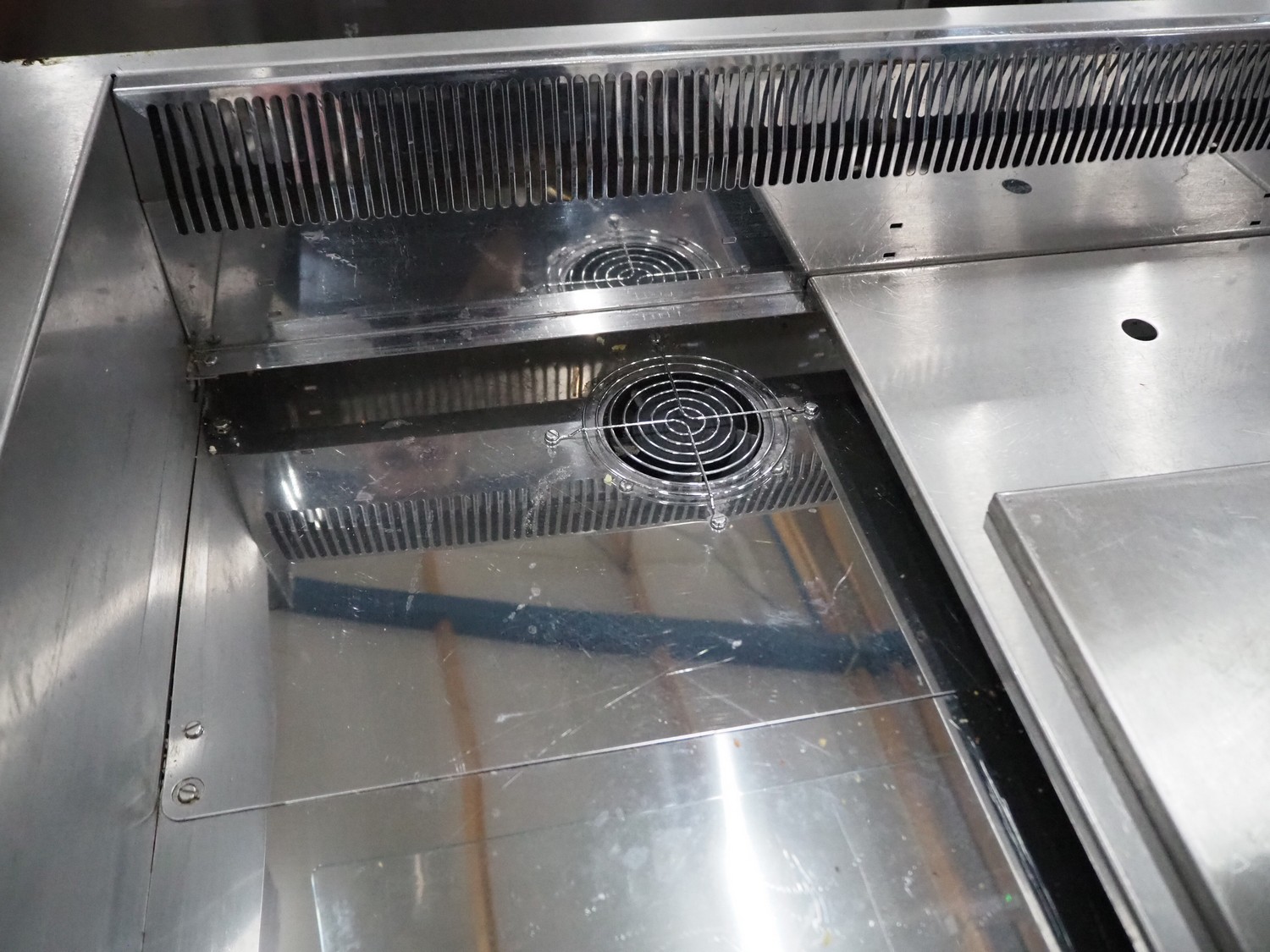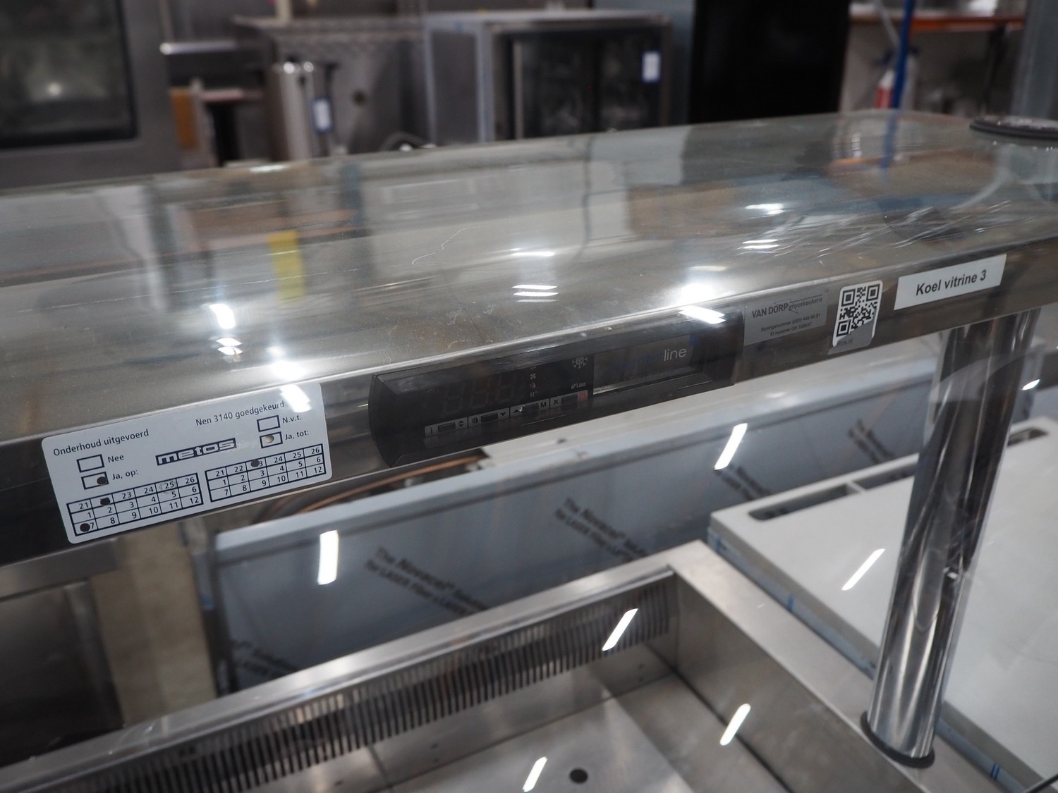 Metos saladette, inside dimensions: 1060 mm x 555 mm, total dimensions: 660 mm x 1175 mm x 1175 mm.