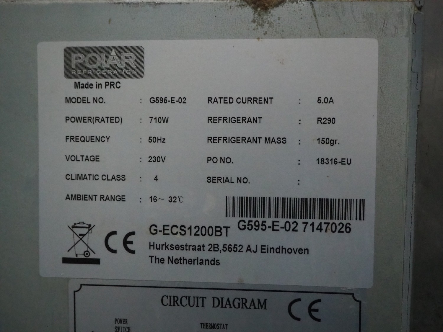Polar mobile freezer, model: G595-E-02, 230 V, 50 Hz, 5.0 A, 710 W, 6 racks, dimensions racks: (6x) 640 mm x 530 mm, total dimensions: 810 mm x 1340 mm x 1990 mm.