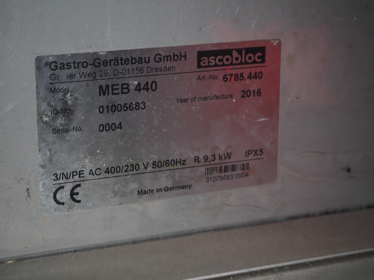 Ascobloc grill, model: MEB 440, serial number: 0004, year of construction: 2016, 400/230 V, 50/60 Hz, 3 Ph, 9.3 kW, electric heated, dimensions grill surface: 600 mm x 505 mm, total dimensions: 860 mm x 600 mm x 1000 mm.