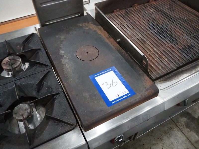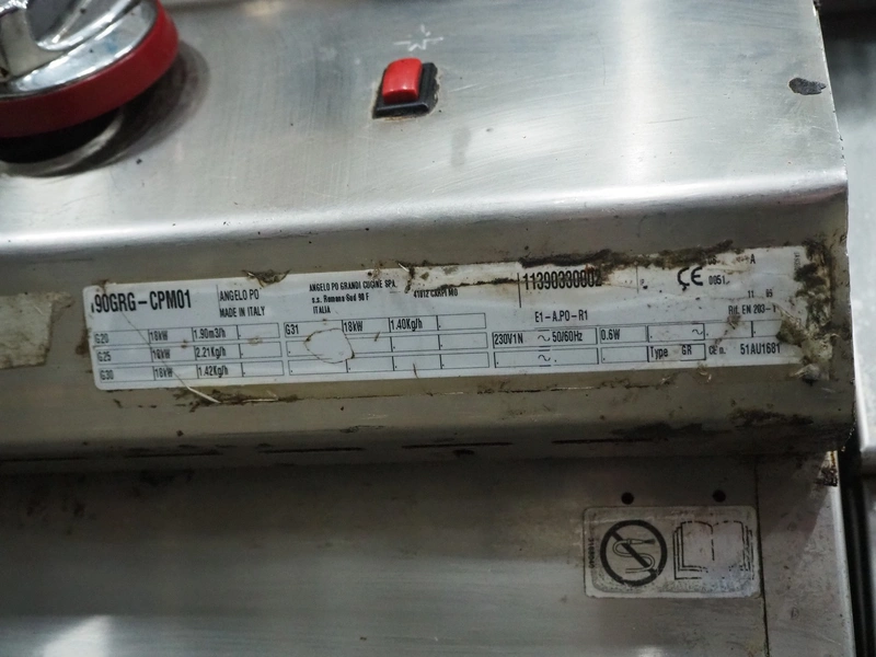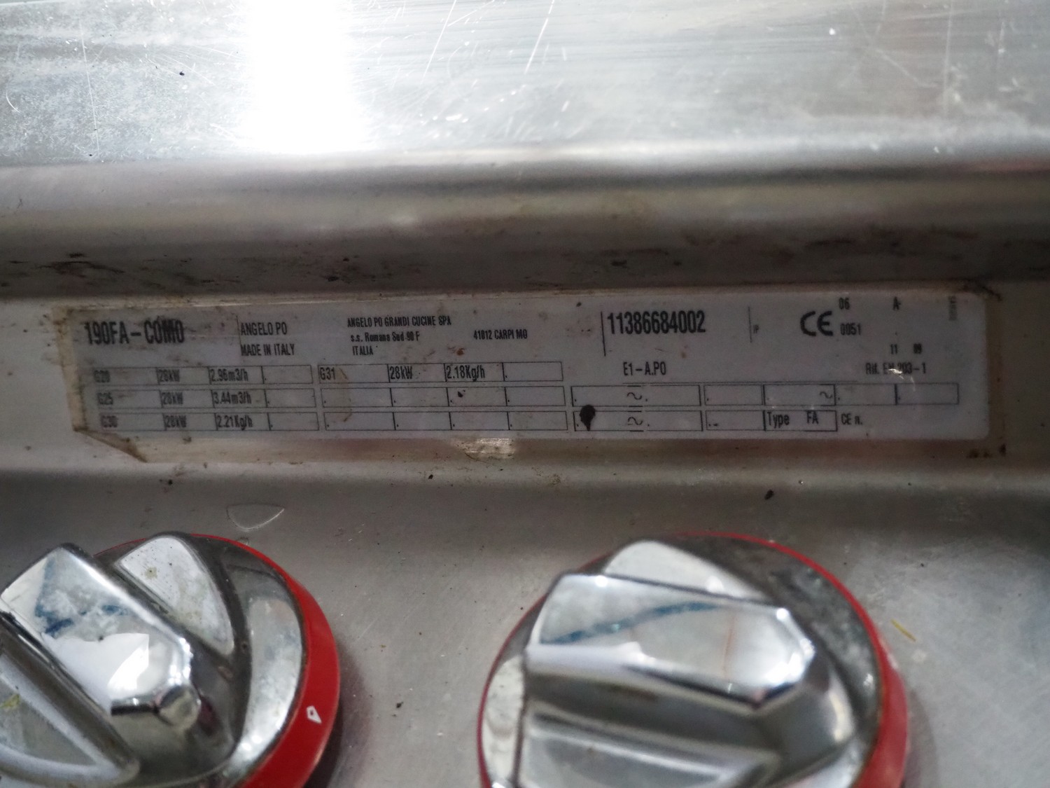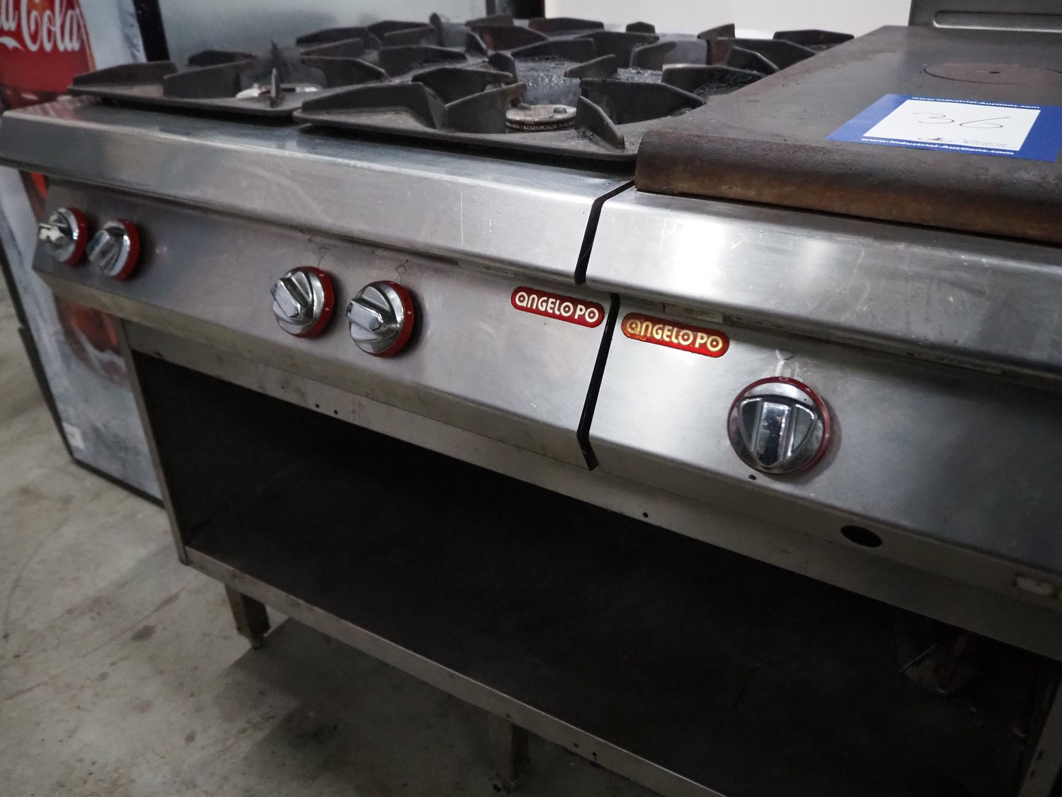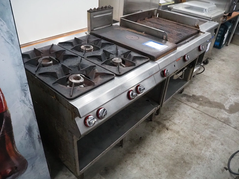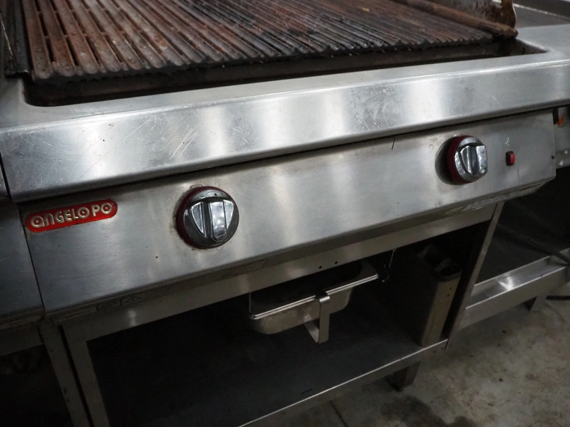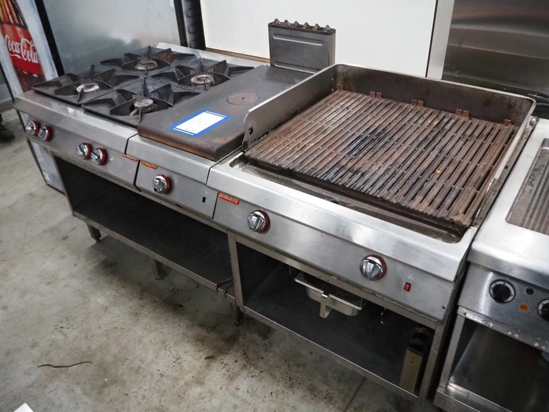 Angelo Po kitchen counter consisting of grill en 2 stoves, gas heated, dimensions: 960 mm x 2010 mm x 1250 mm.