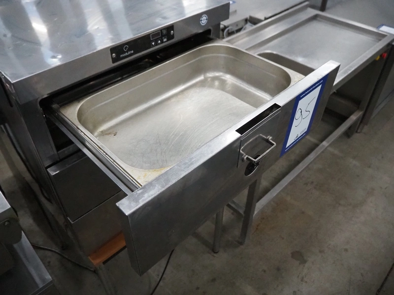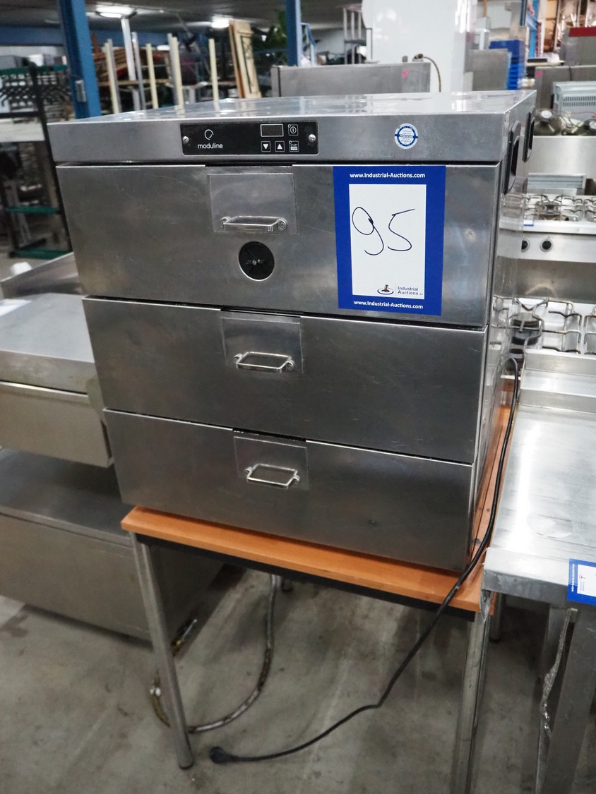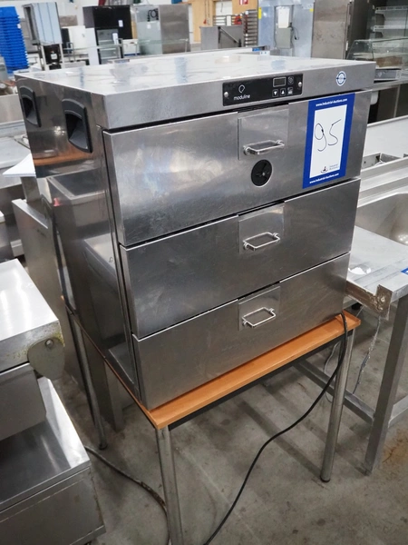 Moduline srl heating cabinet, model: HSW013E, number: 1700073002C, year of construction: 2017, 230 V, 50 Hz, 3 drawers, dimensions: 600 mm x 660 mm x 715 mm.