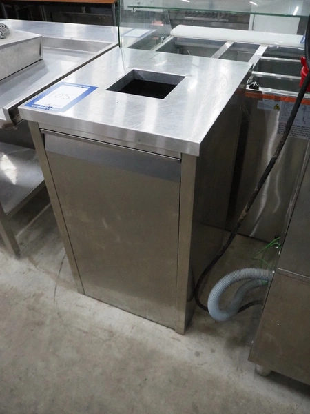 S/s waste bin, dimensions: 600 mm x 570 mm x 955 mm.