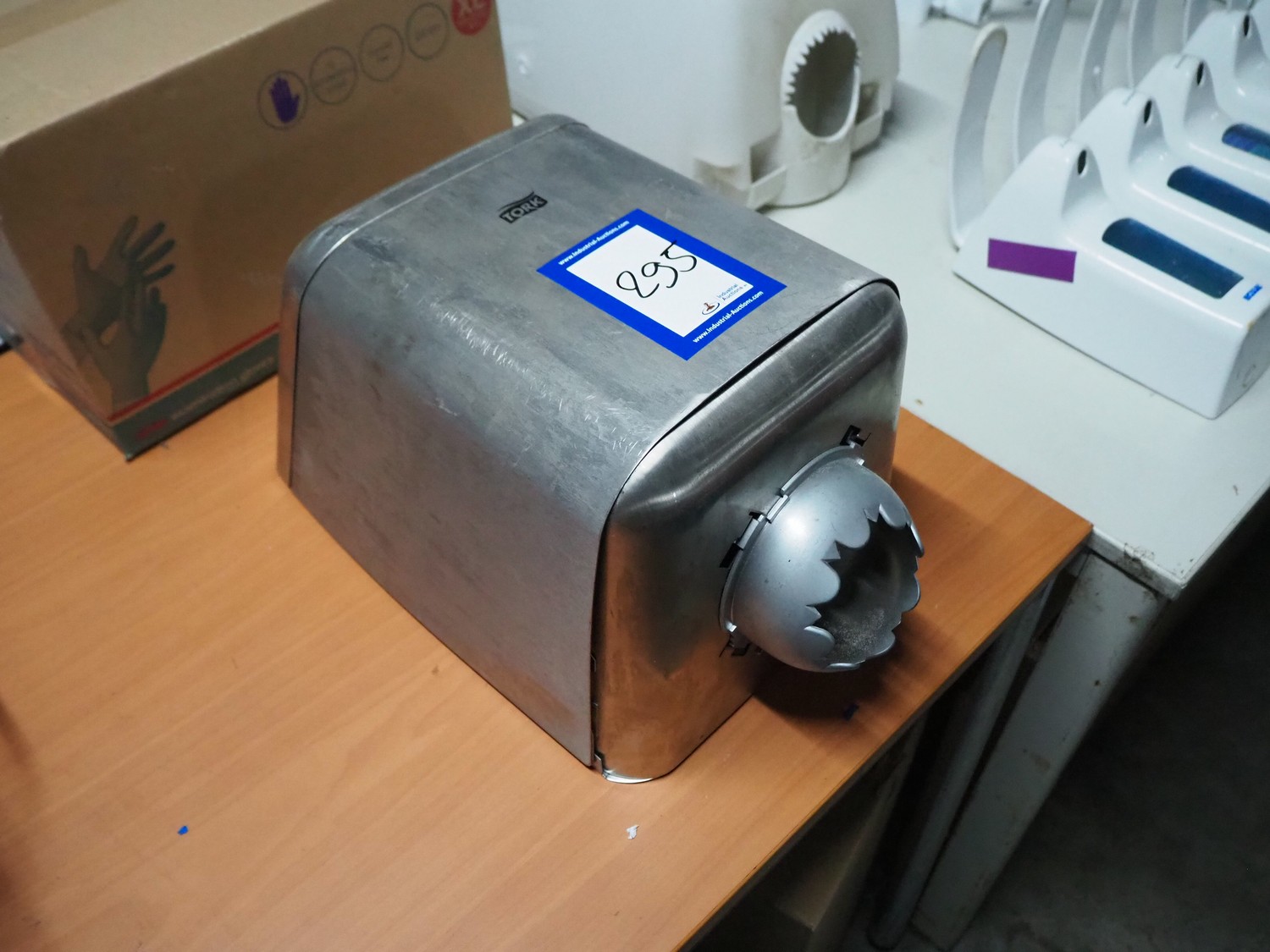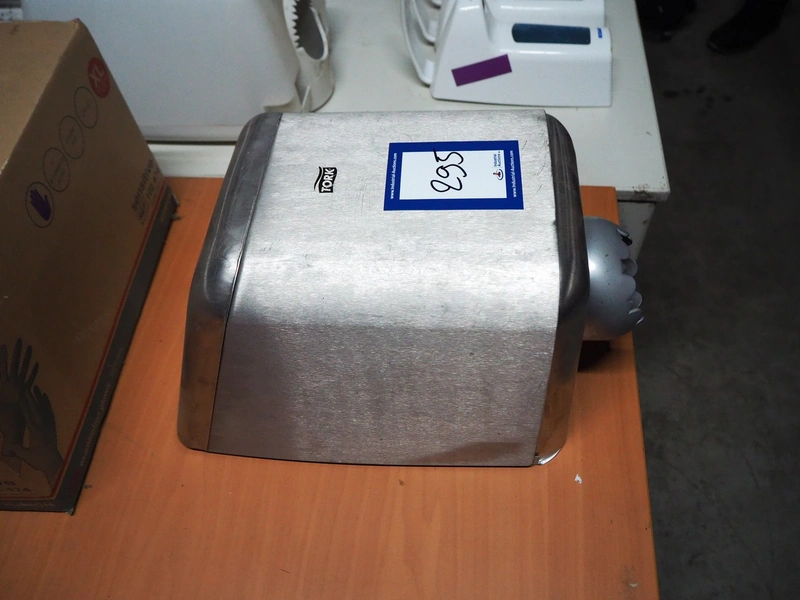 Tork s/s paper dispenser, dimensions: 430 mm x 220 mm x 220 mm.