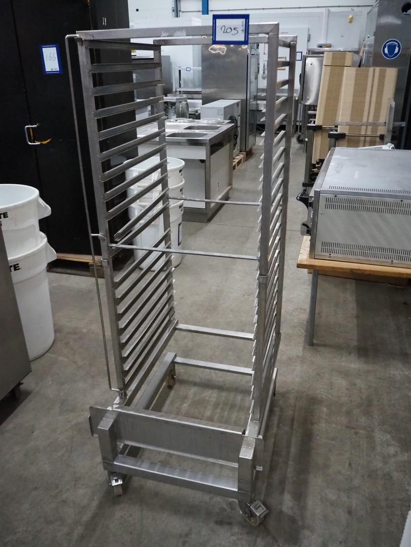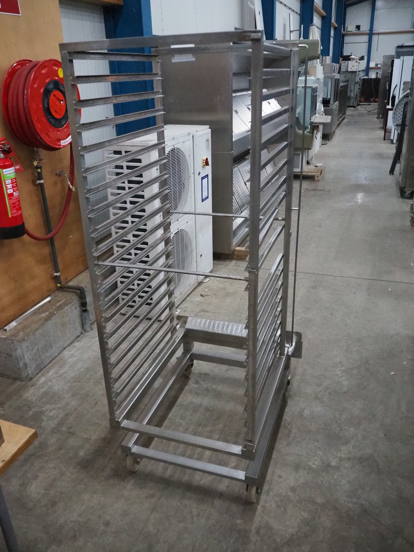 S/s oven trolley with 20 floors, floor dimensions: 650 mm x 530 mm, total dimensions: 850 mm x 690 mm x 1720 mm.