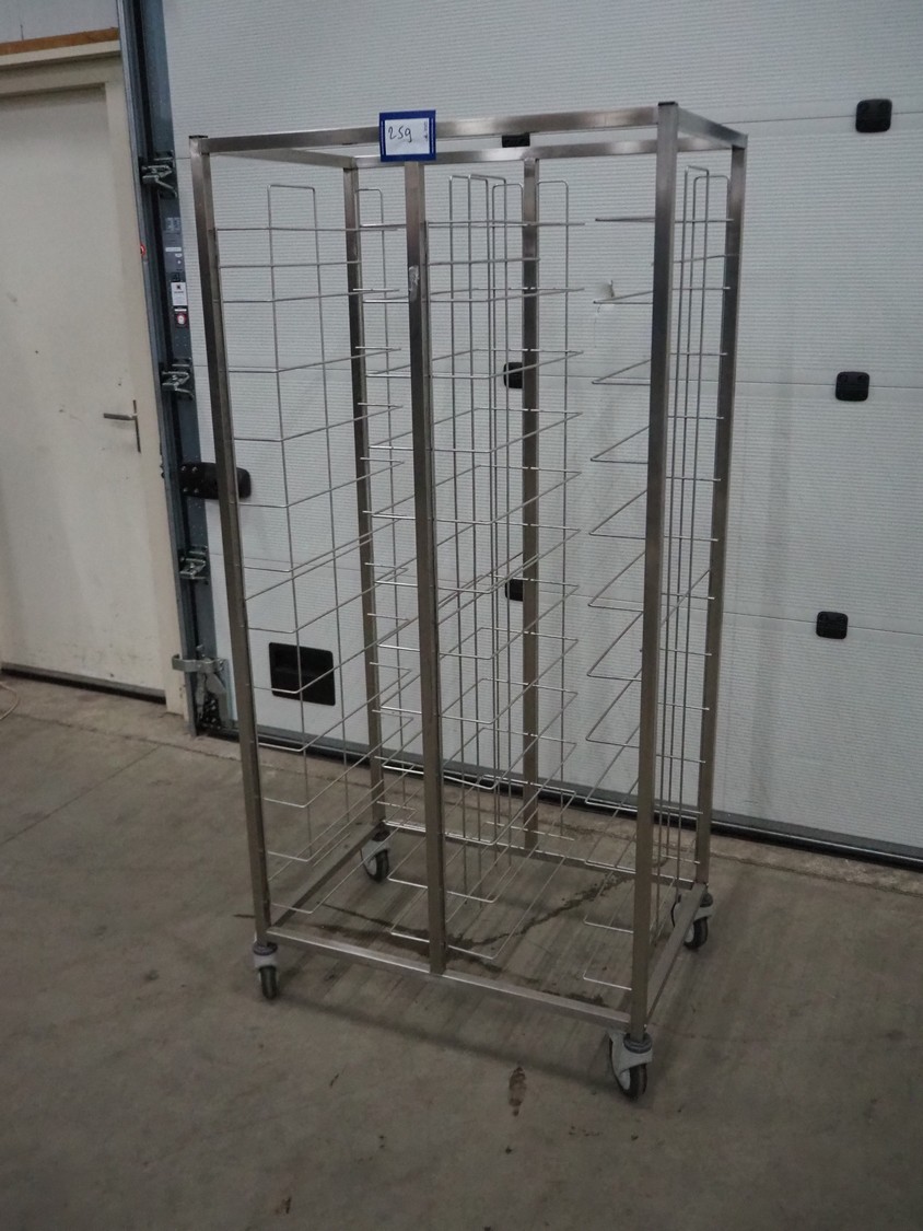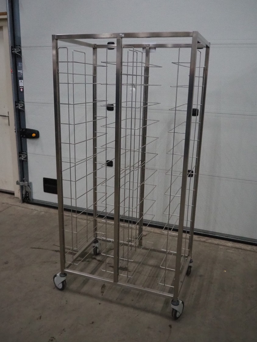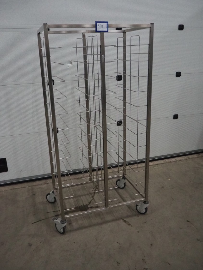 S/s trolley for plates, (2x) 12 floors, floor dimensions: 510 mm x 380 mm, total dimensions: 560 mm x 855 mm x 1780 mm.