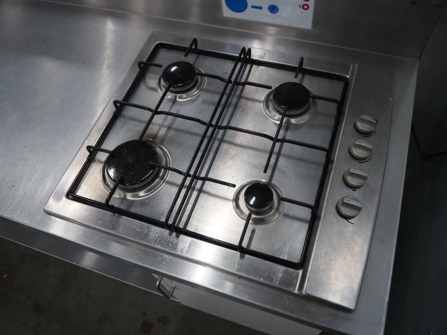Kitchen counter with stove, 4-pits, dimensions: 630 mm x 1700 mm x 1100 mm.