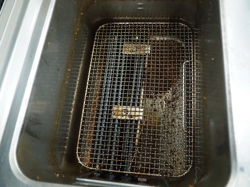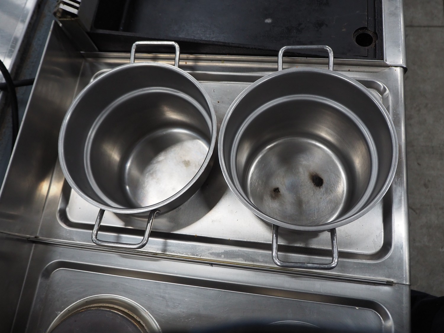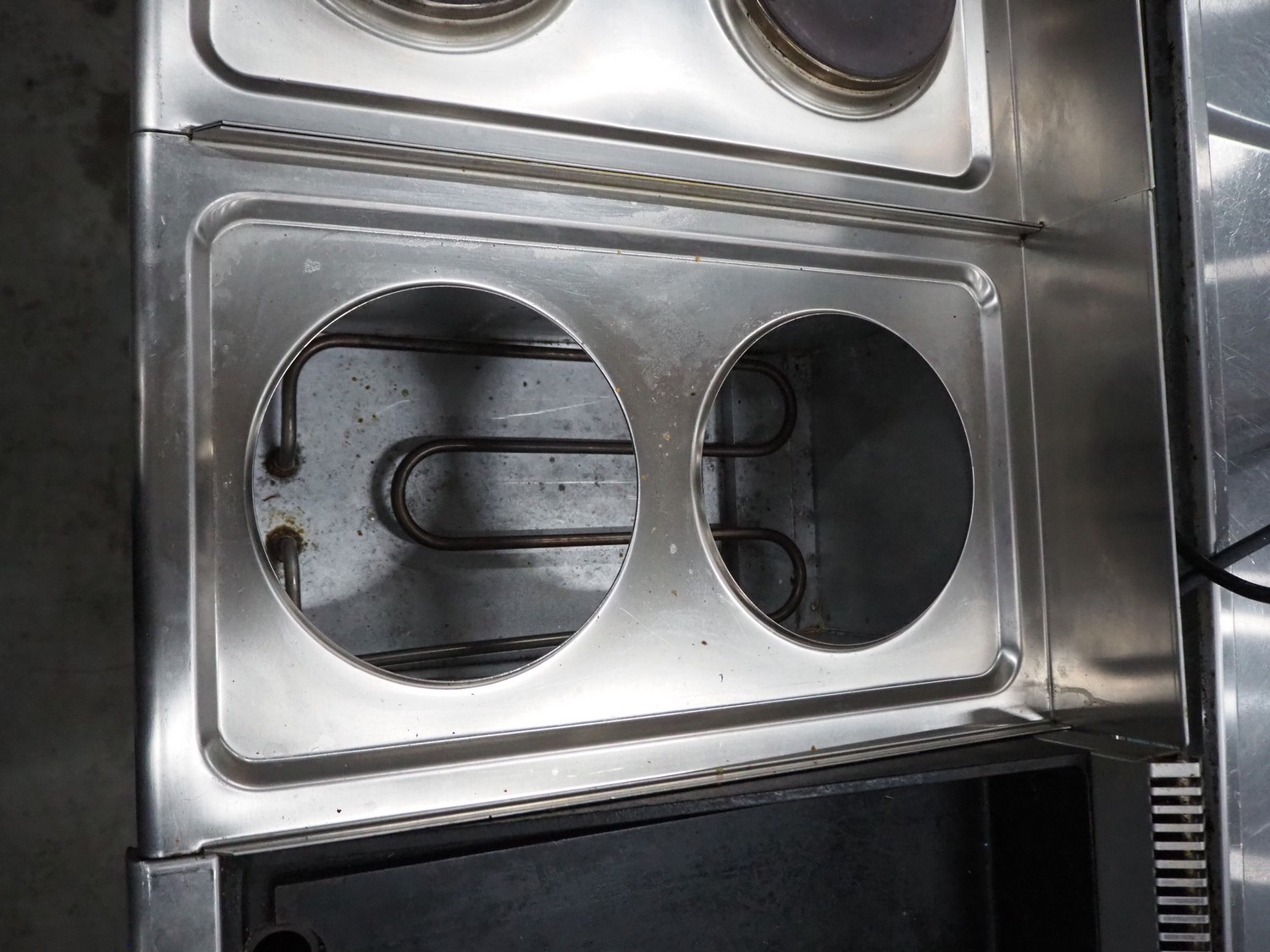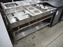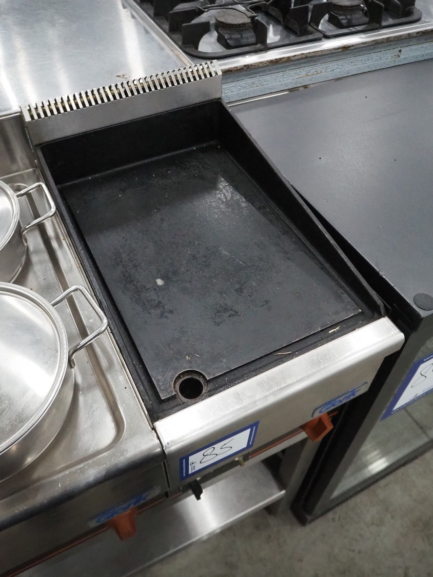 Giorik kitchen counter consisting of 2 deep fryers, 3 stoves with 2 pits and frying plate, dimensions: 550 mm x 1500 mm x 1000 mm.