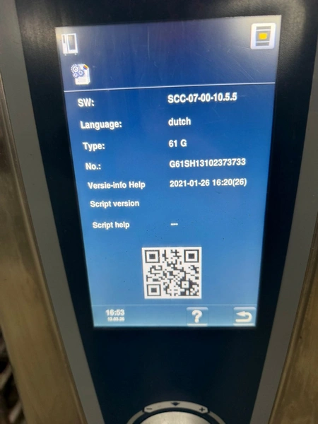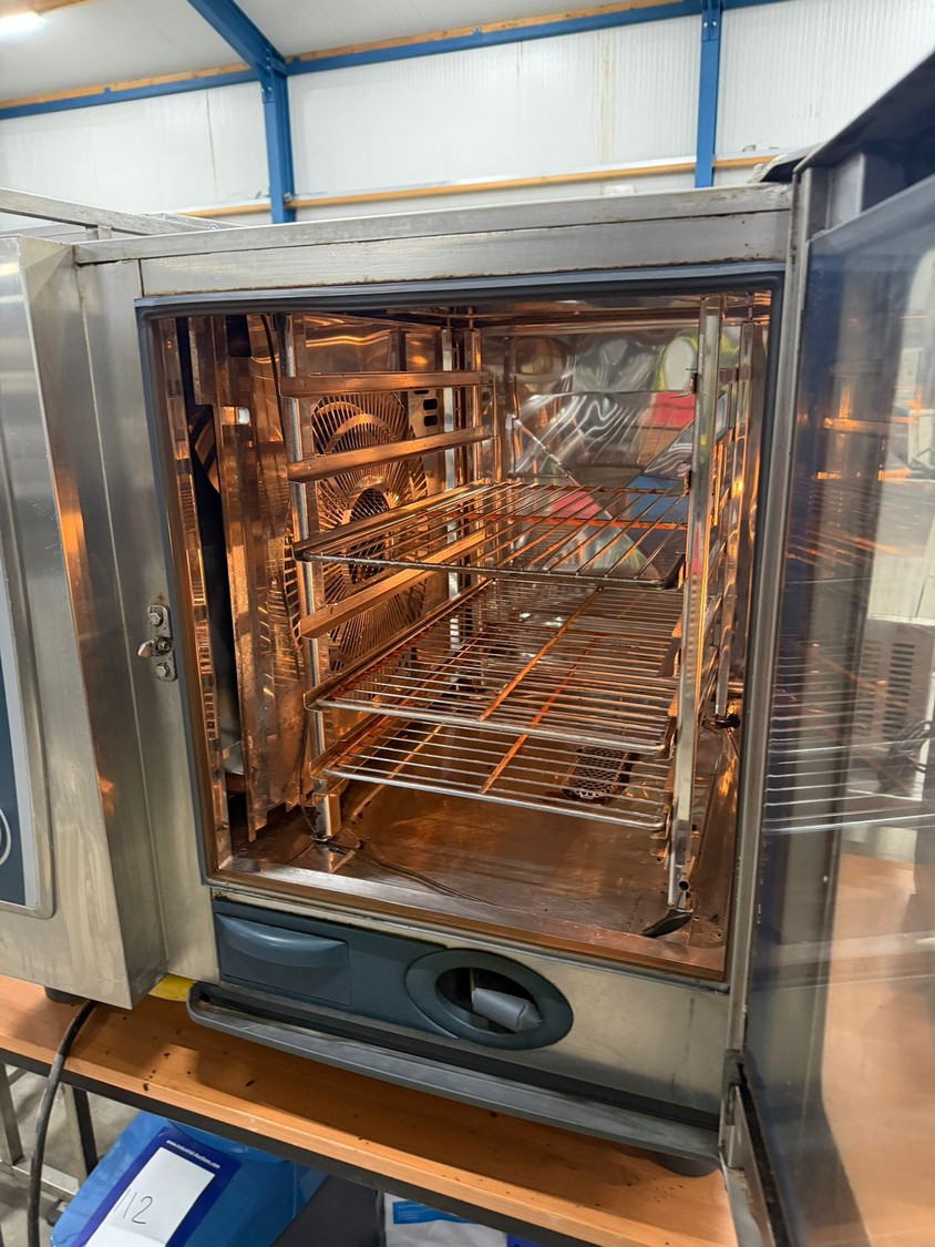 Rational combi steamer, type: SCC WE 61 G, number: G61SH13102373733, year of construction: 2013, 230 V, 13 kW, gas heated, 6 floors, dimensions floors: (6x) 530 mm x 325 mm, total dimensions: 770 mm x 850 mm x 840 mm.