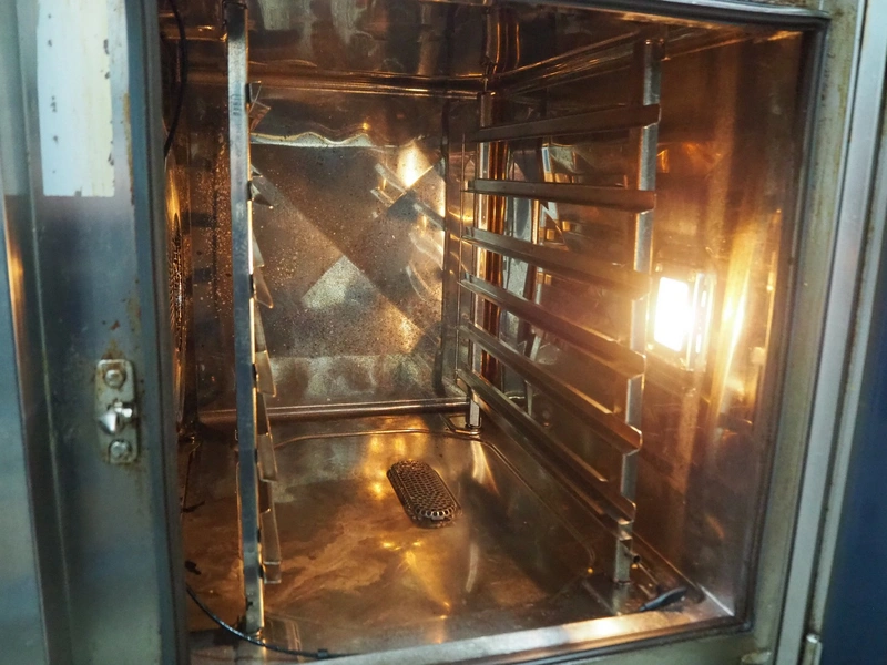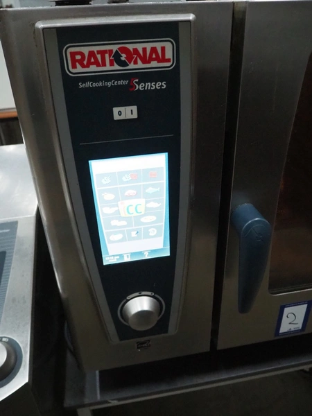 Rational combi steamer, type: 61 E, serial number: E61SH14062408011, year of construction: 2014, electric heated, 6 floors, dimensions floors: (6x) 540 mm x 320 mm, total dimensions: 850 mm x 835 mm x 800 mm.