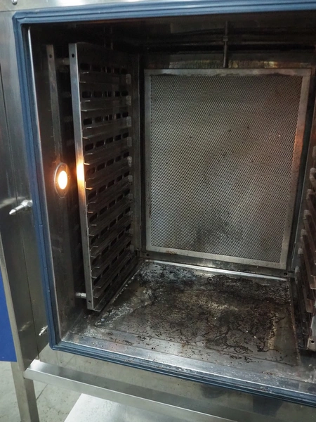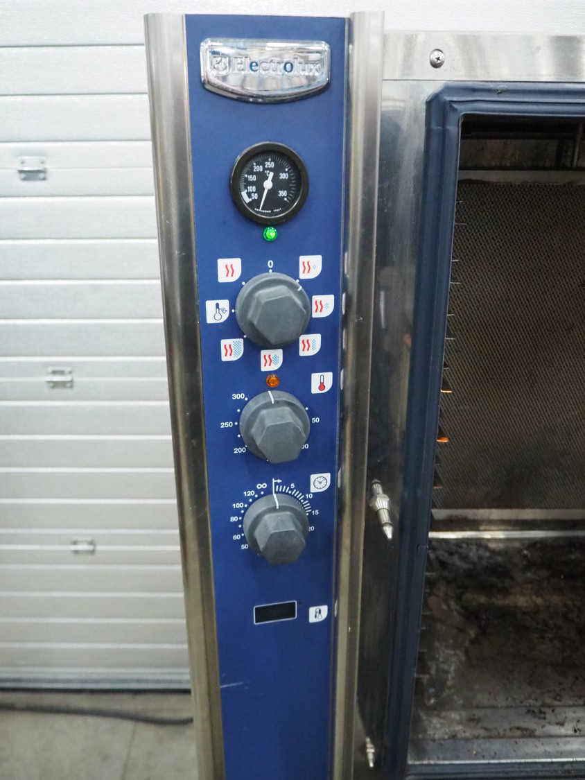 Electrolux combi steamer, model: ECFE101-0, serial number: 43600003, year of construction: 2004, 380-400 V, 3 Ph, 50 Hz, 0.19 kW, 11 floors, floor dimensions: 280 mm x 530 mm, total dimensions: 940 mm x 890 mm x 1700 mm.