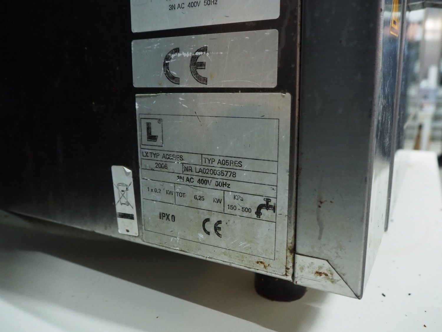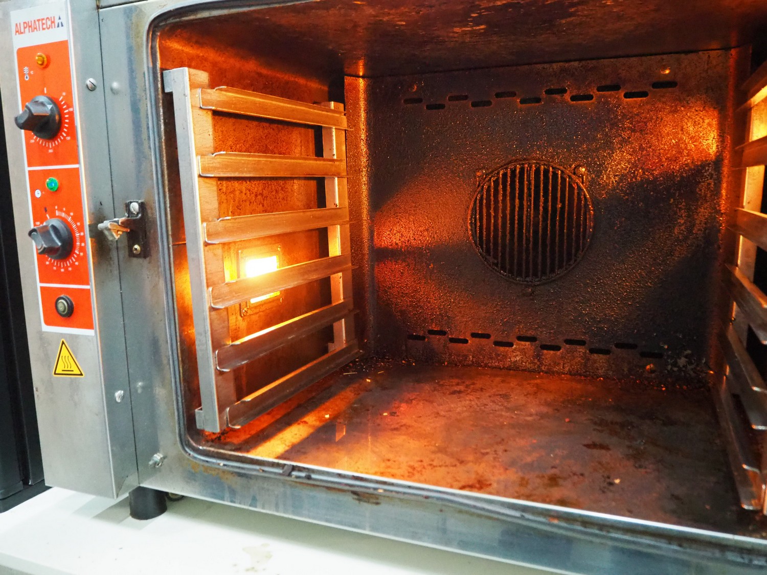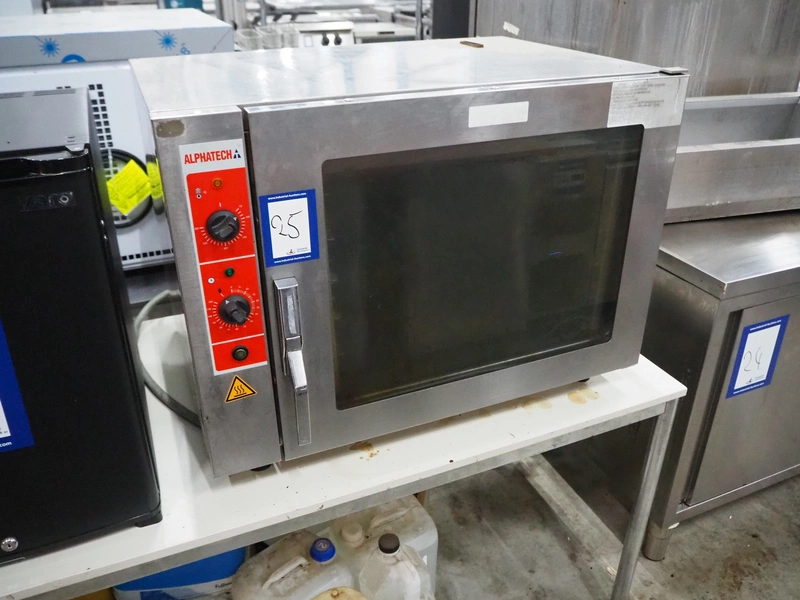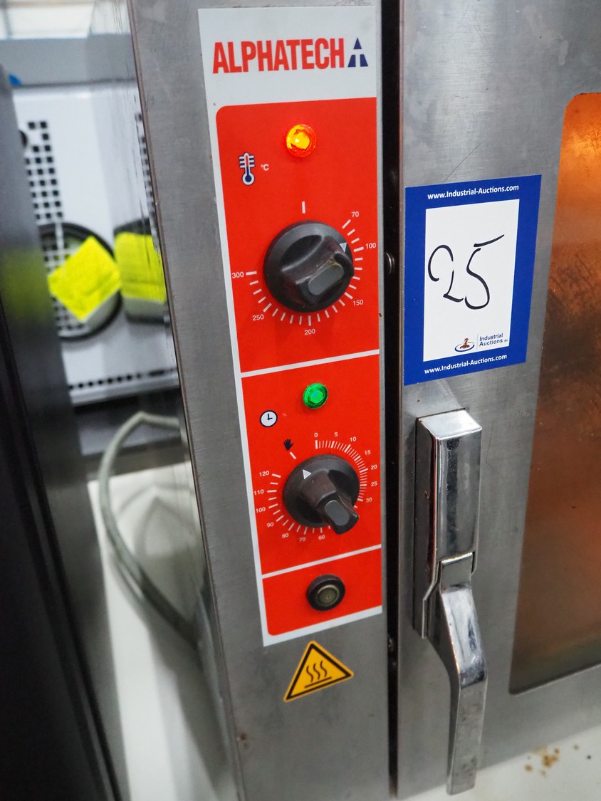 Alphatech electric oven, type: A05RES, number: LA020035778, year of construction: 2006, 400 V, 3 Ph, 50 Hz, 6 floors, dimensions floors: (6x) 330 mm x 490 mm, total dimensions: 805 mm x 575 mm x 600 mm.