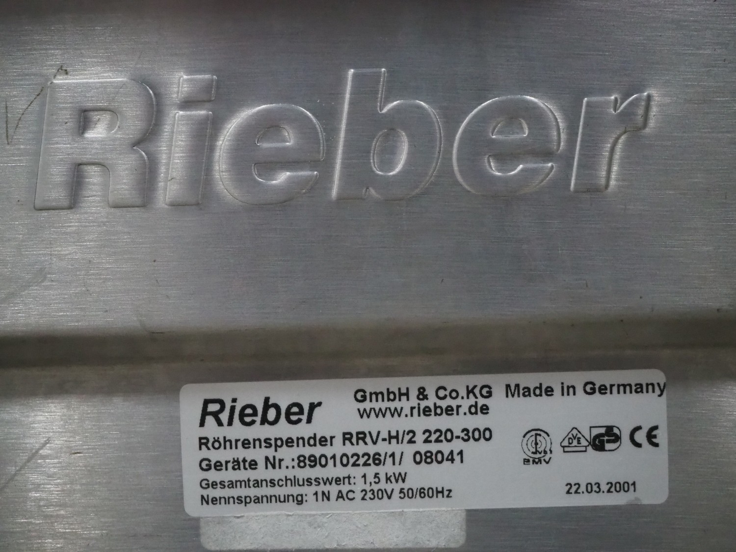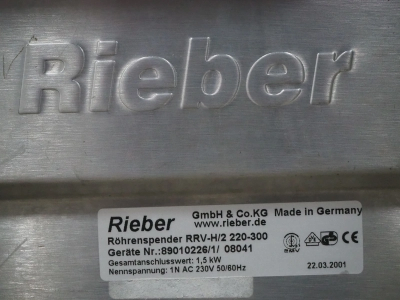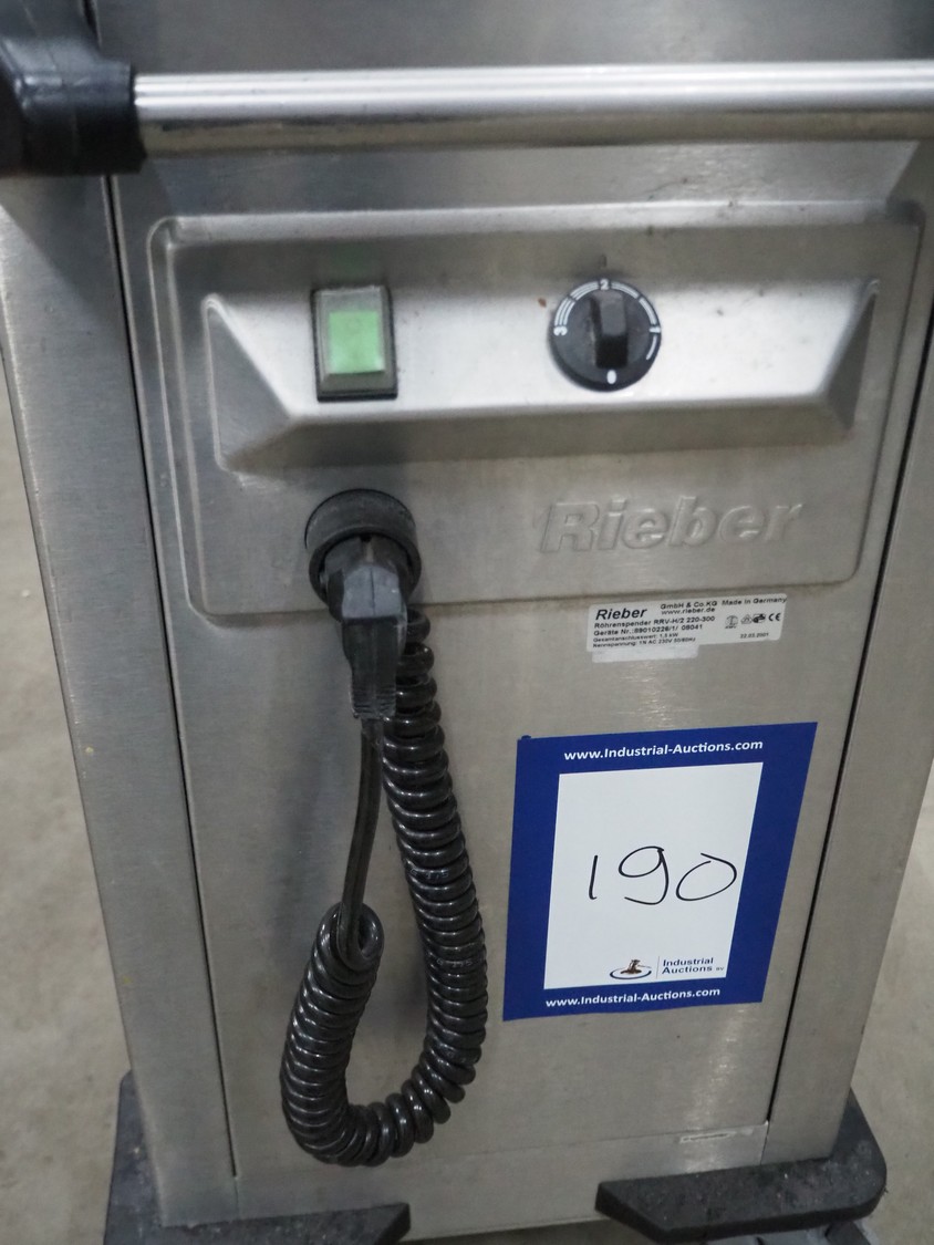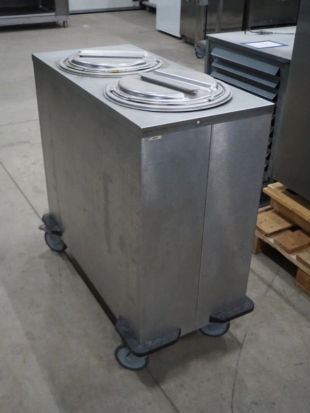 Rieber mobile plate dispenser, type: RRV-H2 220-300, 230 V, 1 Ph, 50/60 Hz, 1.5 kW, 2 dispensers, (2x) ø 300 mm, total dimensions: 950 mm x 450 mm x 930 mm.