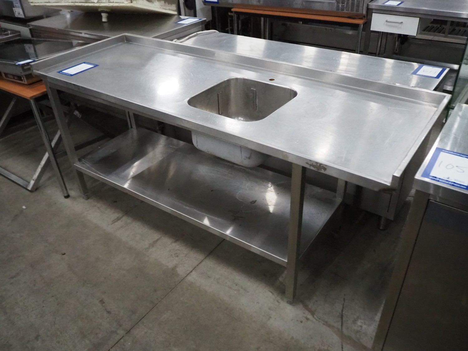 S/s counter with sink, dimensions: 700 mm x 2060 mm x 945 mm. Without faucet.